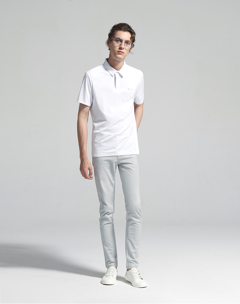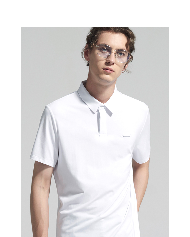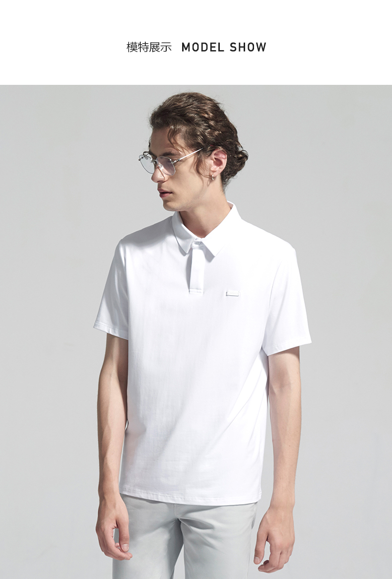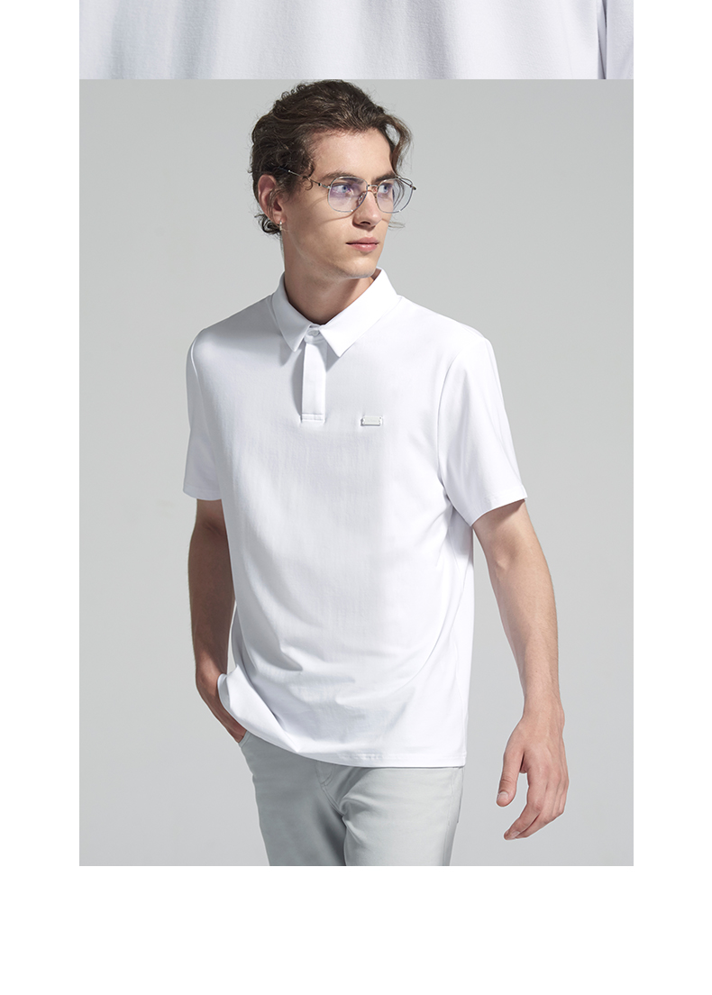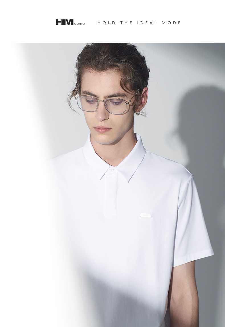 HIM漢崇 商务斯文修身短袖POLO简约哑光烤漆金属翻领T恤 2025夏季
