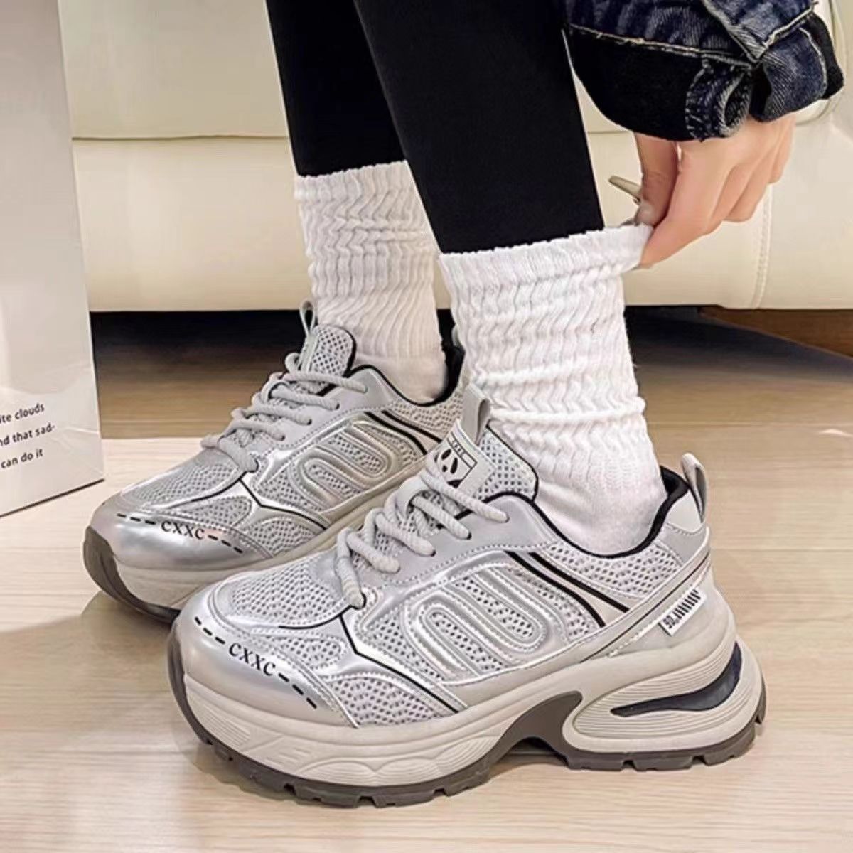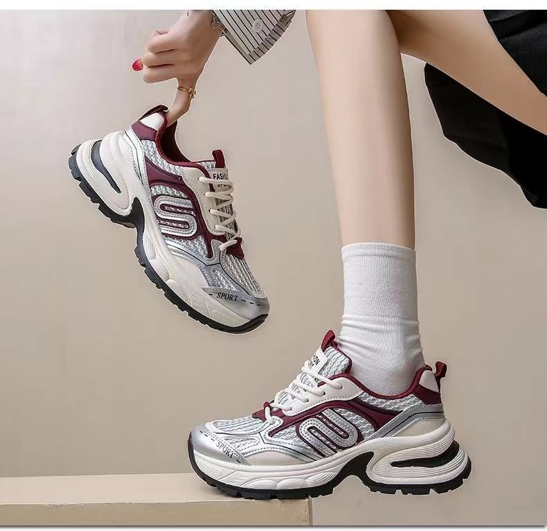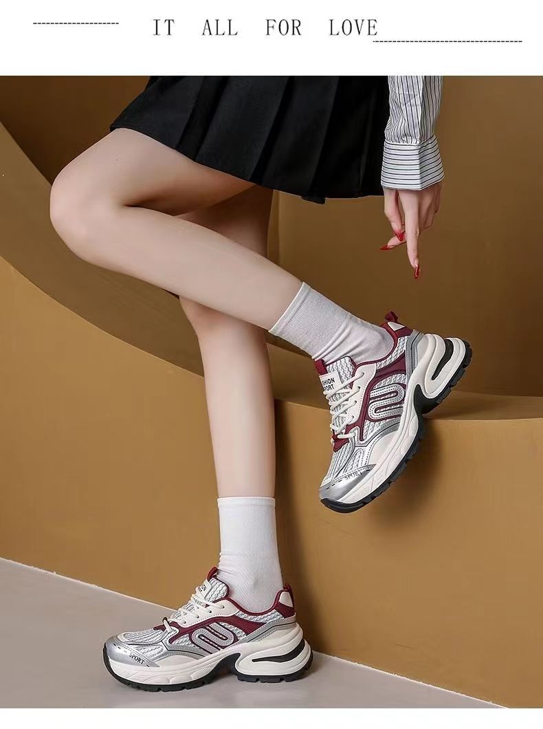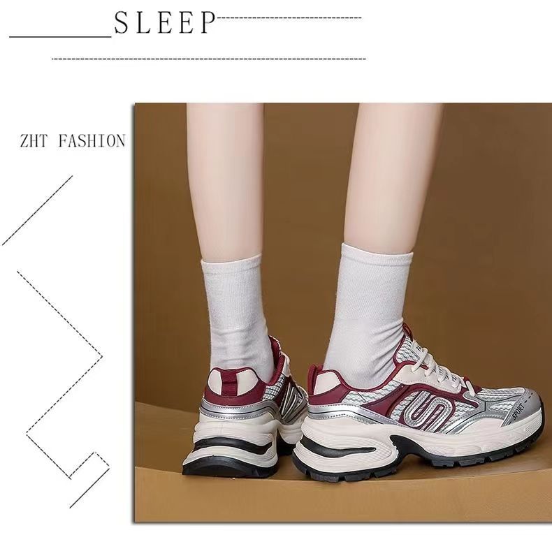 【2024年Cuckoo Bird拼色厚底老爹鞋】 增高轻便运动鞋 休闲百搭 时尚拼色网面 复古炸街