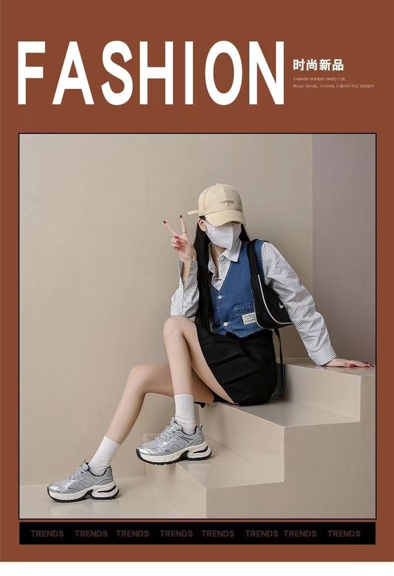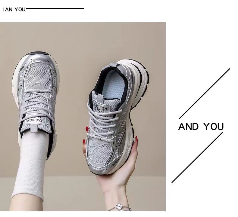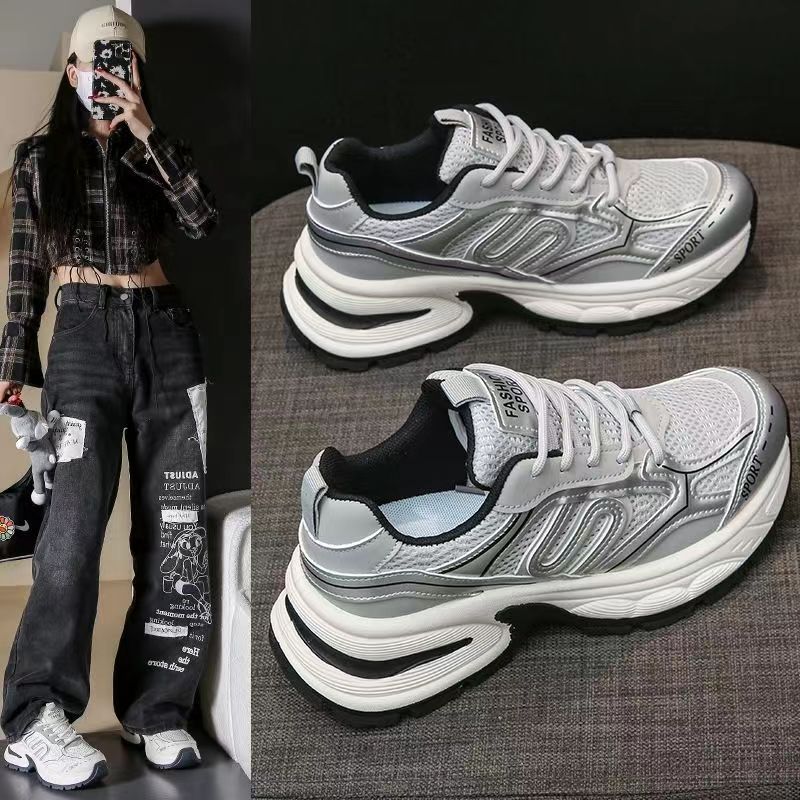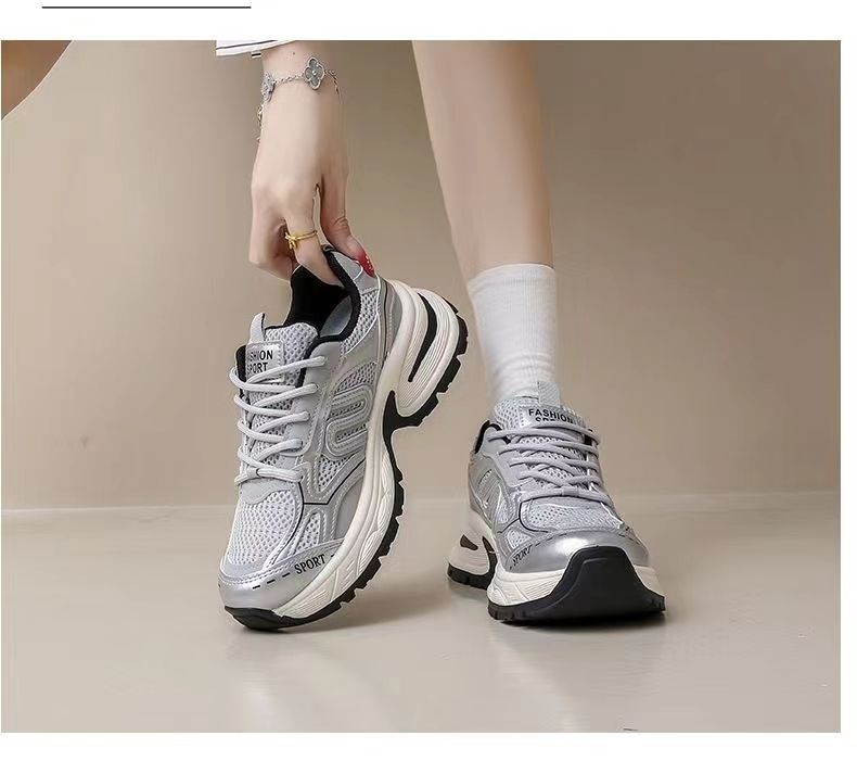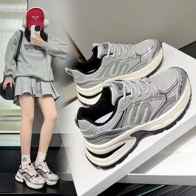 【2024年Cuckoo Bird拼色厚底老爹鞋】 增高轻便运动鞋 休闲百搭 时尚拼色网面 复古炸街