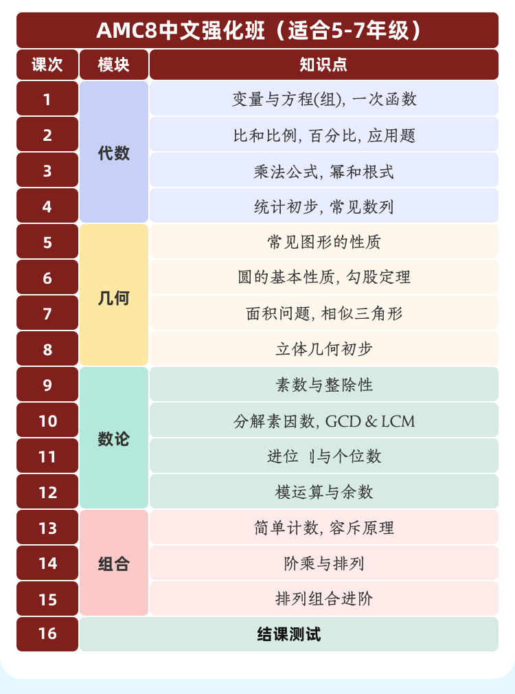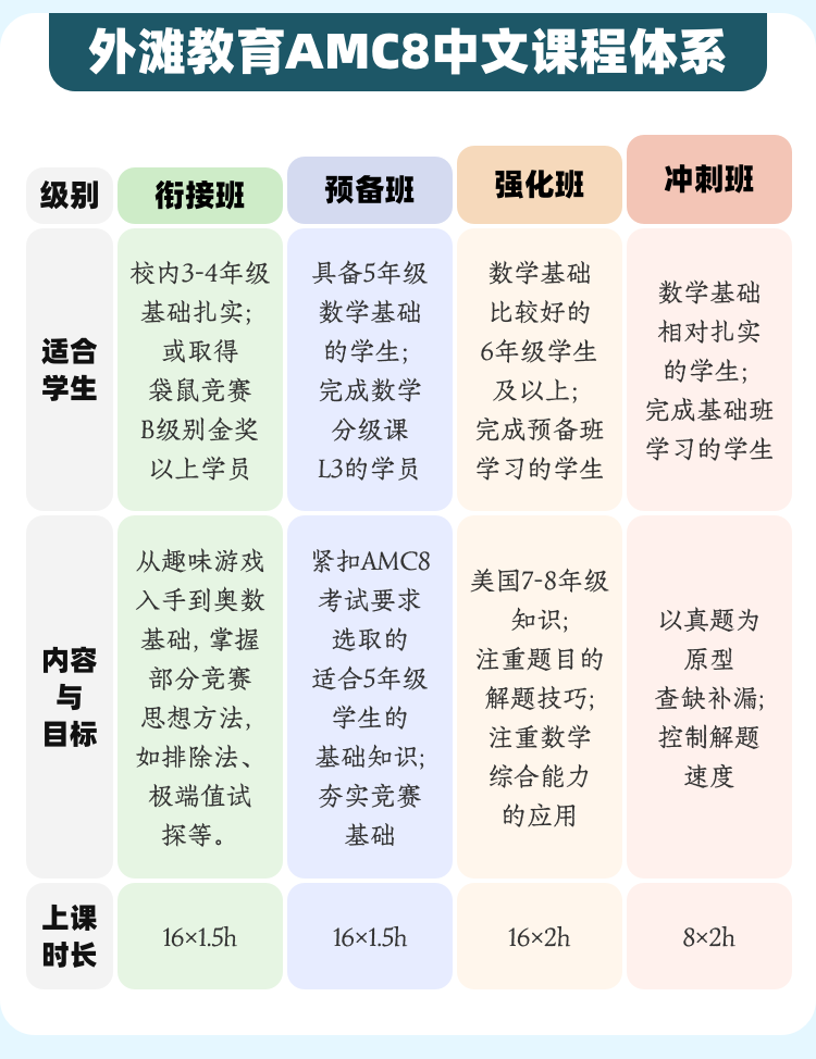 2026年 春季班 美国数学思维挑战AMC8中文学习营(中文授课,双语教材)