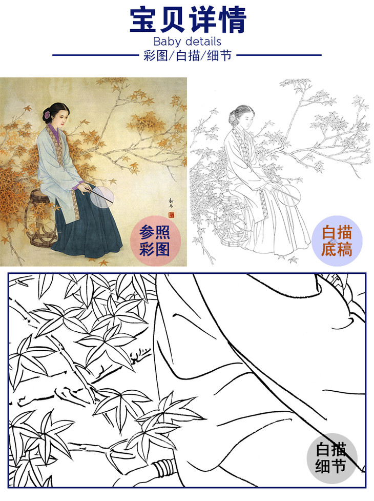 李新禹工笔传统仕女人物白描底稿-斗方小品册页-B165