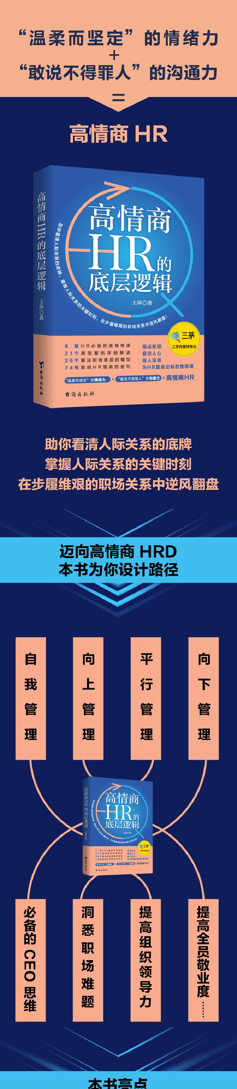 作者力求帮助大家以高情商的人所关注的“人性”为视角,让处于HR人力资源岗位或非人力资源岗位的你,因为掌握“人性”而拥有“温柔而坚定”的 情绪力,以及“敢说不得罪人”的沟通力。