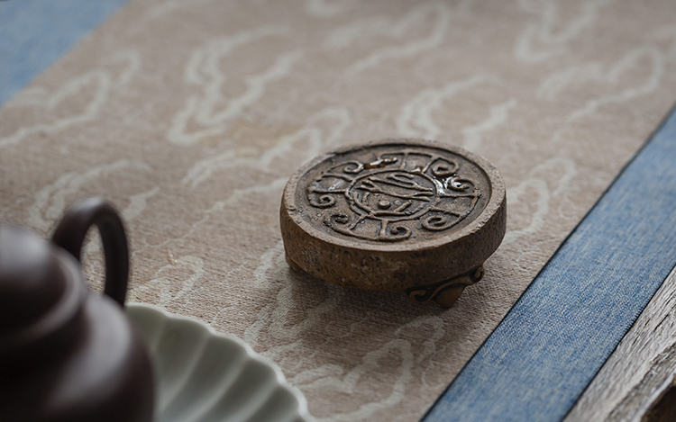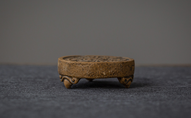 这款盖置,取传统圆瓦当之形,线条简练。