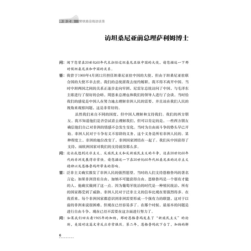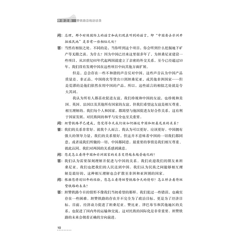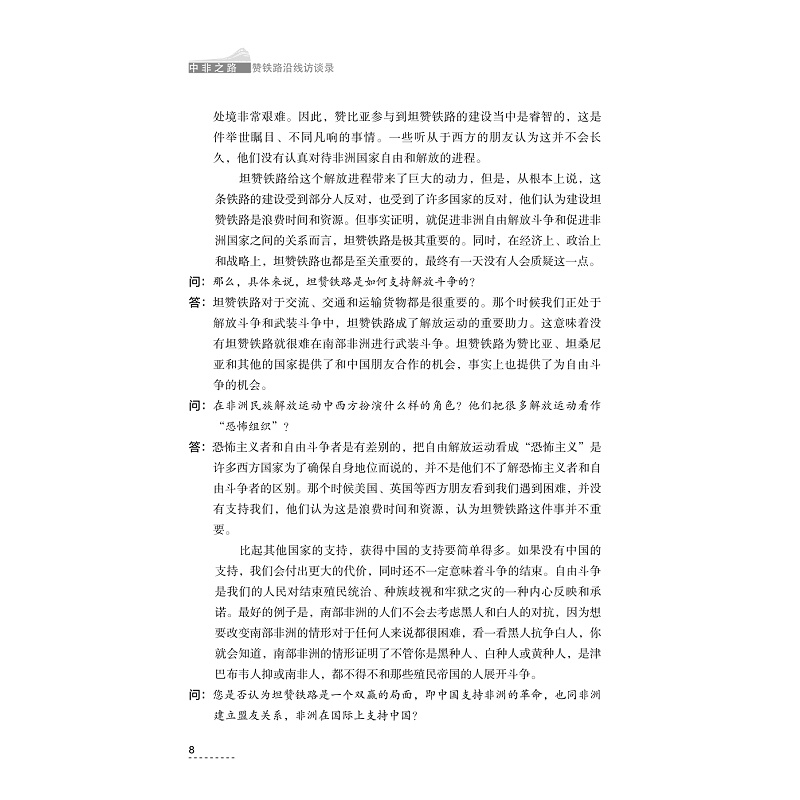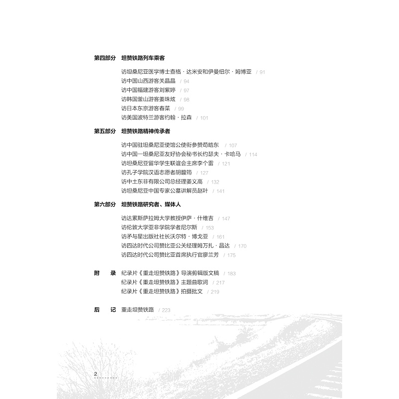 《重走坦赞铁路》纪录片同名图书。中国援建的坦赞铁路,被誉为“友谊之路”。坦赞铁路从1969年施工到1977年收尾,共有68位专家和建设者献出了宝贵的生命。全长1860.5公里的建设线路上,建设者穿越草原,跨越裂谷带,在恶劣的环境中开辟出东非大动脉。本书作者以中外两种视角来看中非史,带您一起重走坦赞铁路,共同探访从起点坦桑尼亚达累斯萨拉姆到终点赞比亚卡皮里姆波西的历史痕迹,通过镜头再现这条友谊之路,传承“中国精神”。