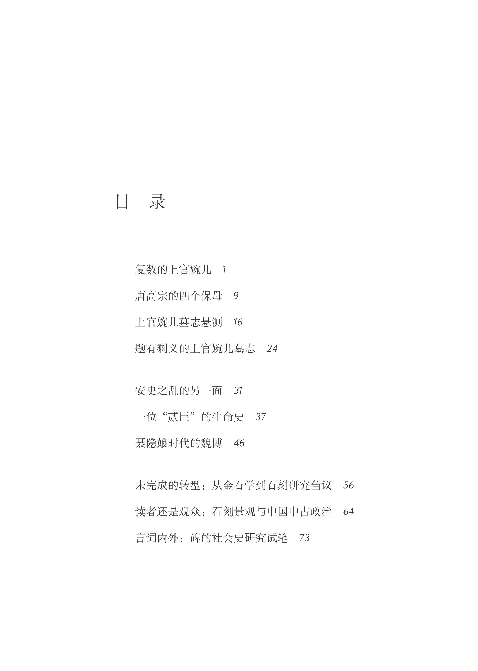 “近思录”小丛书之一种。唐代历史方面比较有趣的一些现象的研究,也可以称为历史八卦研究。主要篇目有《上官婉儿墓志趣谈》《唐高宗李治的四个保姆》《刺客聂隐娘》《安史之乱的另一面》等。该书最后还首发刊载陈尚君、仇鹿鸣、唐雯谈点校本新旧《五代史》修订的访谈录,此三人是主要的修订者,点校本二十四史的修订是目前的学界热点话题。