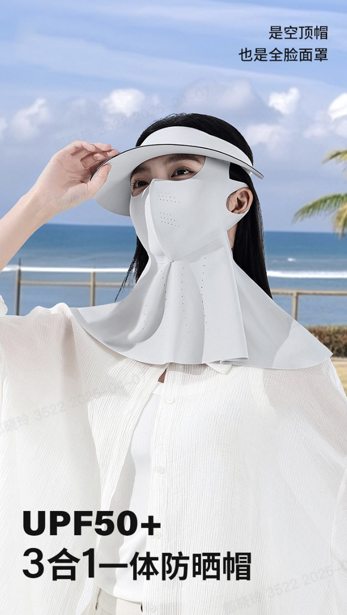 一件抵三件 洛诗琳夏季新款全脸防晒帽遮阳面罩女冰丝透气防紫外线护颈三合一可拆卸防晒面罩 团01032(7天左右发货)