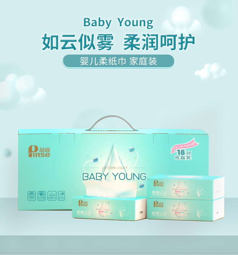品萱baby young乳霜保湿柔纸巾120抽18包 礼盒装
