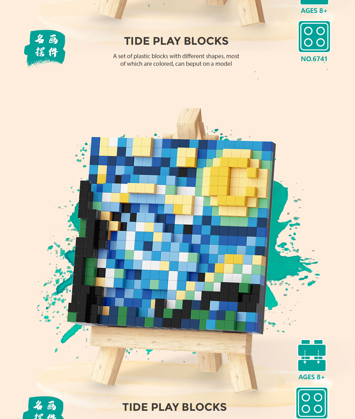 【世界名画拼装积木】送画架 小颗粒拼装益智立体拼图儿童礼物