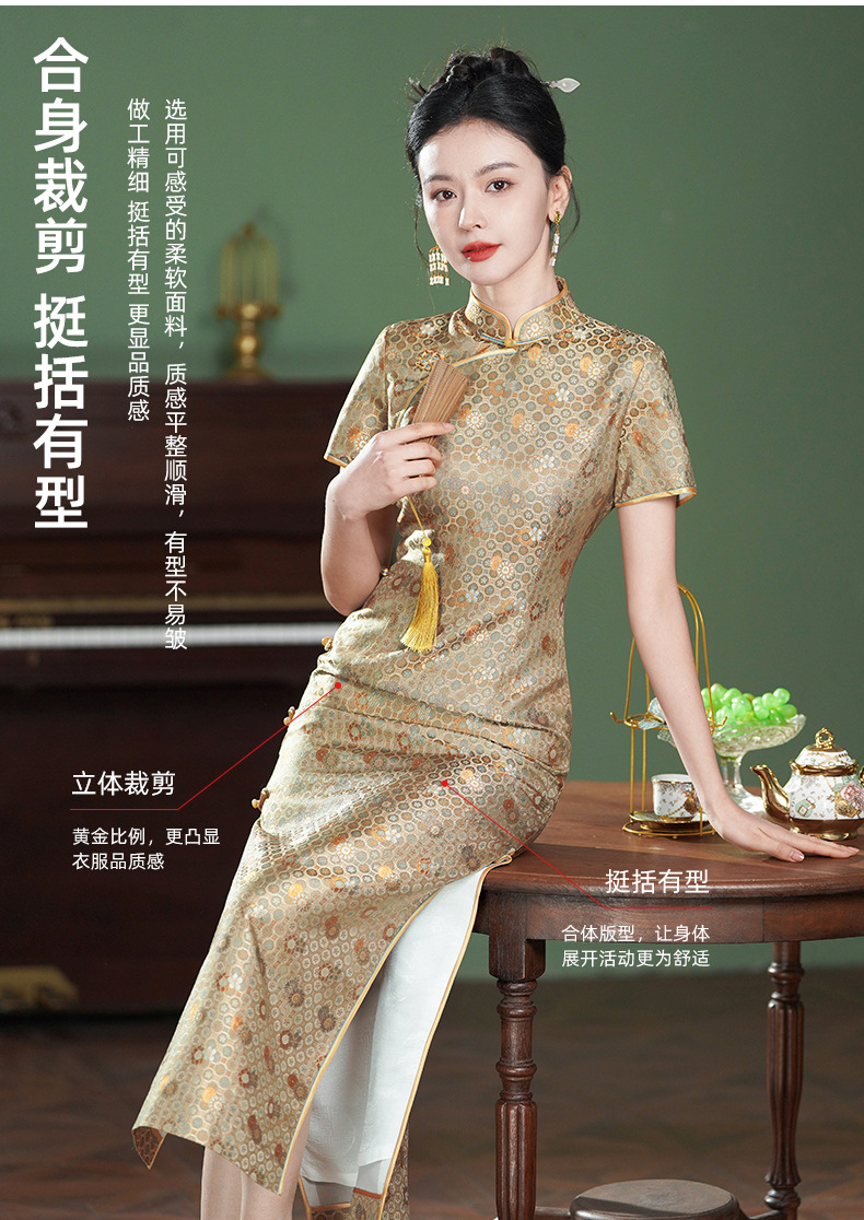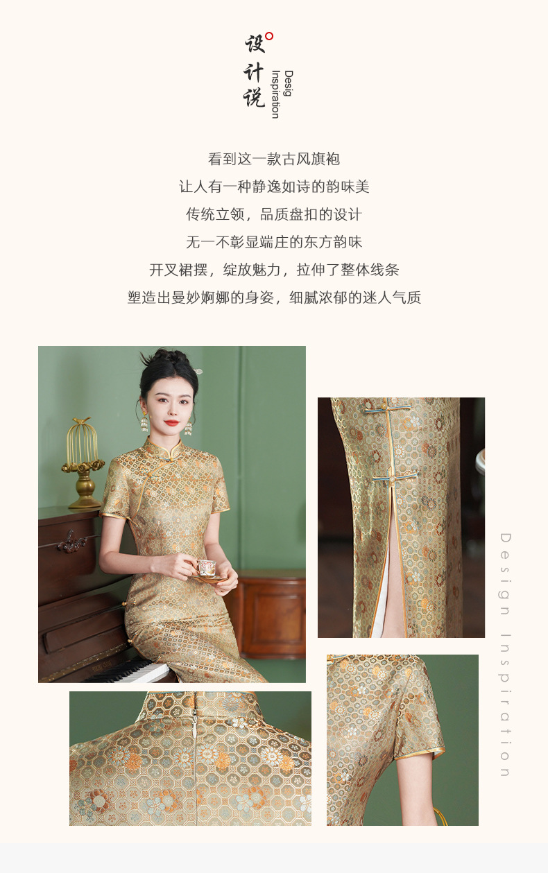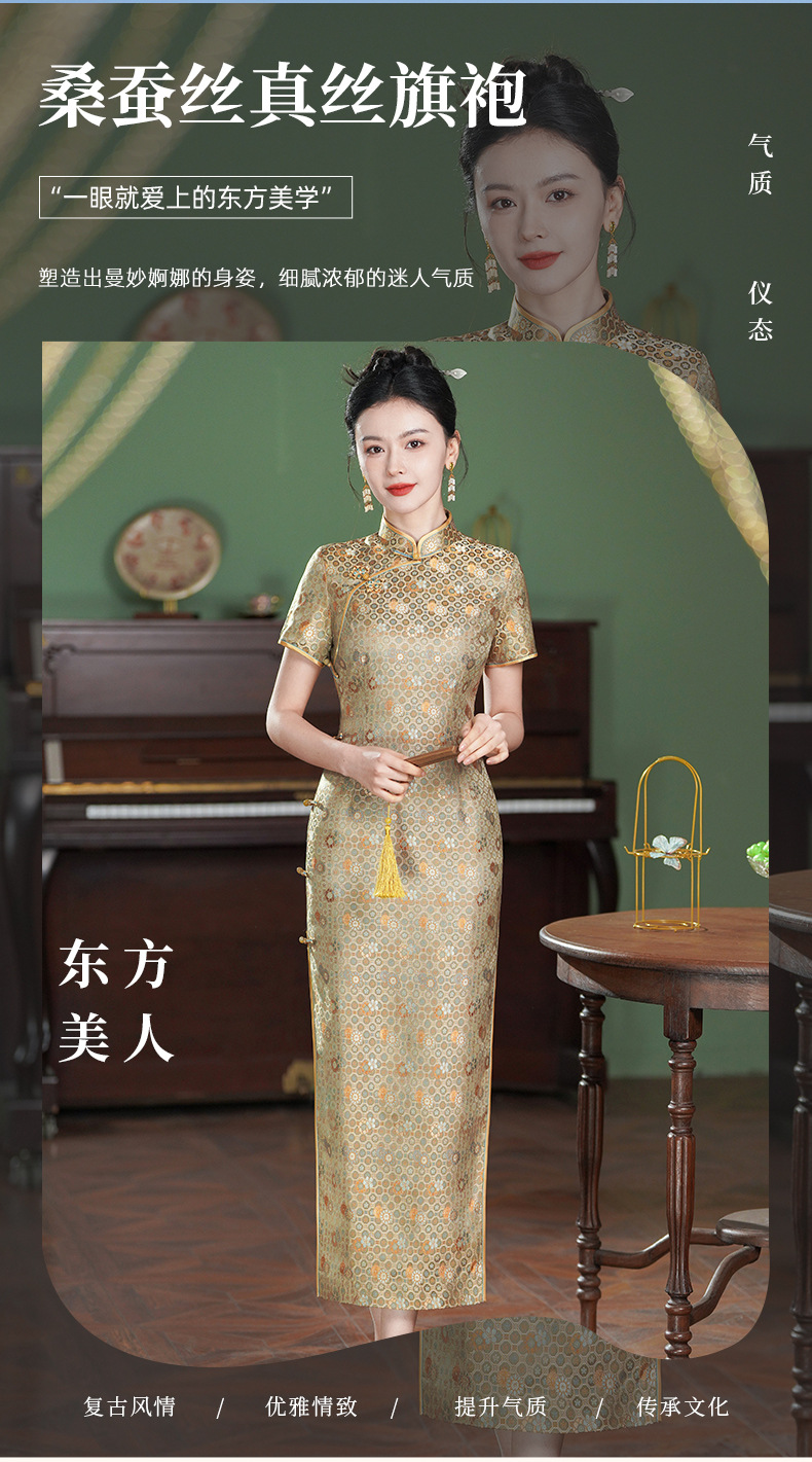TZRY-新款爆款非遗宋锦旗袍真丝桑蚕丝高端春夏秋季礼服日常气质旗袍裙