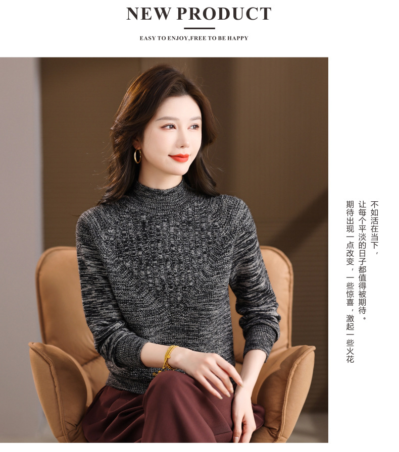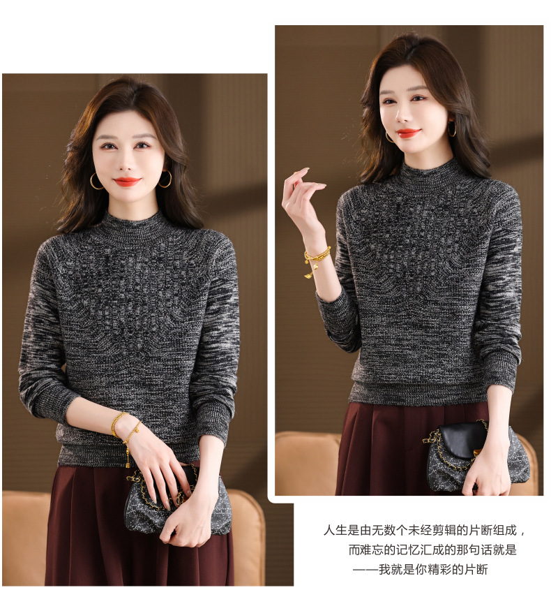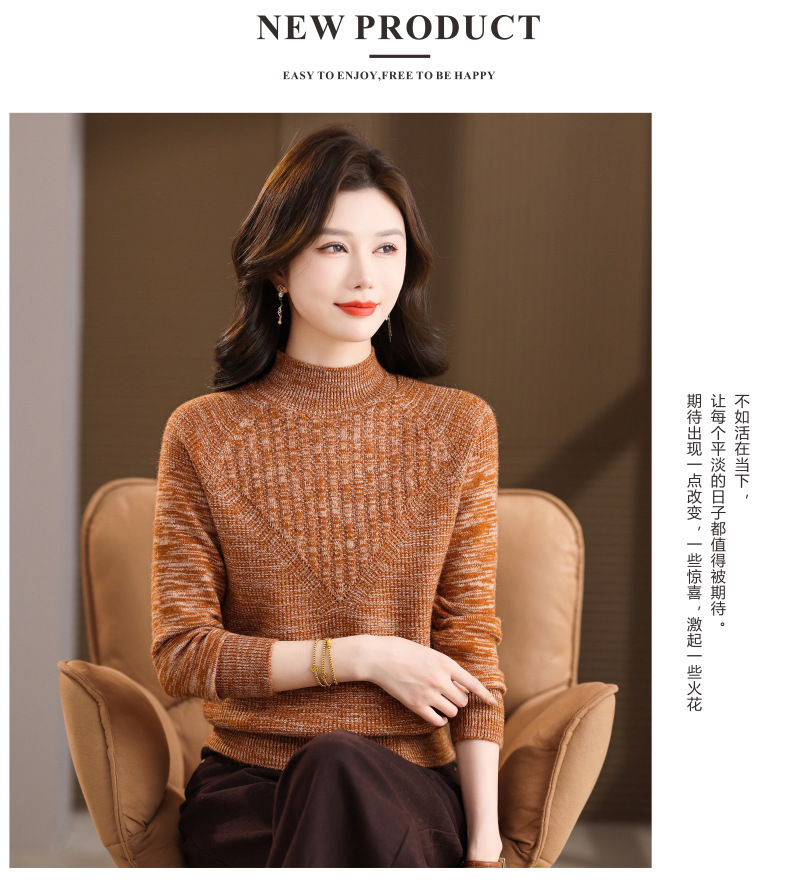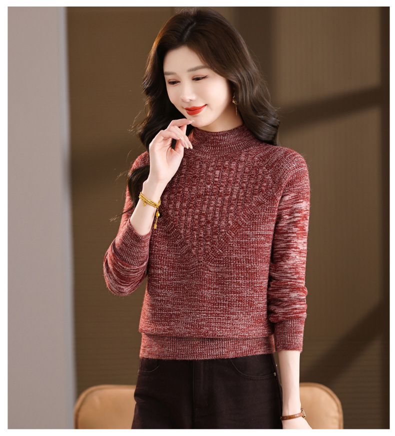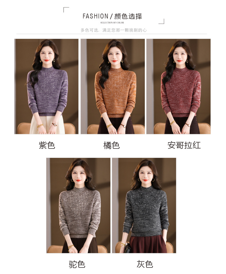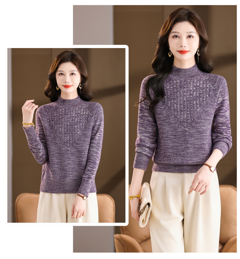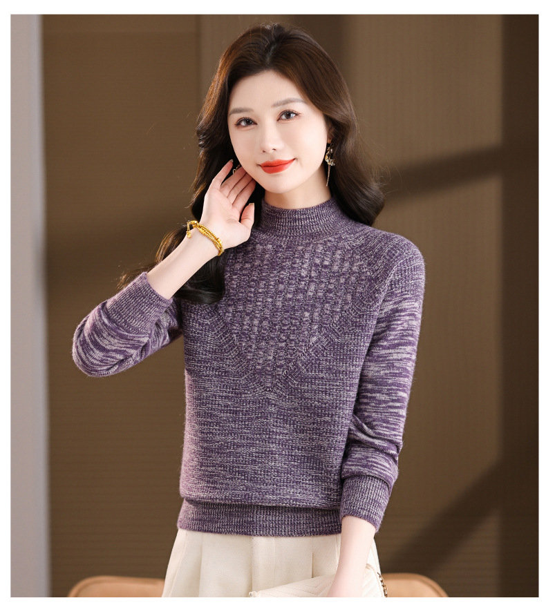 CC复古杂色半高领提花针织衫女秋冬季显瘦厚款紫色套头内搭外穿毛衣