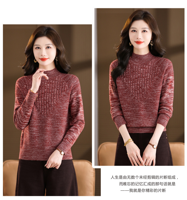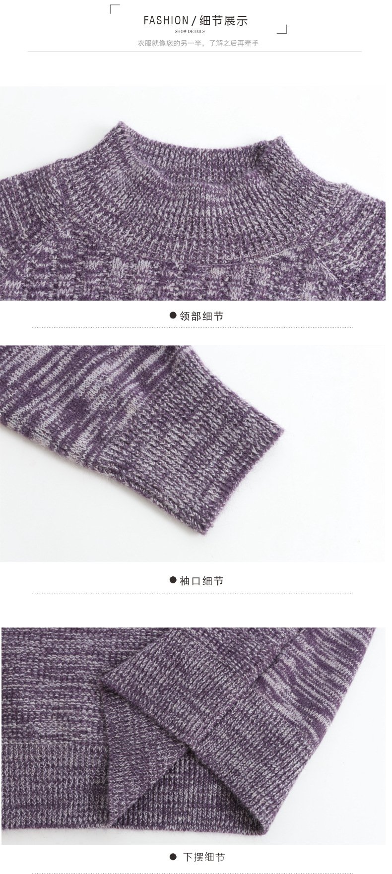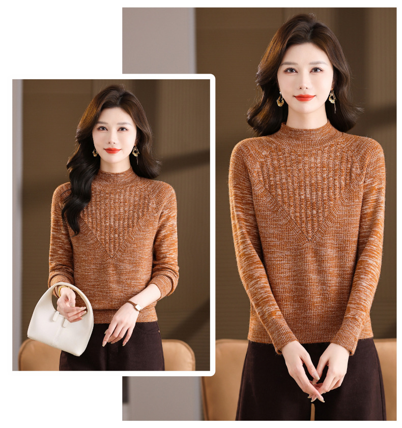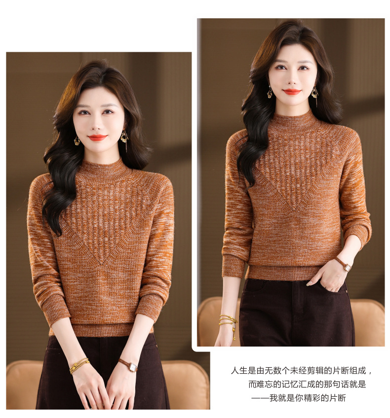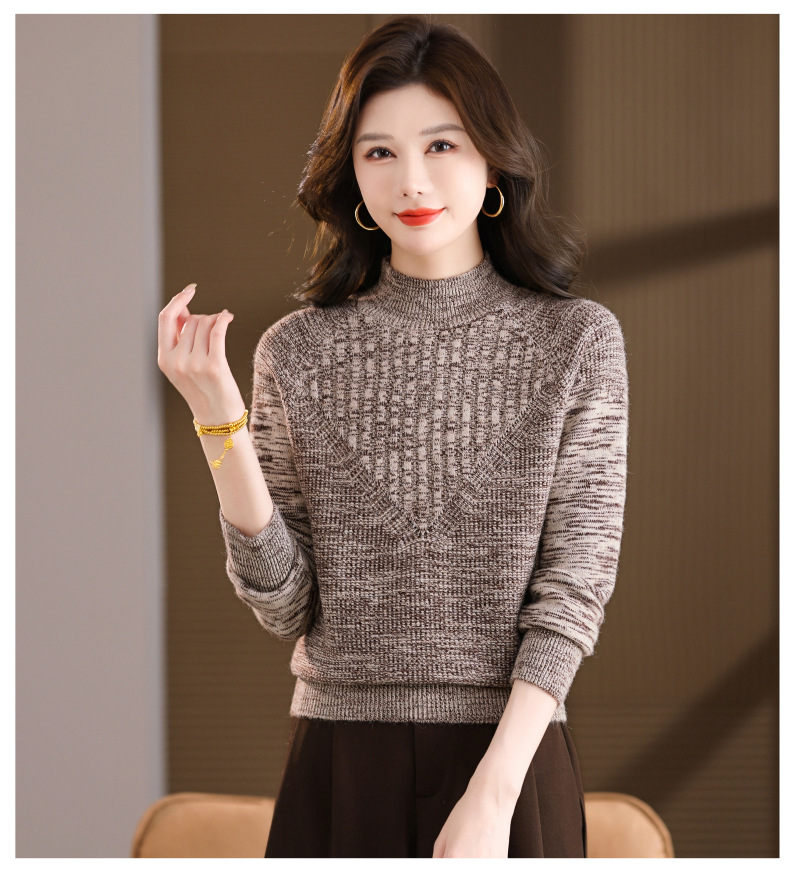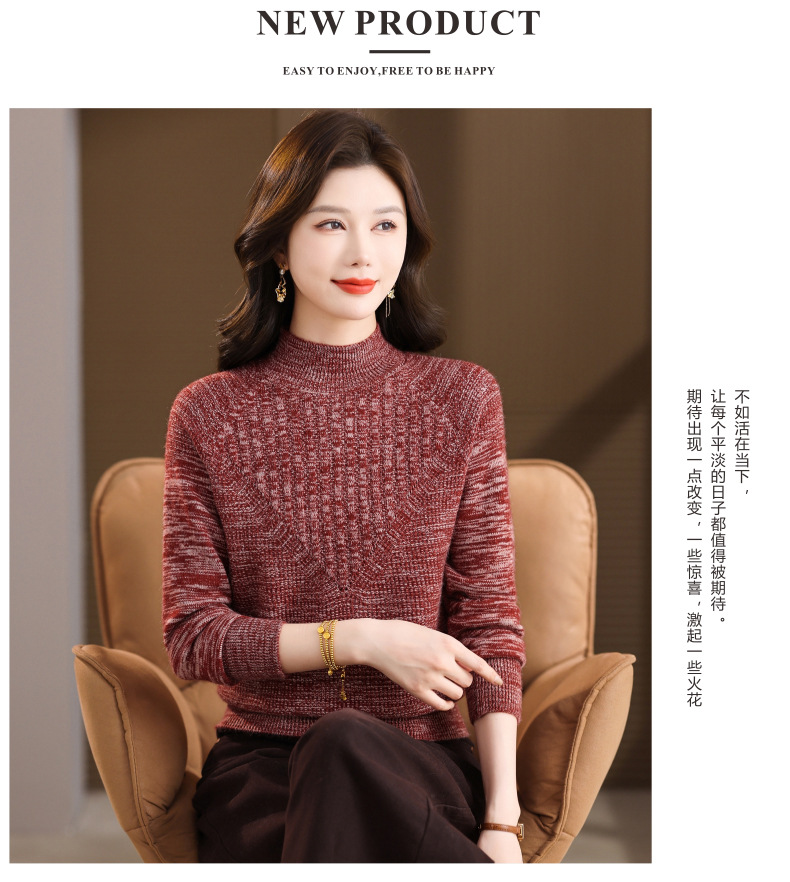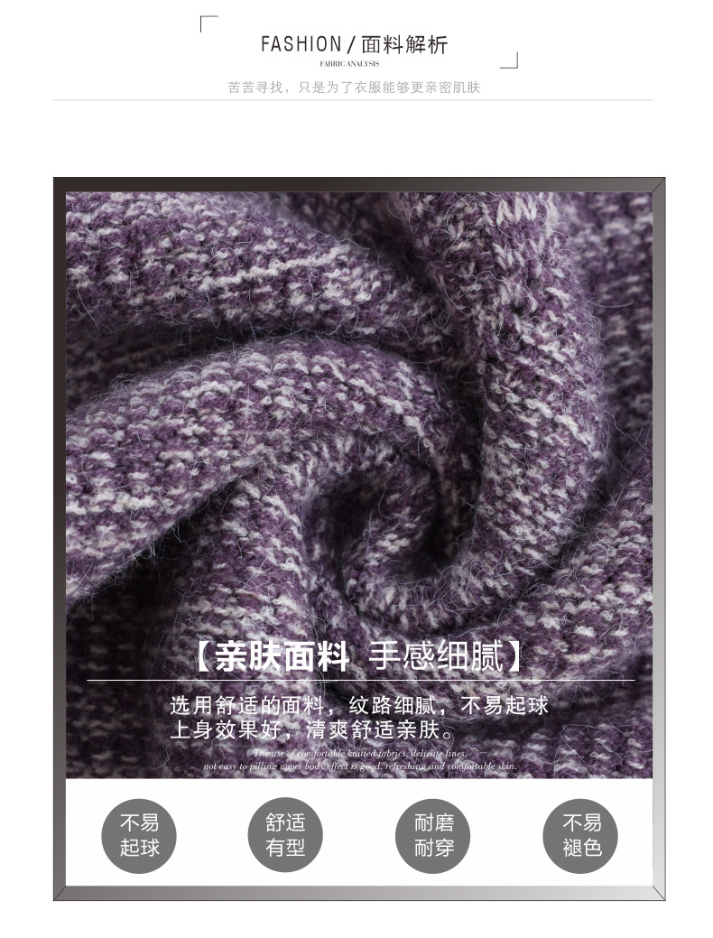 CC复古杂色半高领提花针织衫女秋冬季显瘦厚款紫色套头内搭外穿毛衣