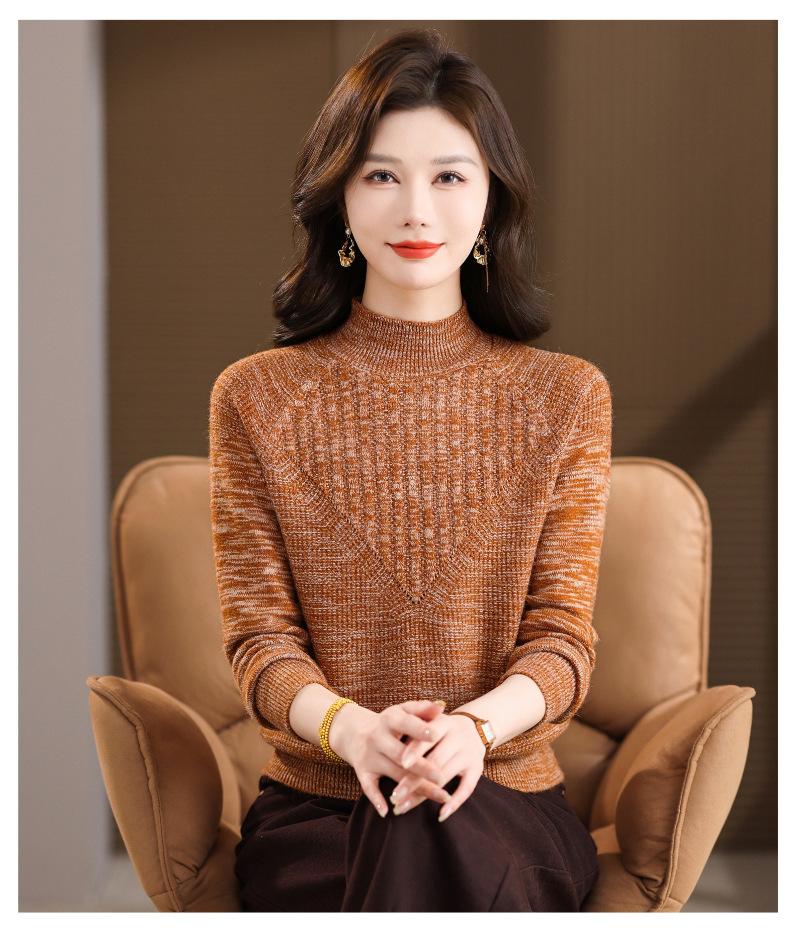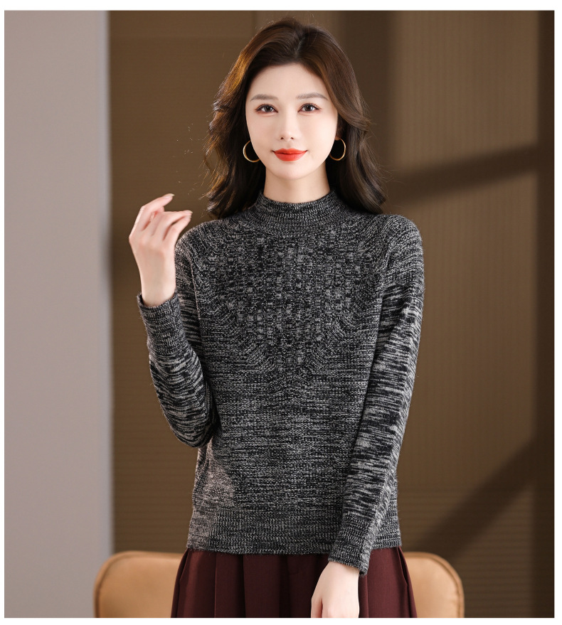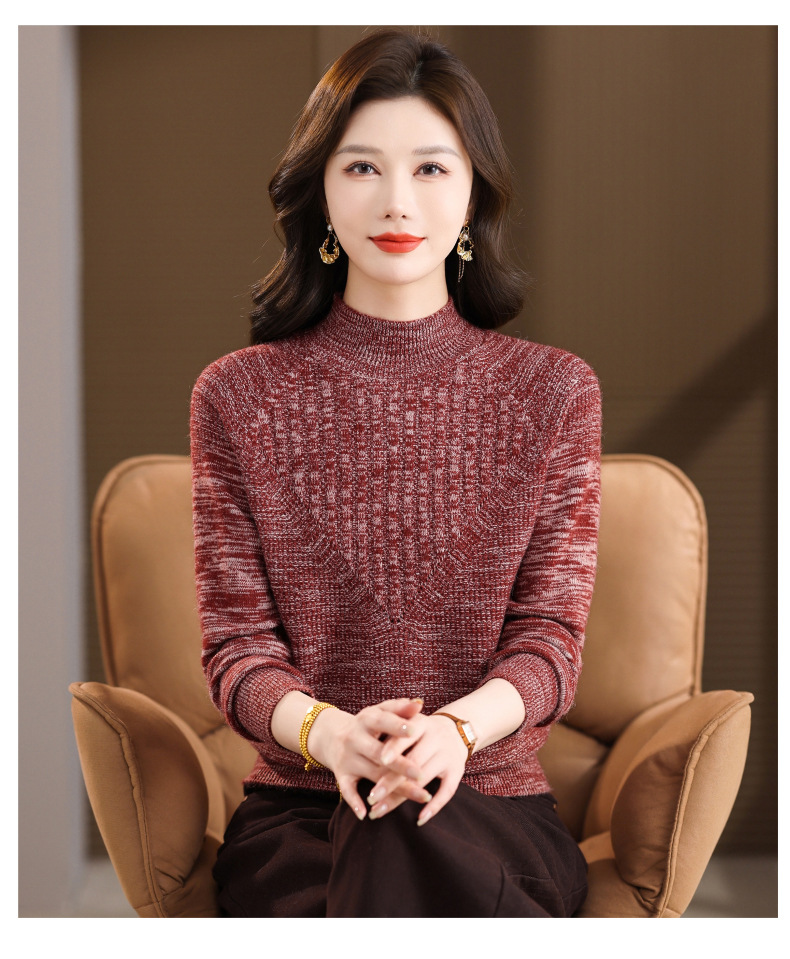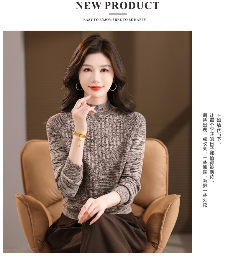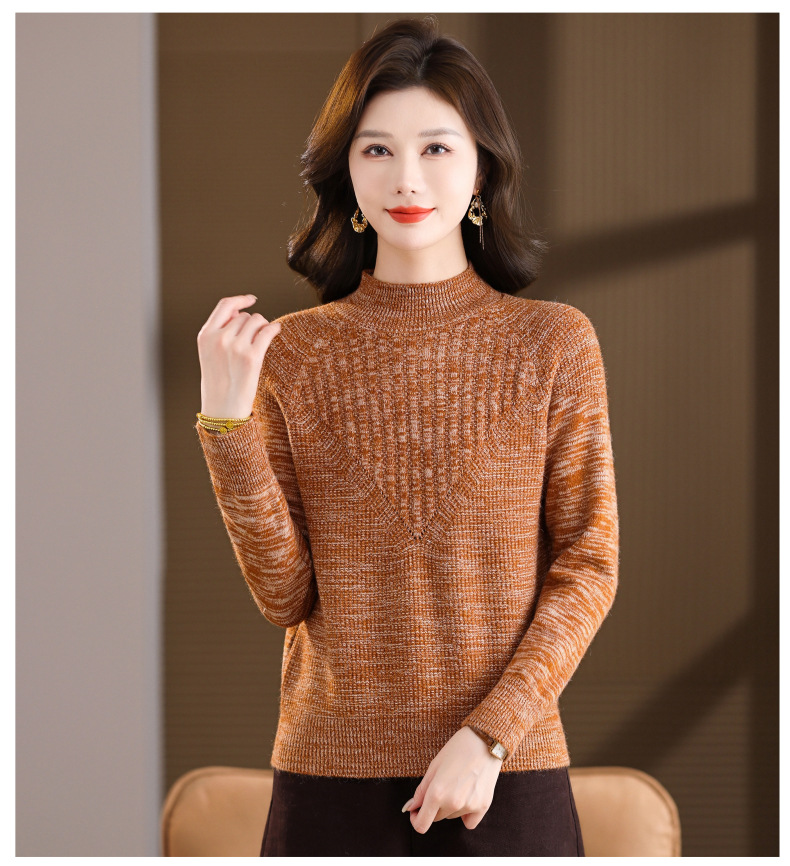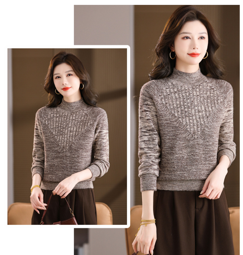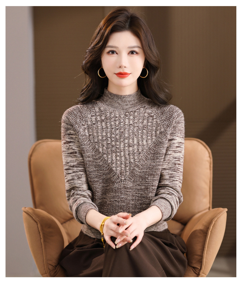 CC复古杂色半高领提花针织衫女秋冬季显瘦厚款紫色套头内搭外穿毛衣