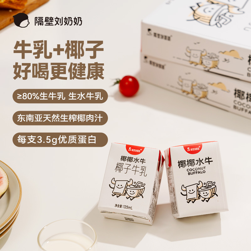 分销【秋田满满】8周年隔壁刘奶奶 水牛配方椰椰水牛奶125ml*9盒/3箱椰香浓郁 水牛奶系列 味道醇正 口感顺滑 宝宝爱喝的健康奶