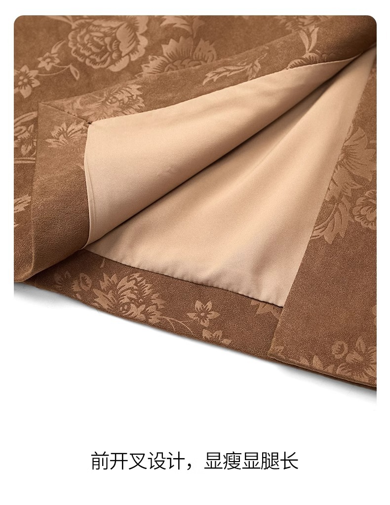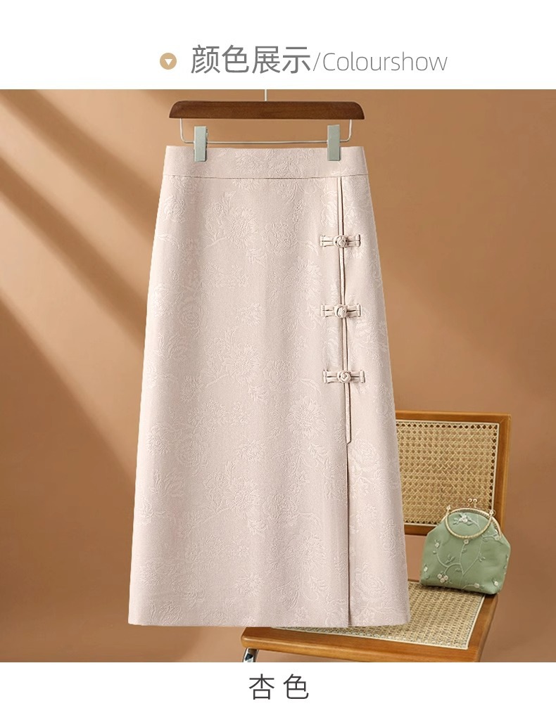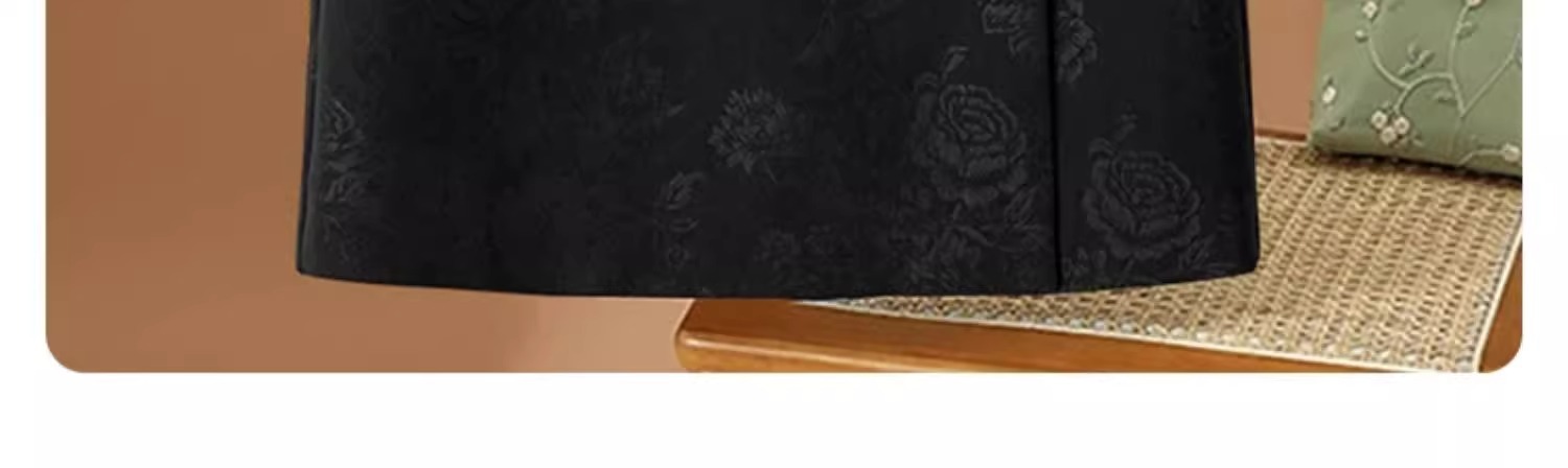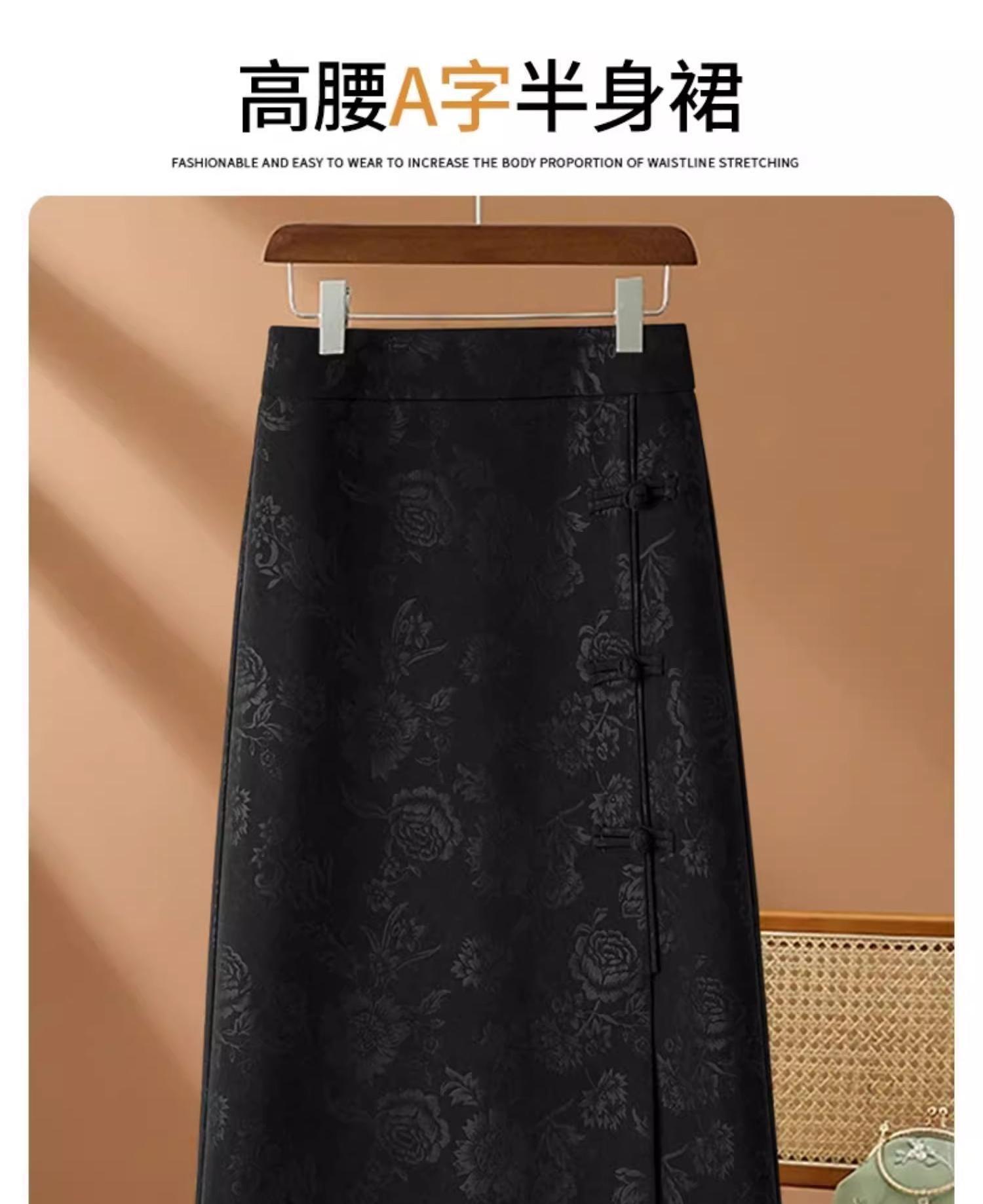丁摩 高端黑色半身裙女春秋季新款复古国风印花直筒裙包臀a字裙子5ZF-2356