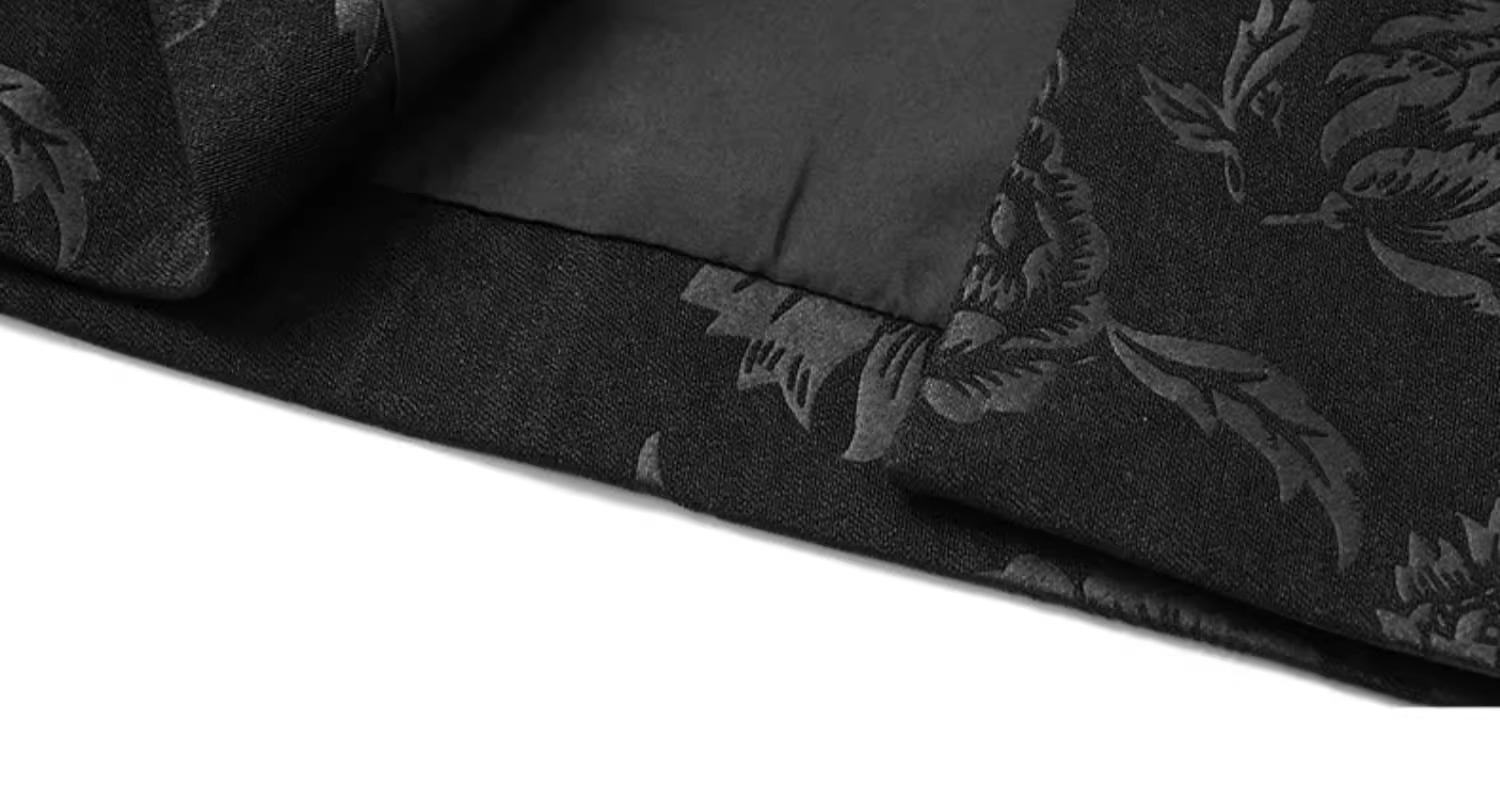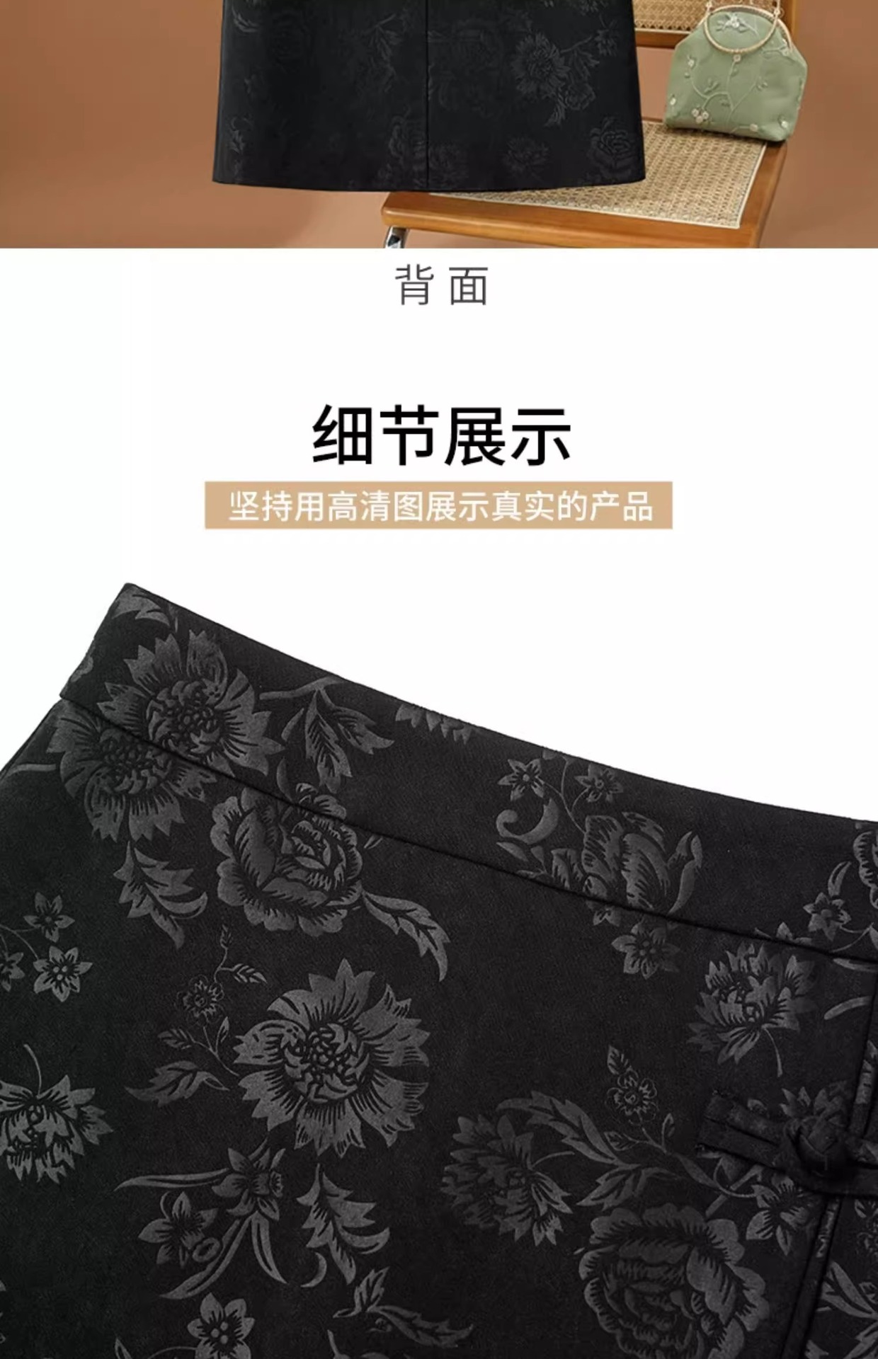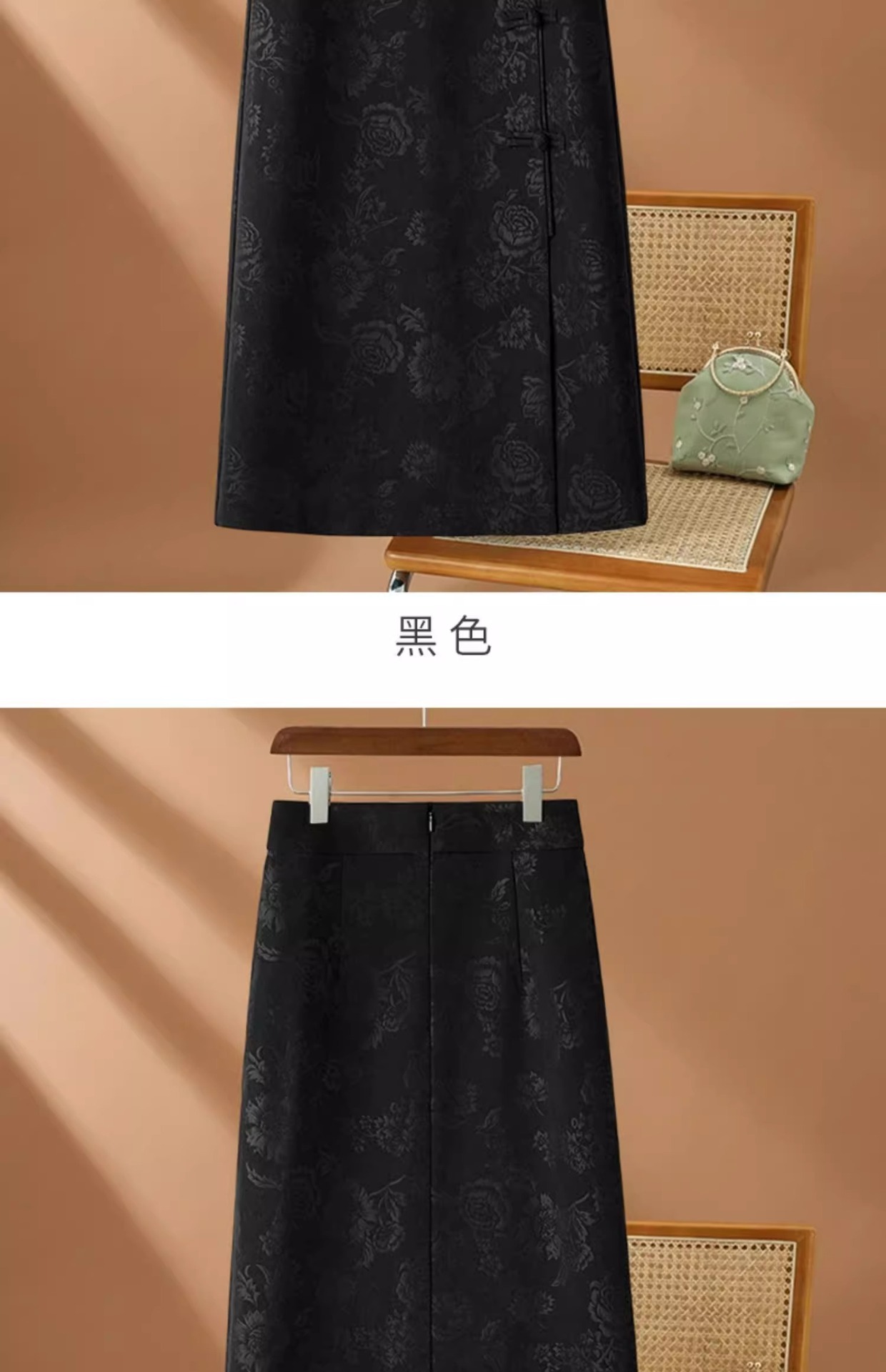 丁摩 高端黑色半身裙女春秋季新款复古国风印花直筒裙包臀a字裙子5ZF-2356
