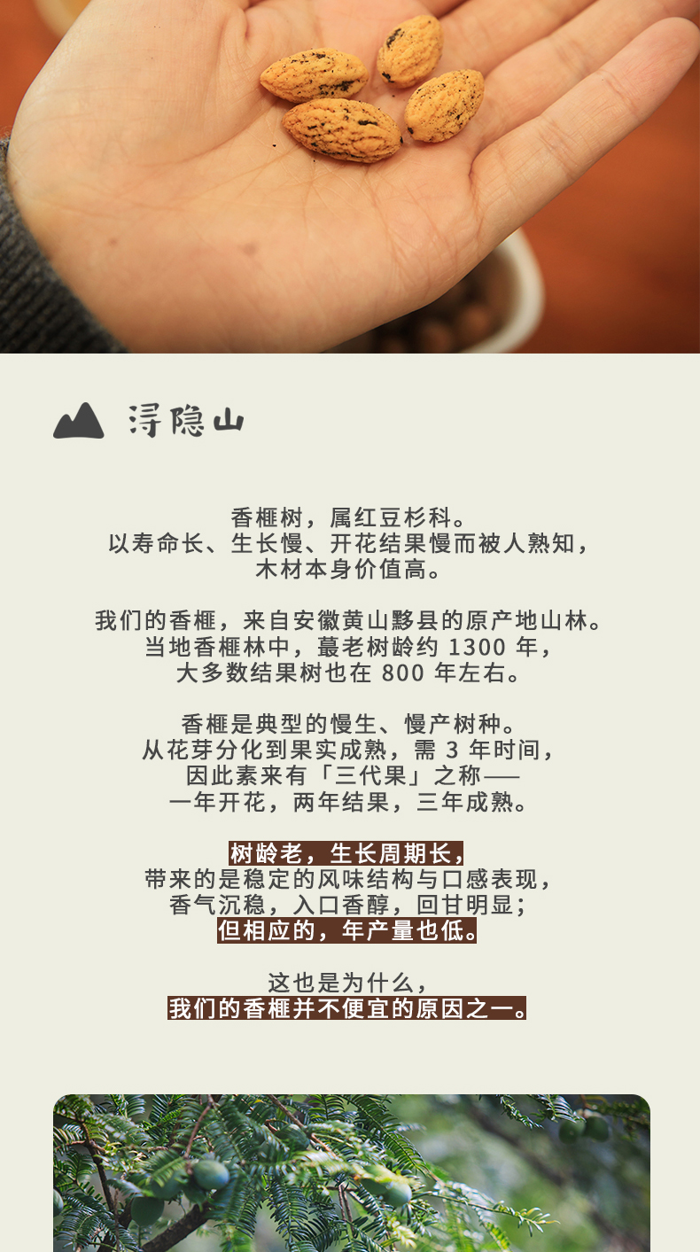 浔隐山 黄山黟县香榧 坚果零食炒货 地理标志产品250g/袋