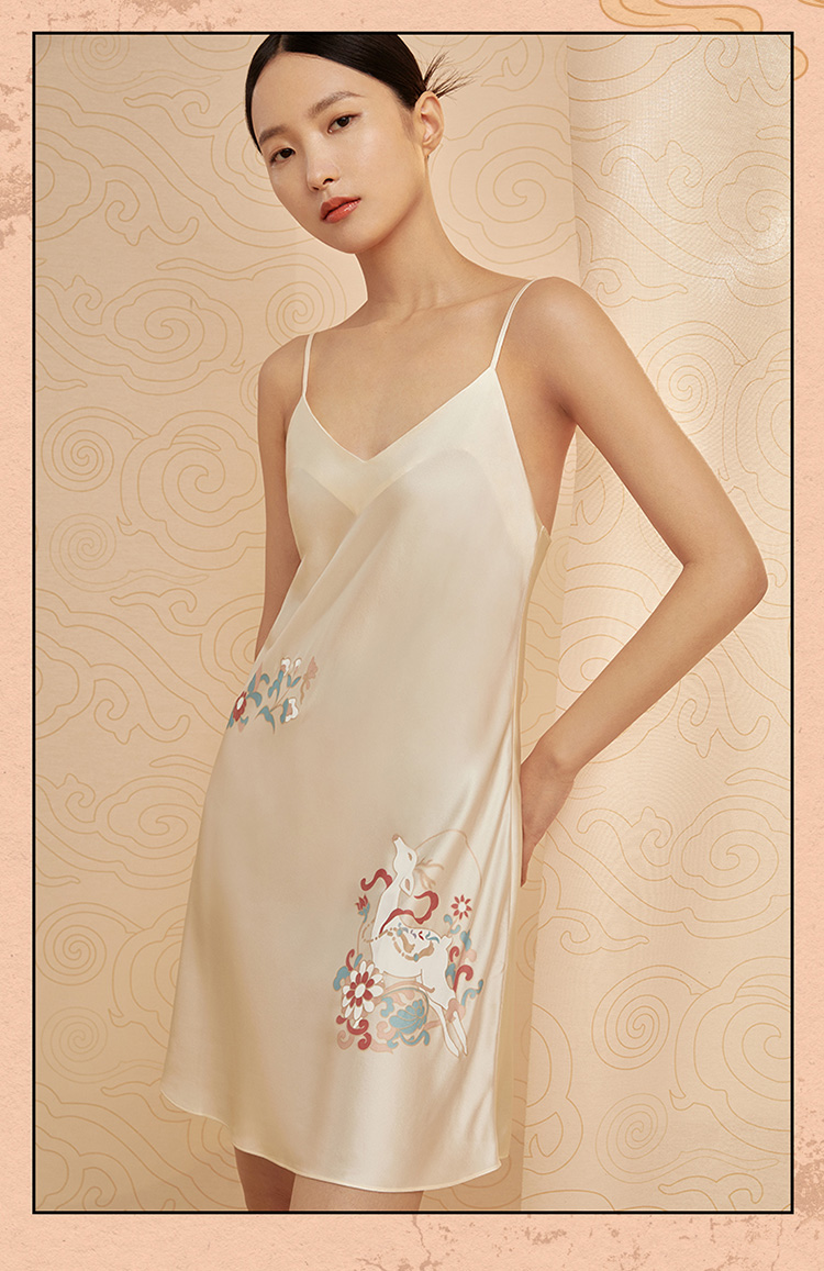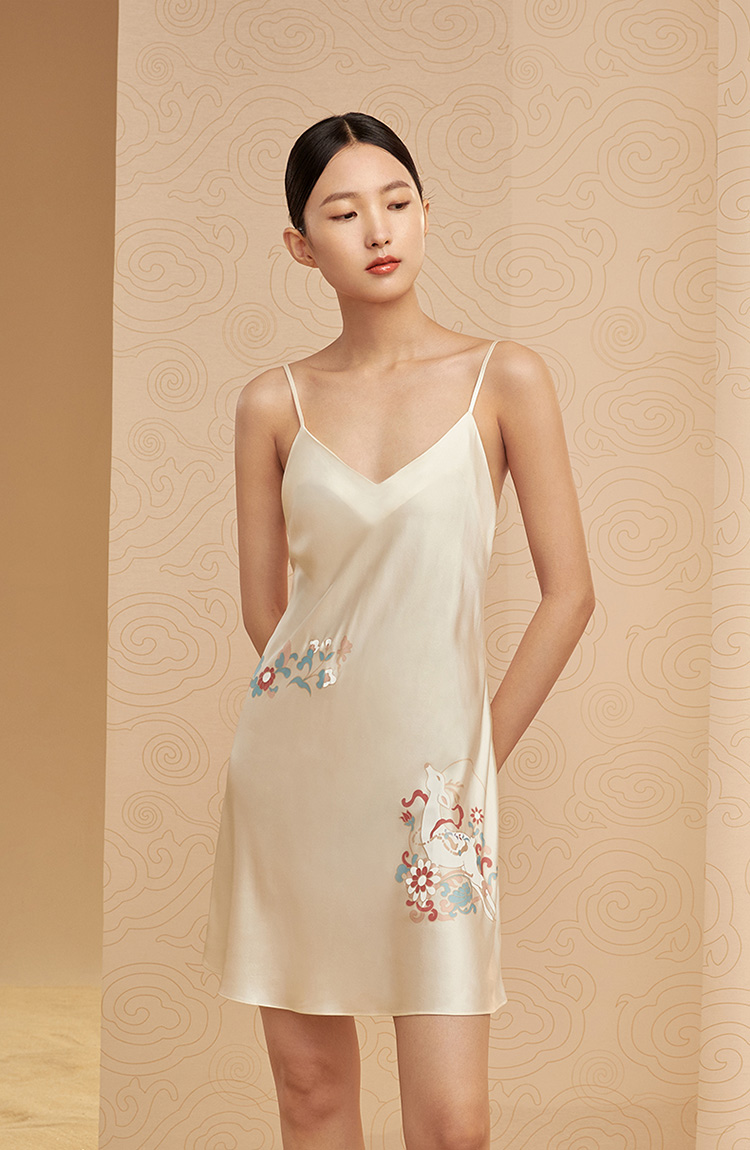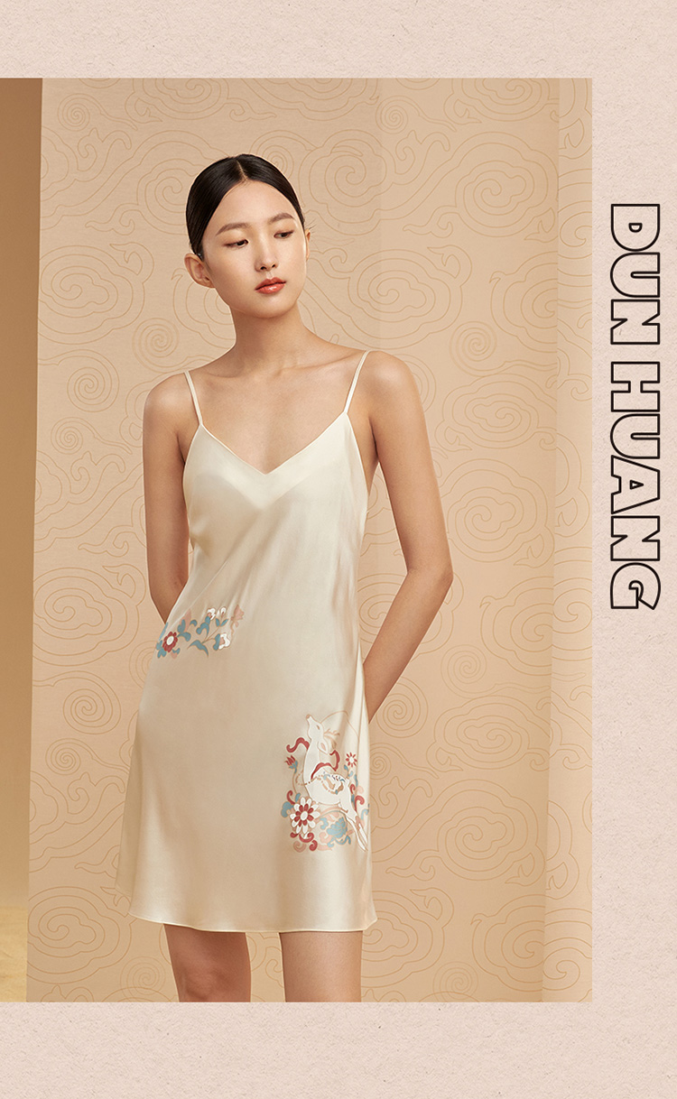 金三塔 敦煌系列-女重磅真丝定位花吊带裙YSFCA318