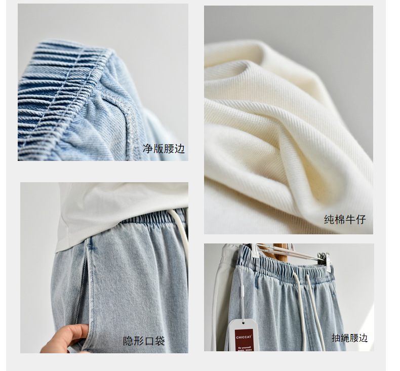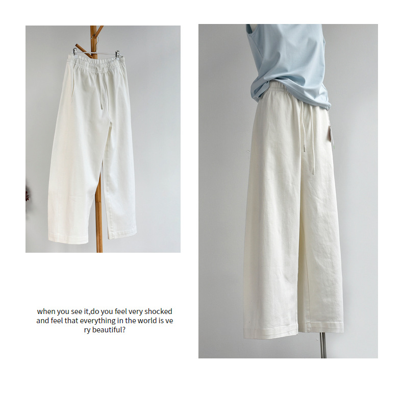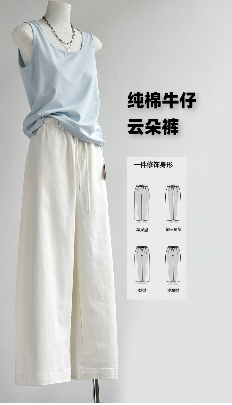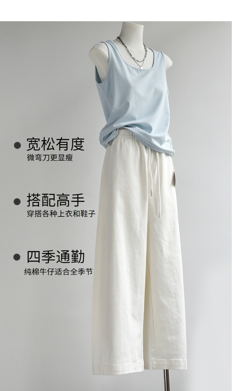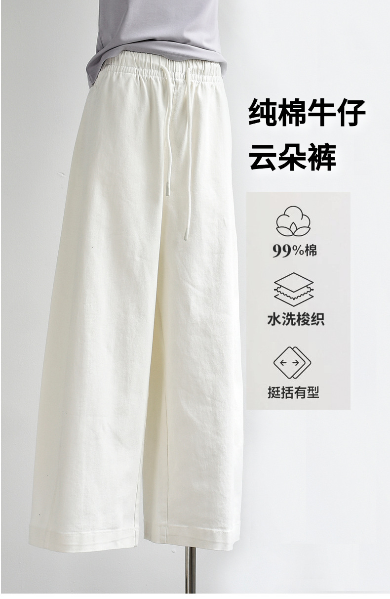 丁摩 【白色牛仔裤】女装新春夏纯棉白色牛仔阔腿弯刀长腿休闲裤子女6ZF-C052