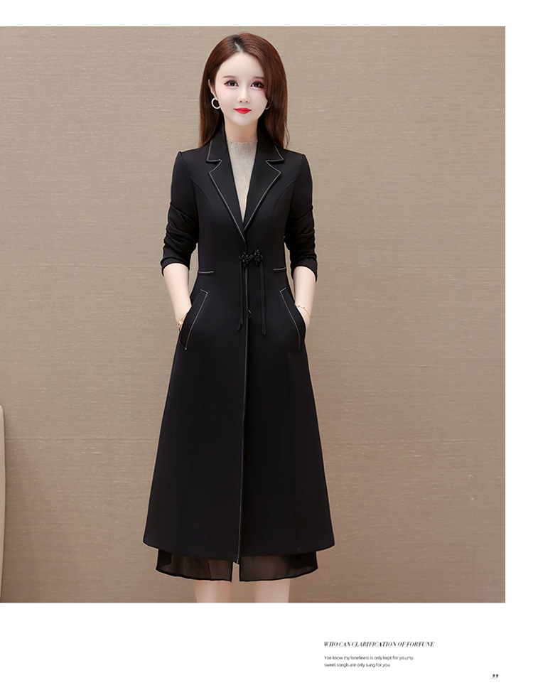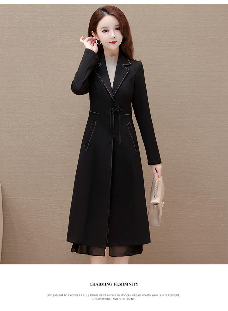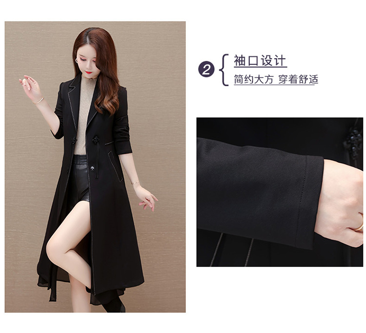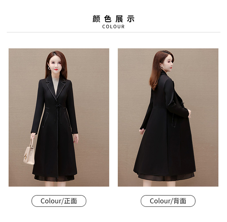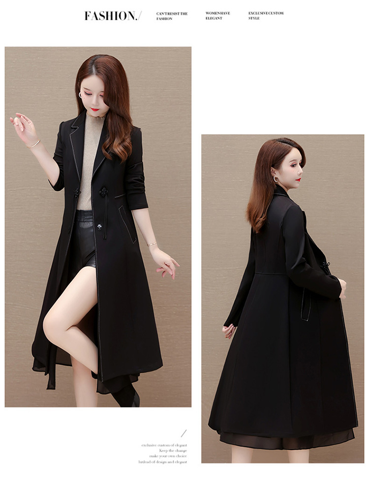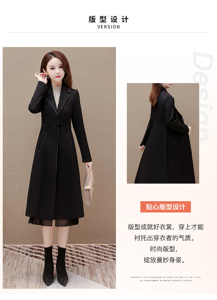 QYM HS23C15-Y时尚风衣外套中式中国结盘扣大衣拼结长款外套