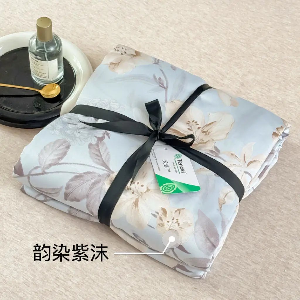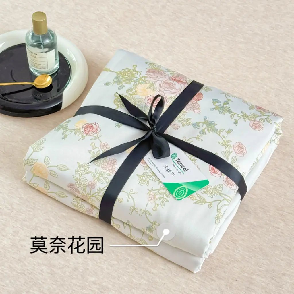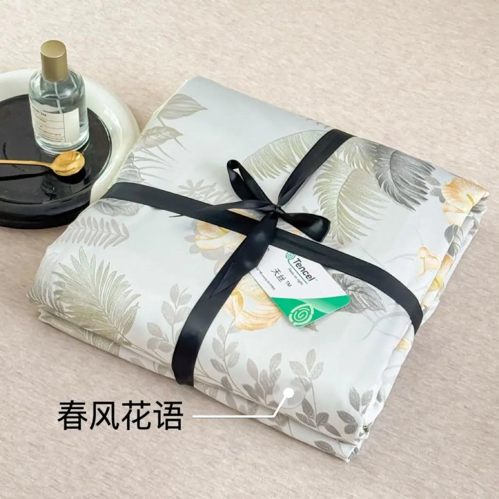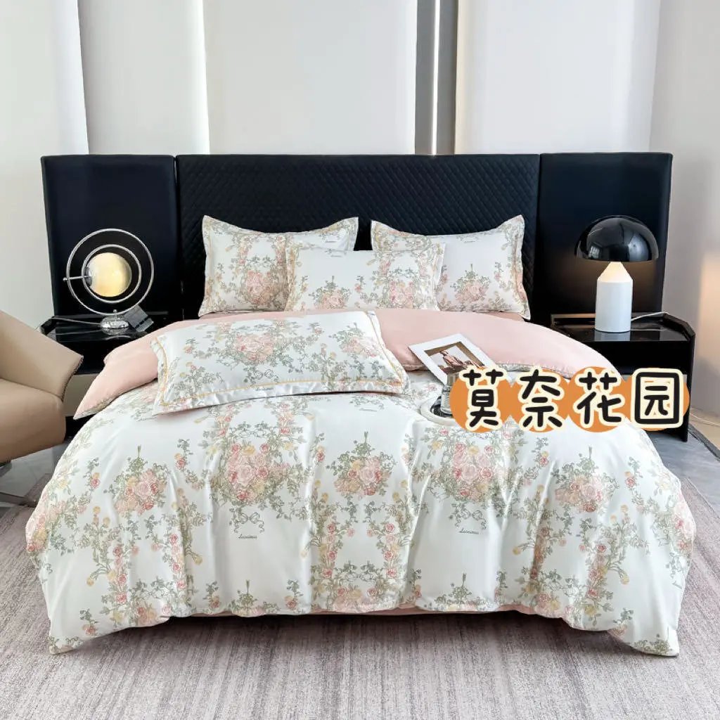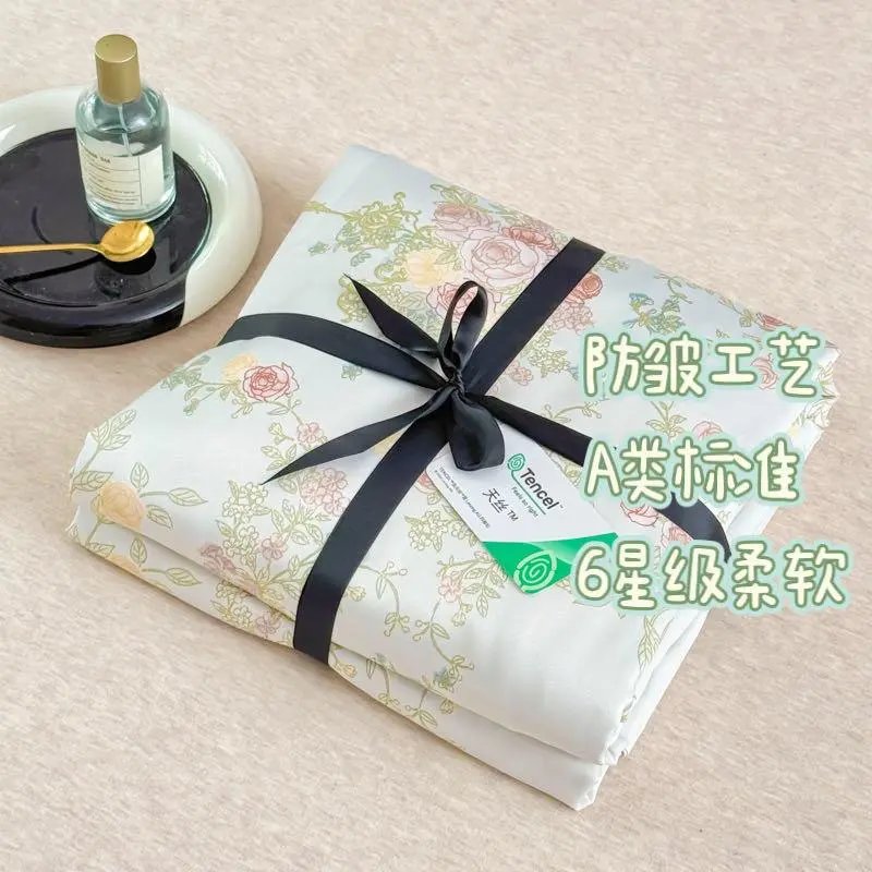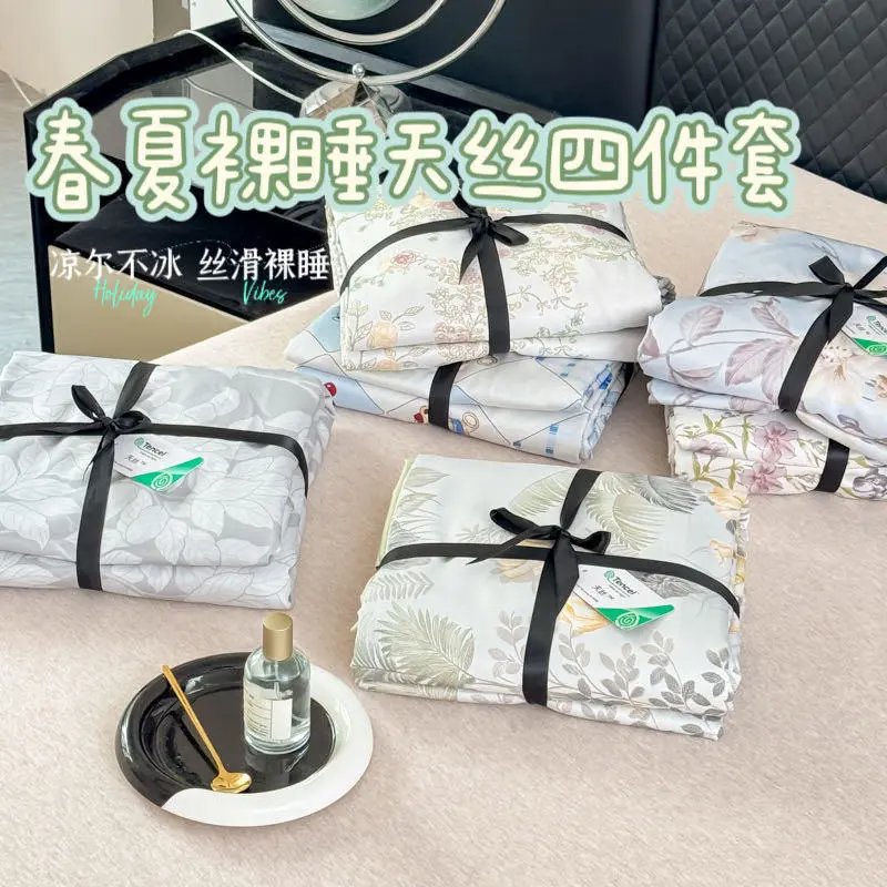 暑假特惠🌈🔥裸睡必备❗️超划算❗️超划算❗️裸感呼吸治愈系床品来袭🌿✨裸睡级丝滑触感天丝四件套大放送💥 ✅精选72%莱塞尔天丝➕28%超细旦纤维,面料高支高密、吸湿透气,手感宛如第二层肌肤般亲肤顺滑! ✅AB面双色美学➕春日花园色系高级感满满让人爱不释手 ✅隐形拉链+绑带细节满满~是一场超治愈的裸睡床品套件没错啦!