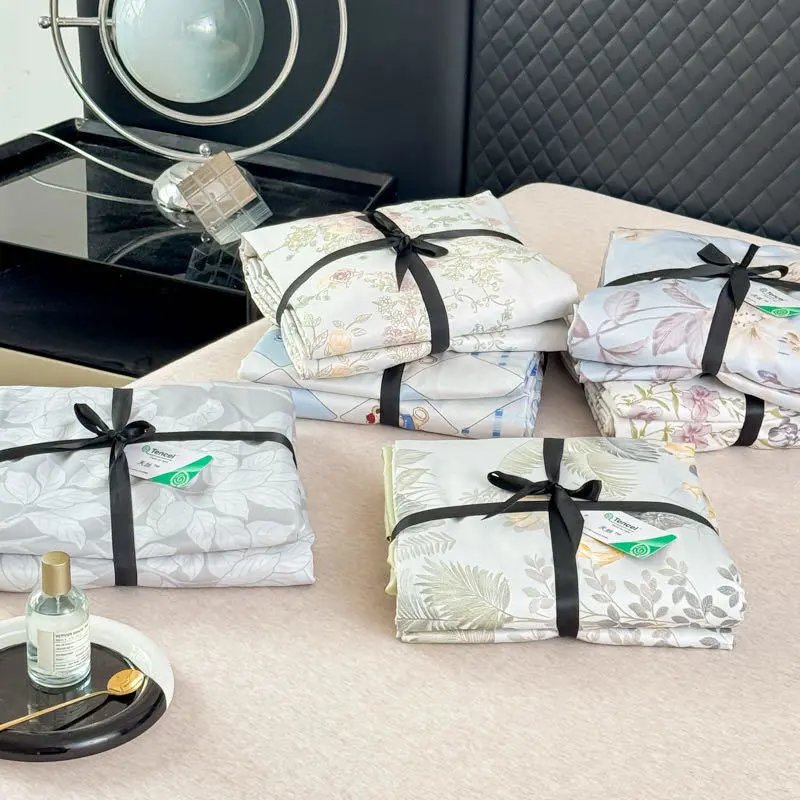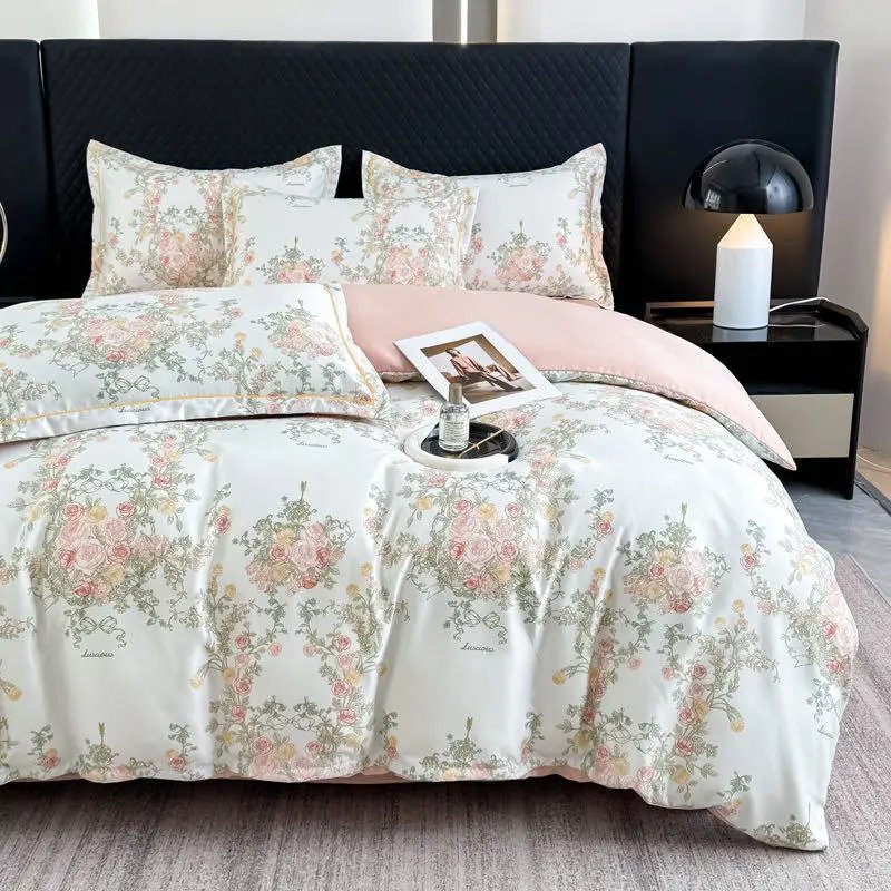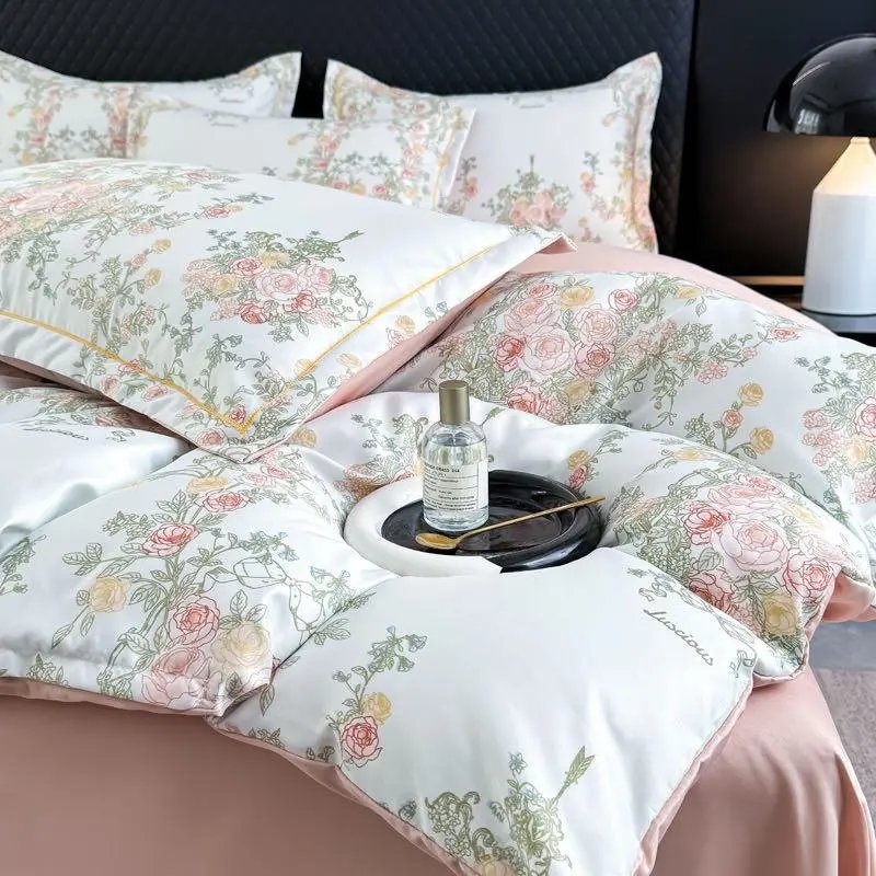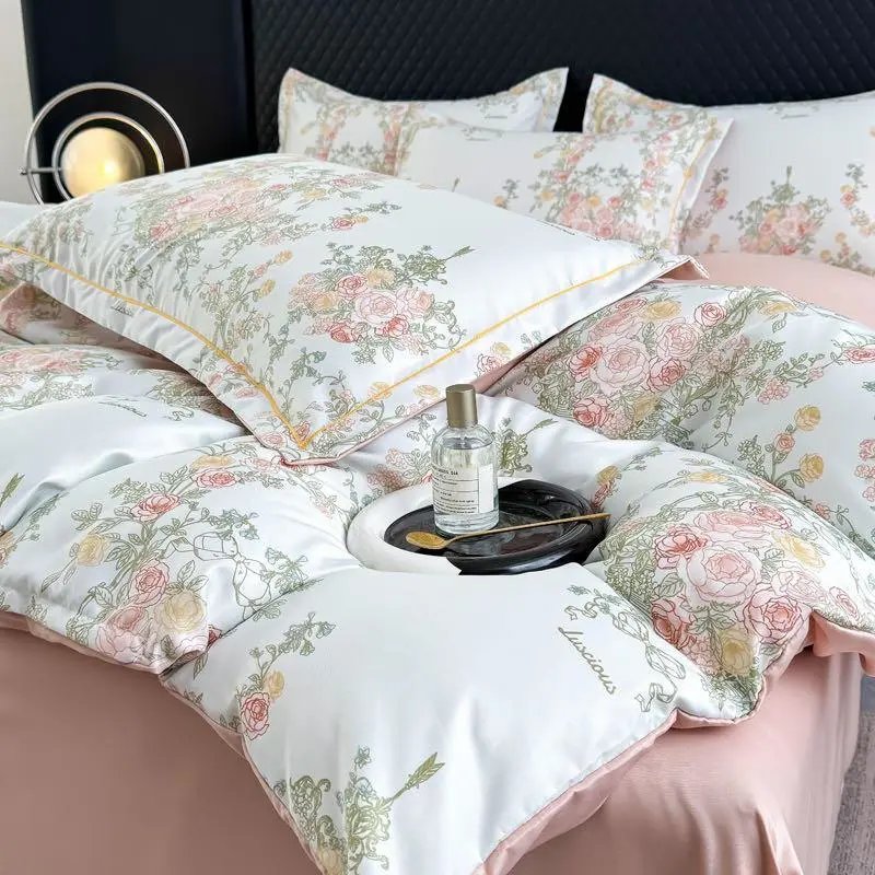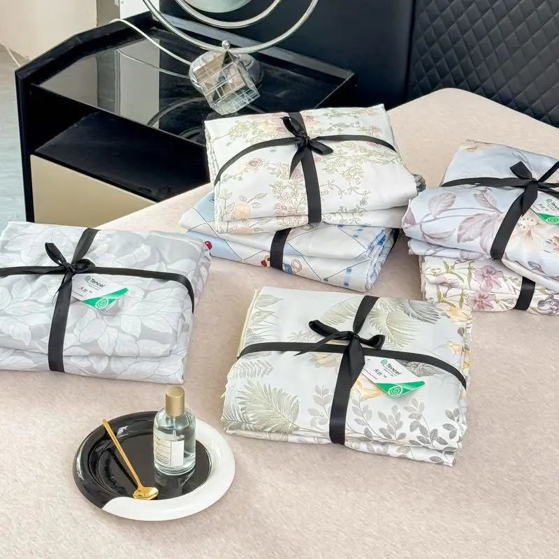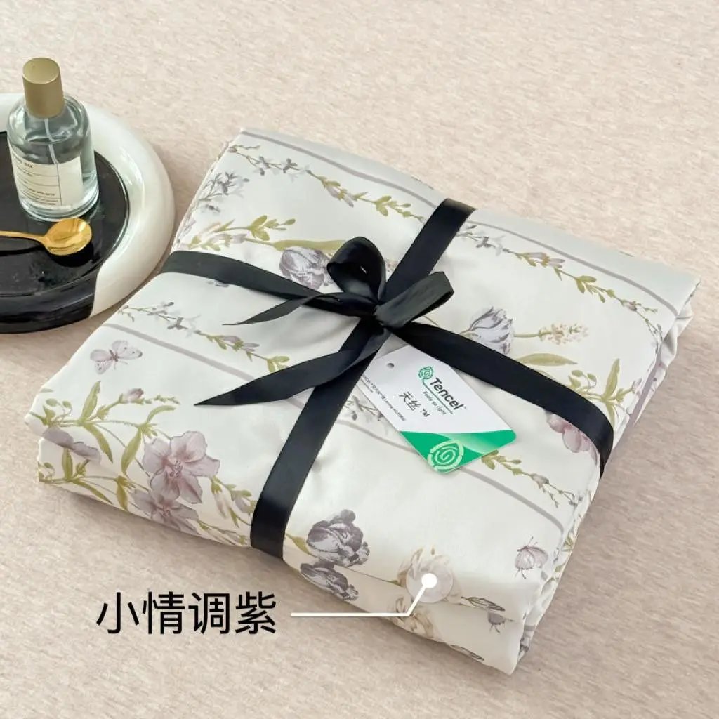 暑假特惠🌈🔥裸睡必备❗️超划算❗️超划算❗️裸感呼吸治愈系床品来袭🌿✨裸睡级丝滑触感天丝四件套大放送💥 ✅精选72%莱塞尔天丝➕28%超细旦纤维,面料高支高密、吸湿透气,手感宛如第二层肌肤般亲肤顺滑! ✅AB面双色美学➕春日花园色系高级感满满让人爱不释手 ✅隐形拉链+绑带细节满满~是一场超治愈的裸睡床品套件没错啦!