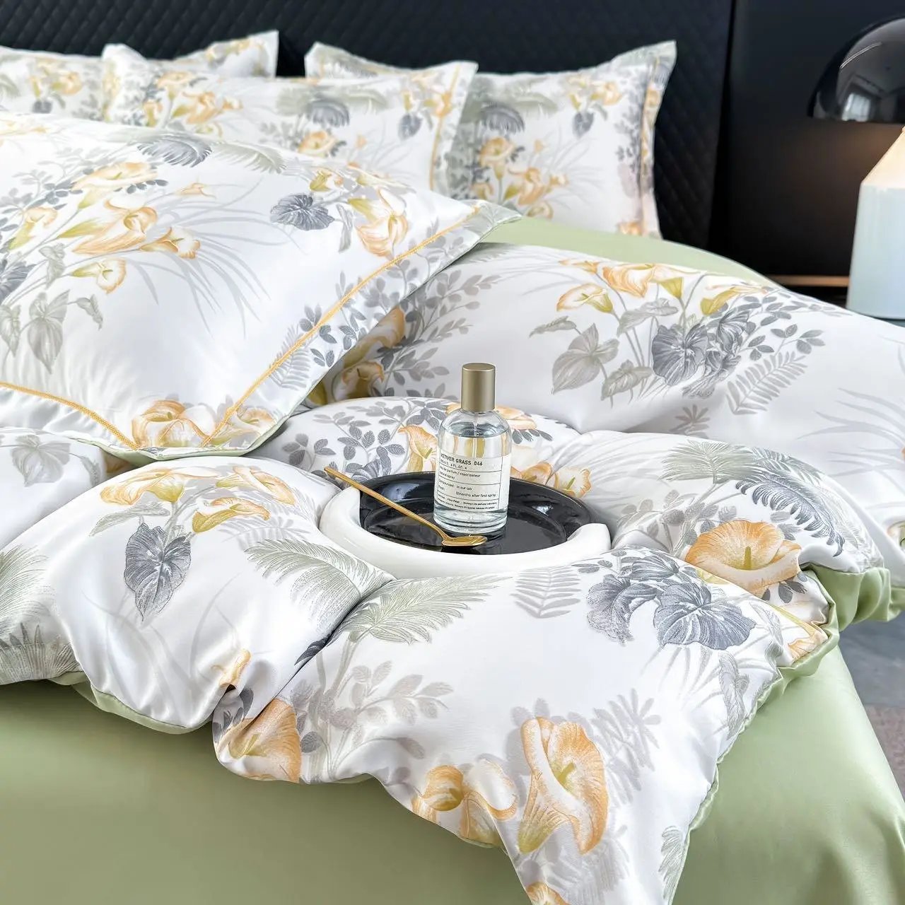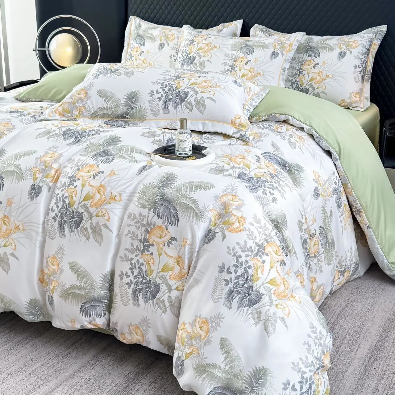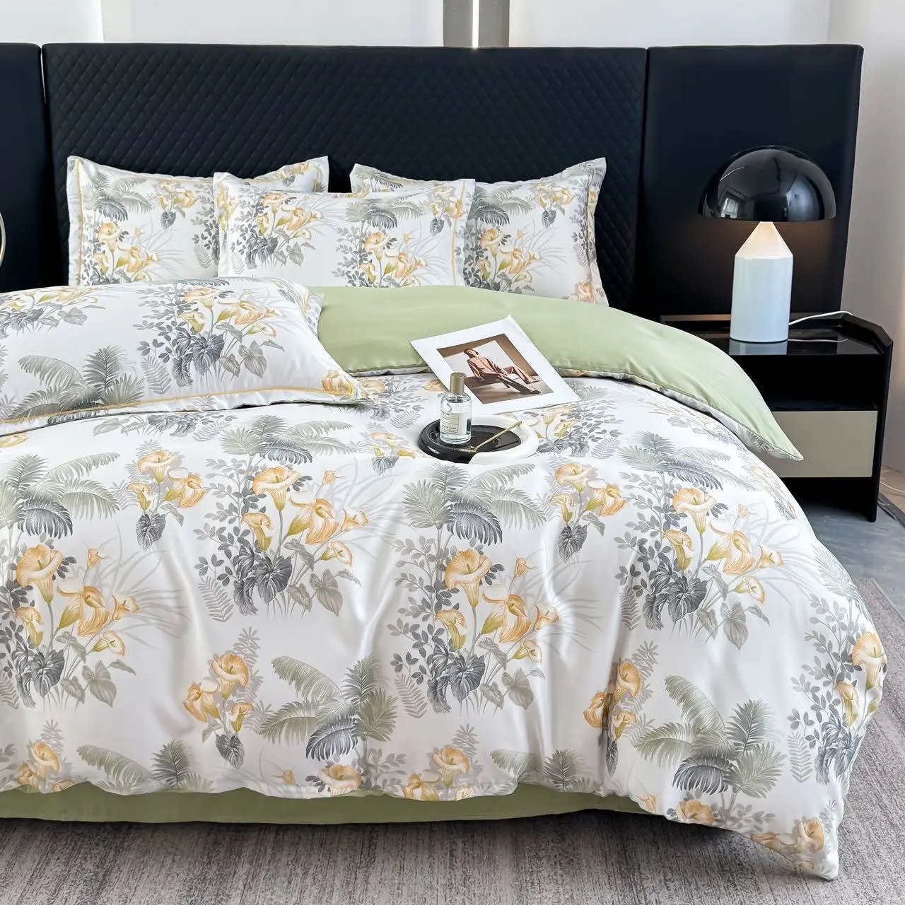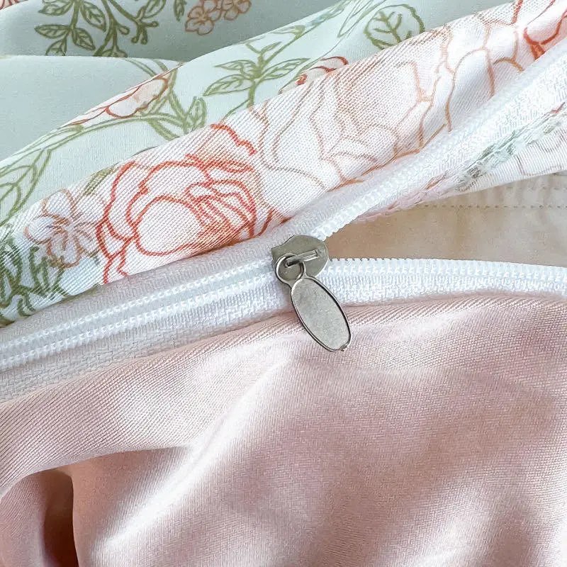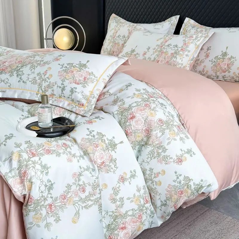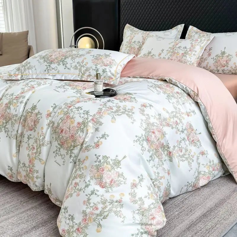 暑假特惠🌈🔥裸睡必备❗️超划算❗️超划算❗️裸感呼吸治愈系床品来袭🌿✨裸睡级丝滑触感天丝四件套大放送💥 ✅精选72%莱塞尔天丝➕28%超细旦纤维,面料高支高密、吸湿透气,手感宛如第二层肌肤般亲肤顺滑! ✅AB面双色美学➕春日花园色系高级感满满让人爱不释手 ✅隐形拉链+绑带细节满满~是一场超治愈的裸睡床品套件没错啦!