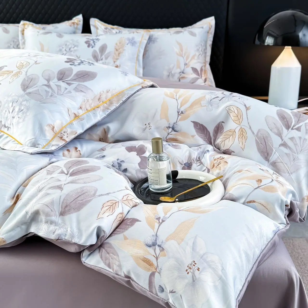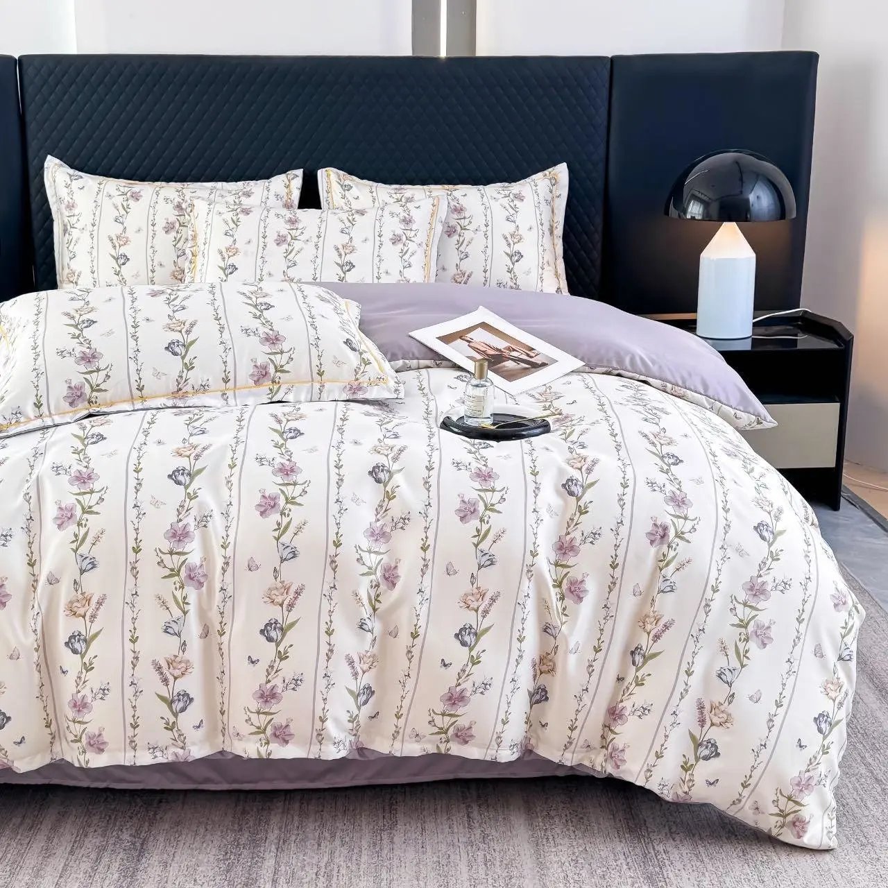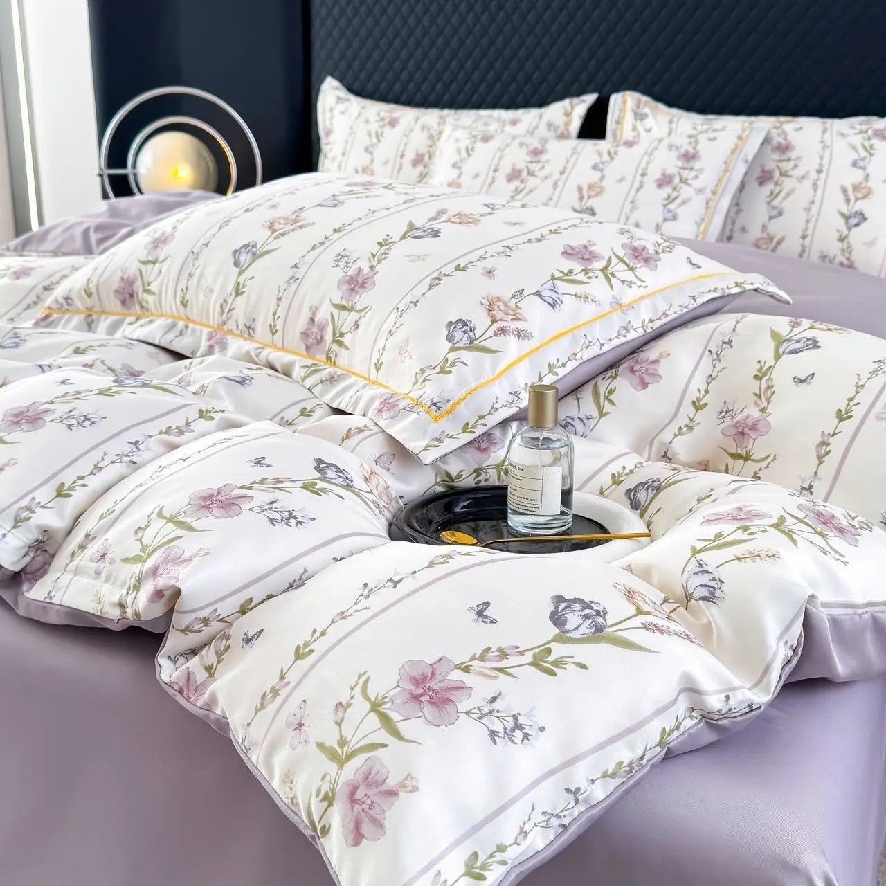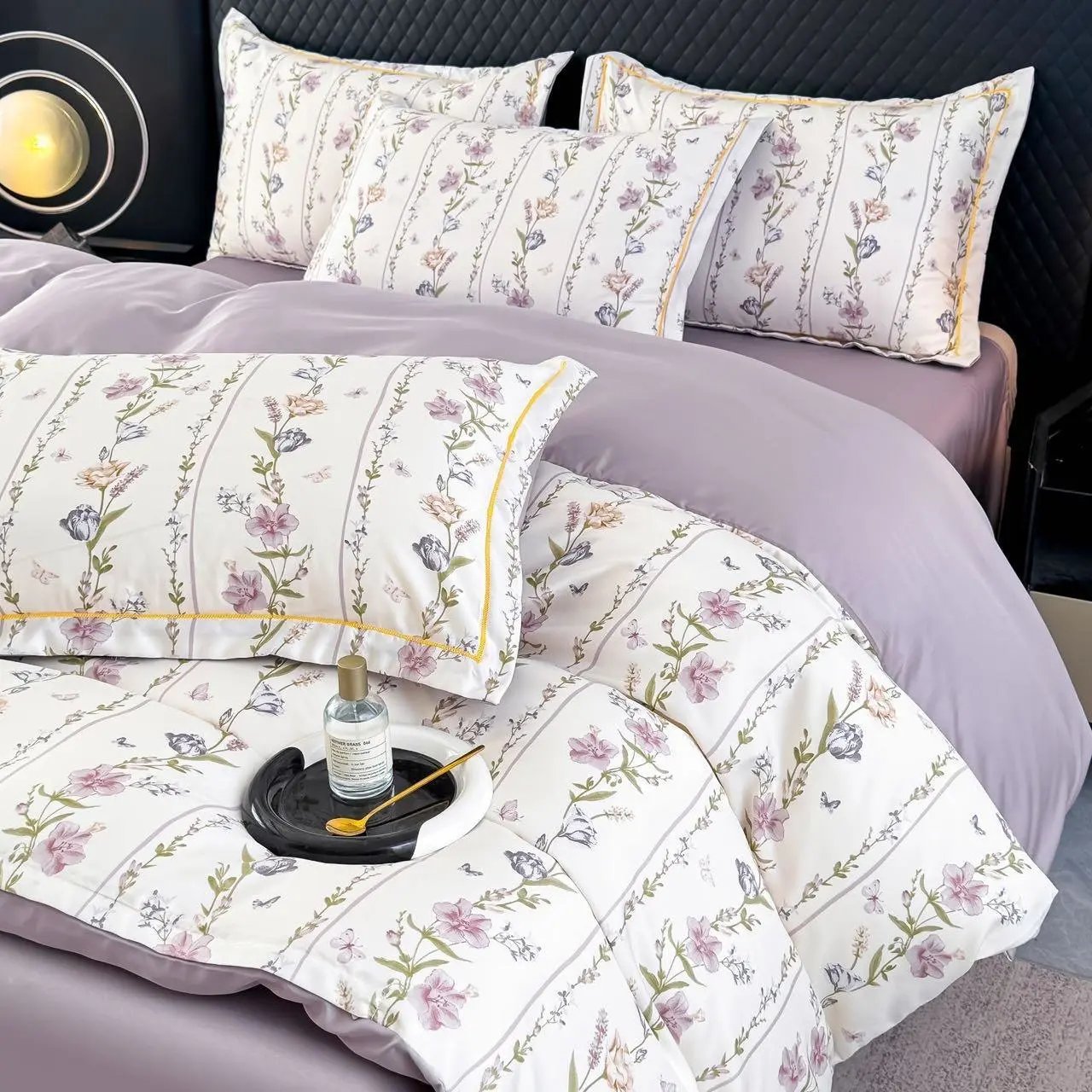 暑假特惠🌈🔥裸睡必备❗️超划算❗️超划算❗️裸感呼吸治愈系床品来袭🌿✨裸睡级丝滑触感天丝四件套大放送💥 ✅精选72%莱塞尔天丝➕28%超细旦纤维,面料高支高密、吸湿透气,手感宛如第二层肌肤般亲肤顺滑! ✅AB面双色美学➕春日花园色系高级感满满让人爱不释手 ✅隐形拉链+绑带细节满满~是一场超治愈的裸睡床品套件没错啦!