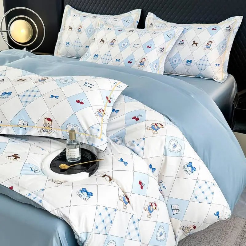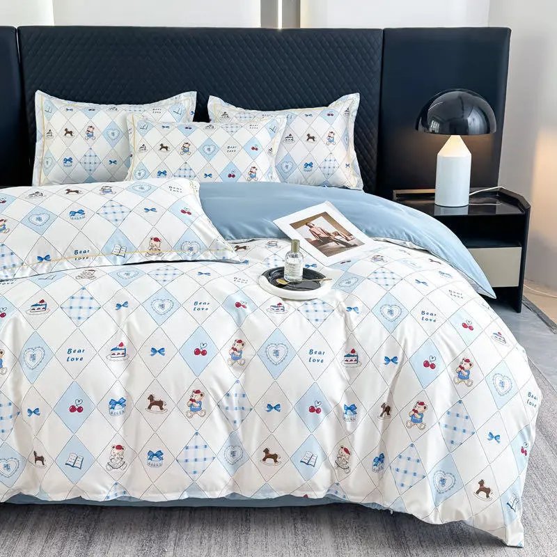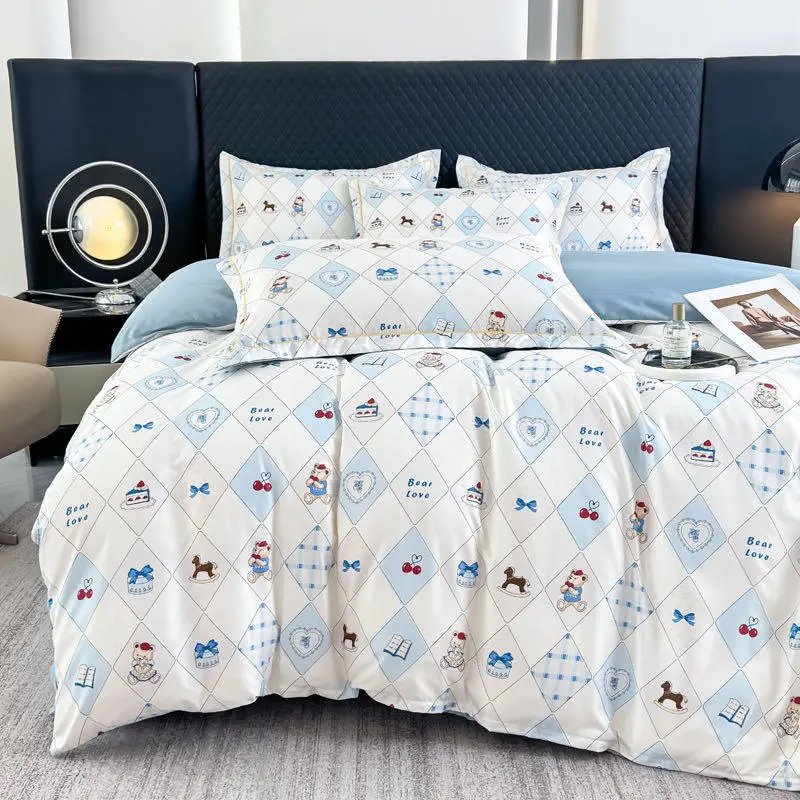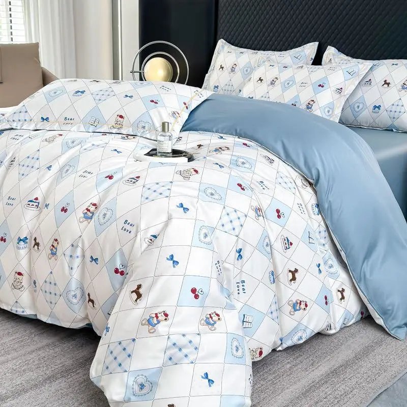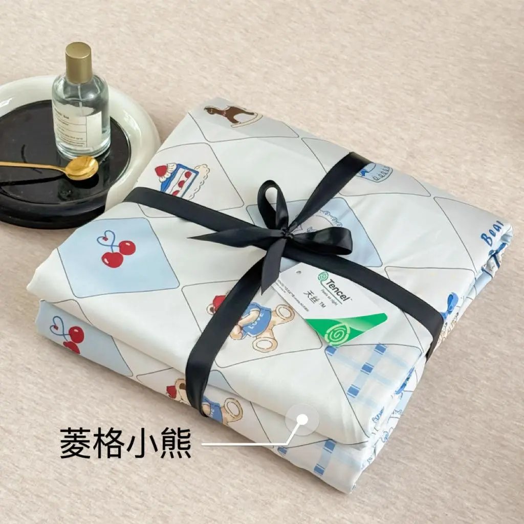 图案设计还特别清新,看着就让人心生凉意。 裸睡天花板 比真丝亲肤!比纯棉透气! 天丝棉混纺黑科技✨吸湿速度是普通棉的1.5倍,32℃高温天贴上去像敷冰丝面膜🧊 高密织造透着微微光泽感,翻身时布料滑过皮肤简直让人上瘾~ 真心建议家人们都试试,不好用你来打我🤗!