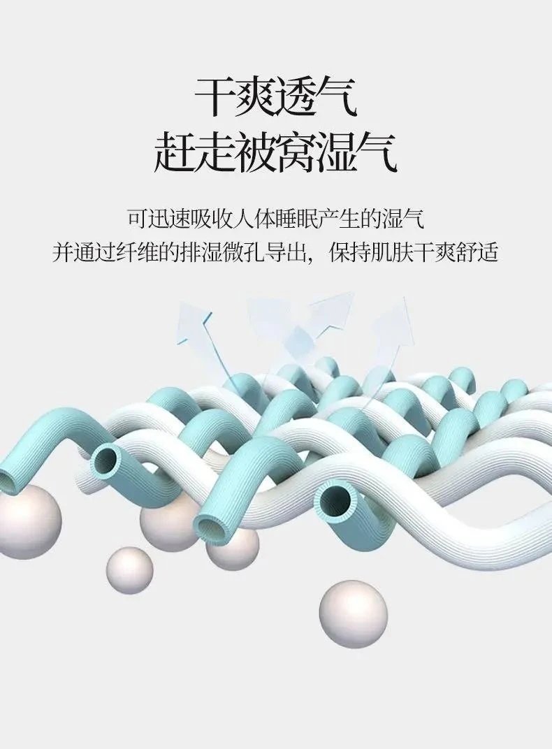 再说说触感体验😃 躺上去就像被风吹散的蒲公英轻抚后背,那种轻柔的感觉太美妙了🤩 还有月光流淌过肌肤的丝滑亲肤感,真的绝了🥳 就算是梅雨季,也能保持干爽的呼吸感,给你裸睡会上瘾的治愈系包裹体验😇