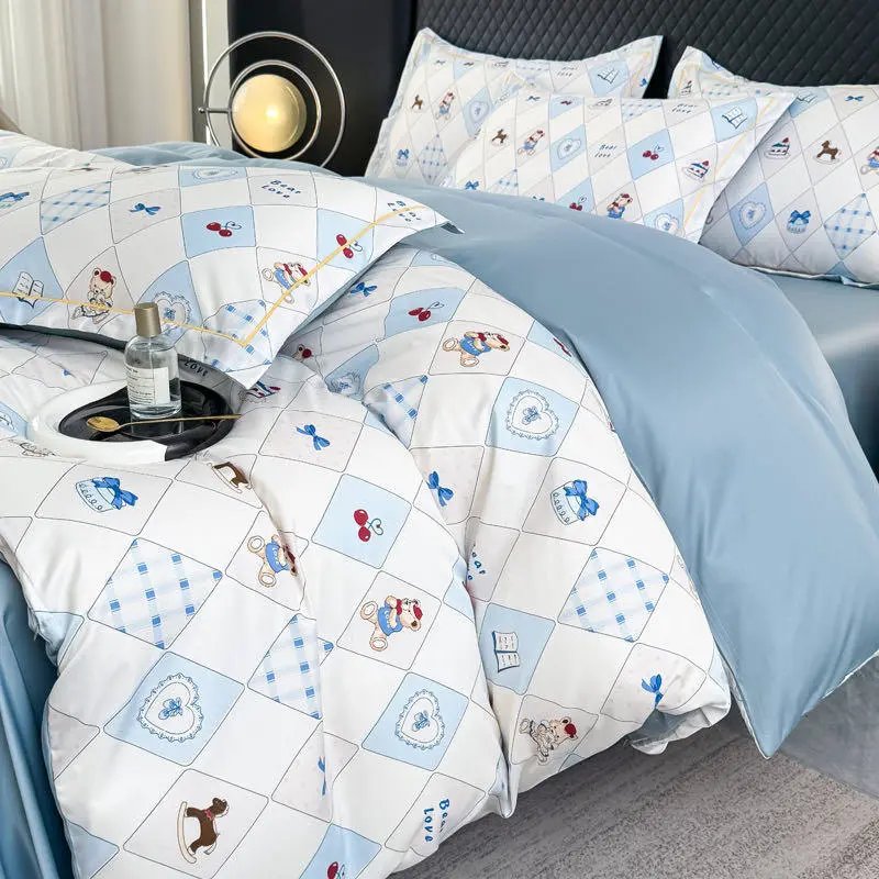 这款裸感呼吸的治愈系 天丝四件套,采用莱塞尔天丝面料,高支高密。质检应能证明其有效吸湿透气、体感柔滑亲肤、凉而不冰,AB 面双色美学等品质,是裸睡星人值得信赖的床品 。