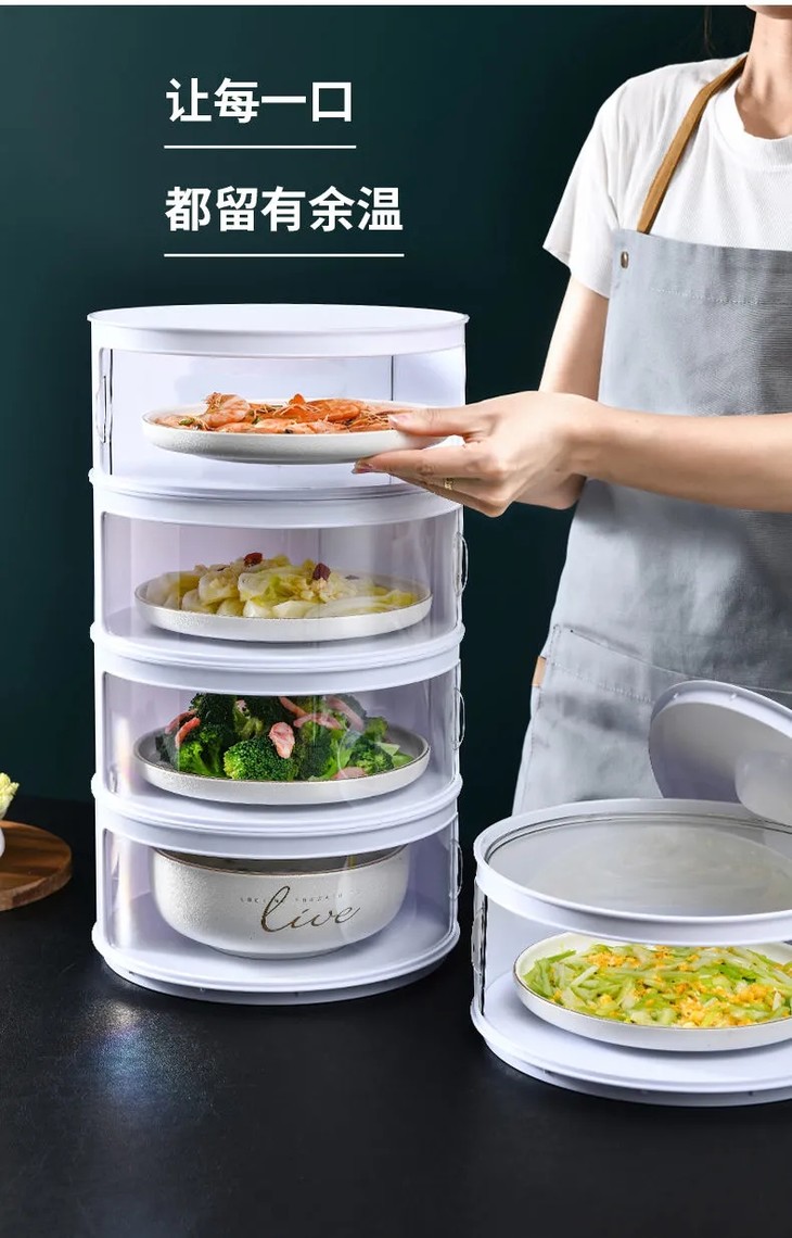 PDD-饭菜罩家用厨房防尘罩防蝇多功能菜罩滑门加热餐桌罩多层保温神器