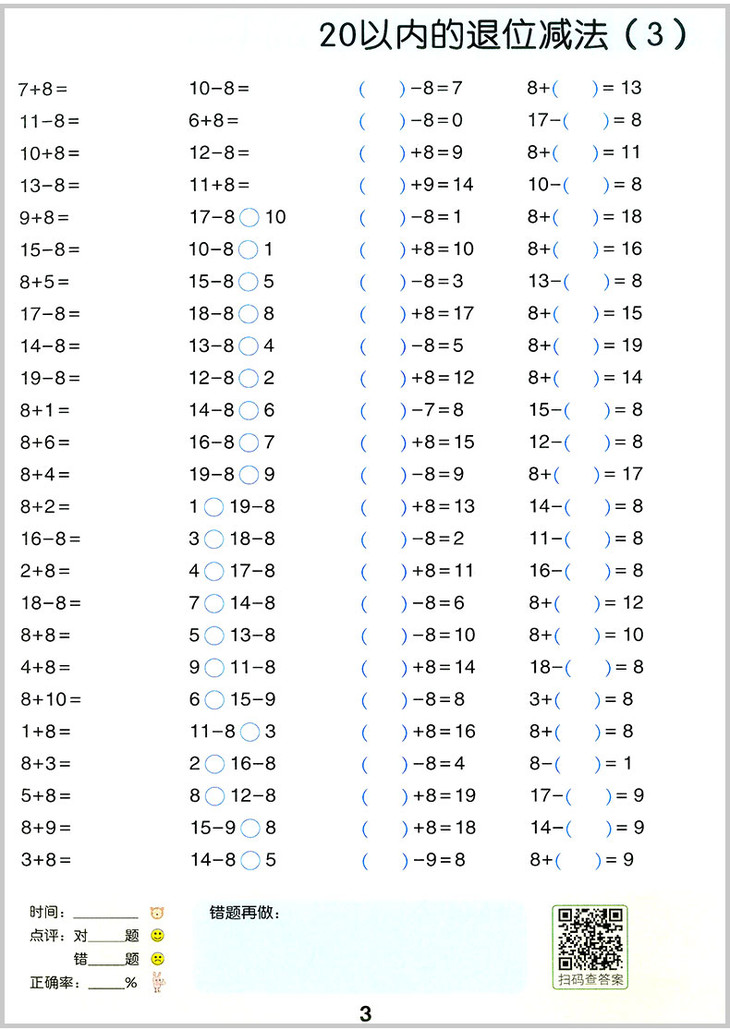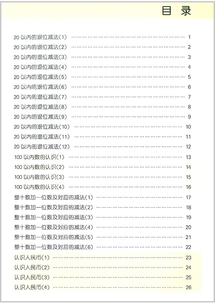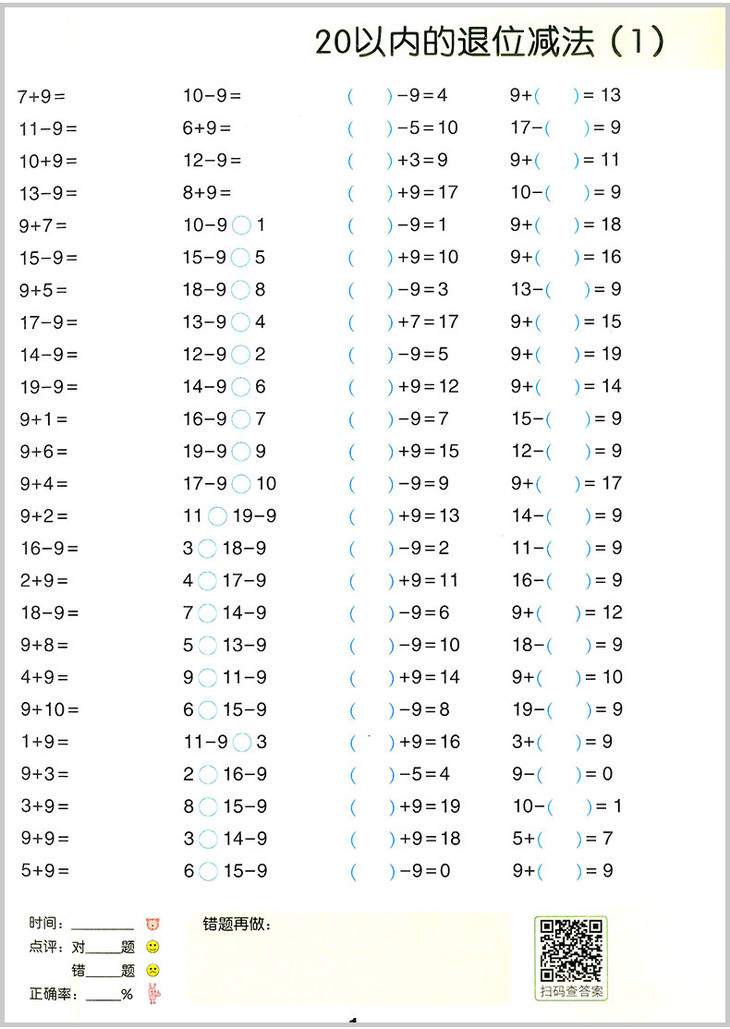 全横式每天100道口算题卡计时测评彩绘版一年级下册 开明出版社