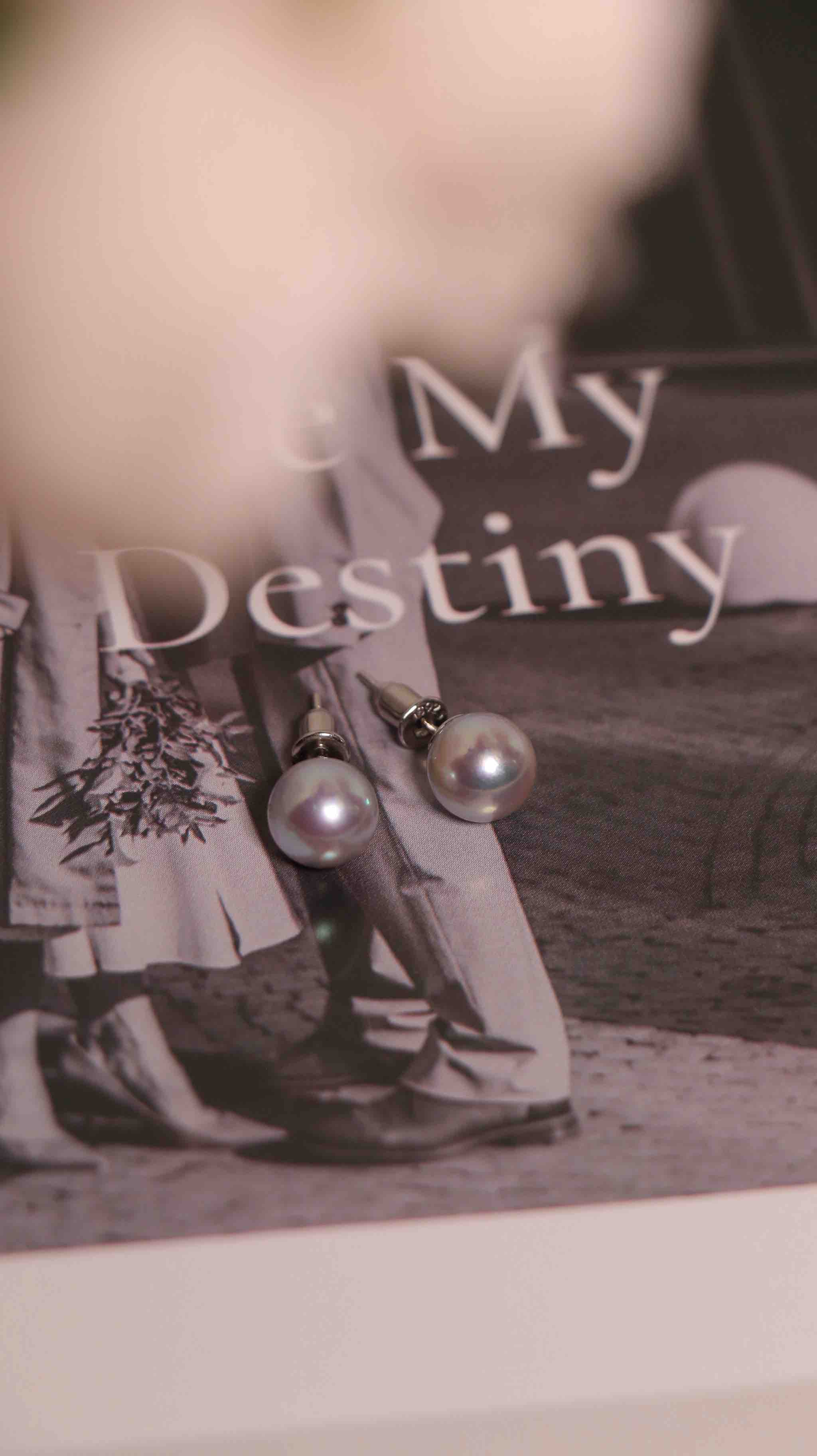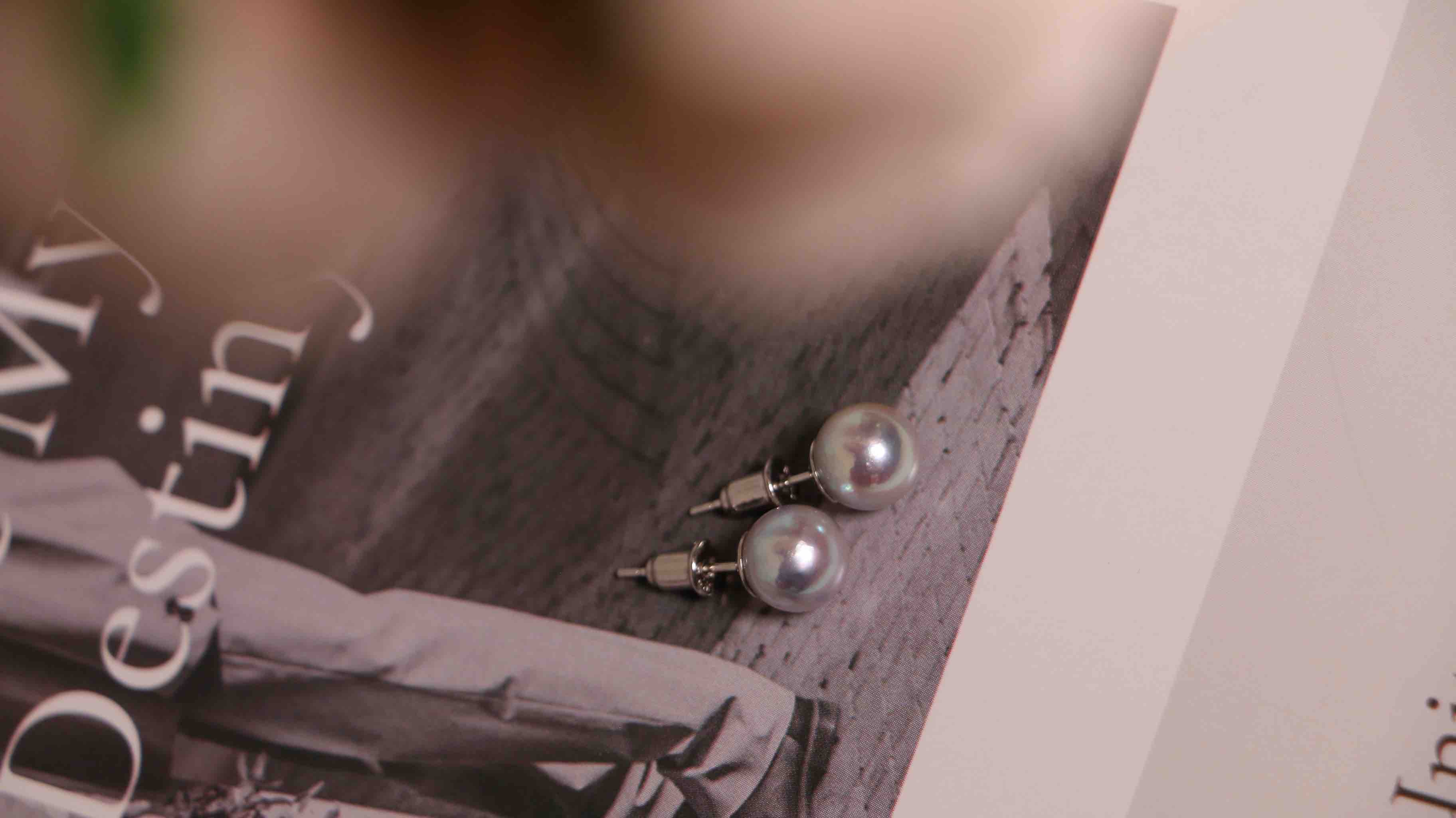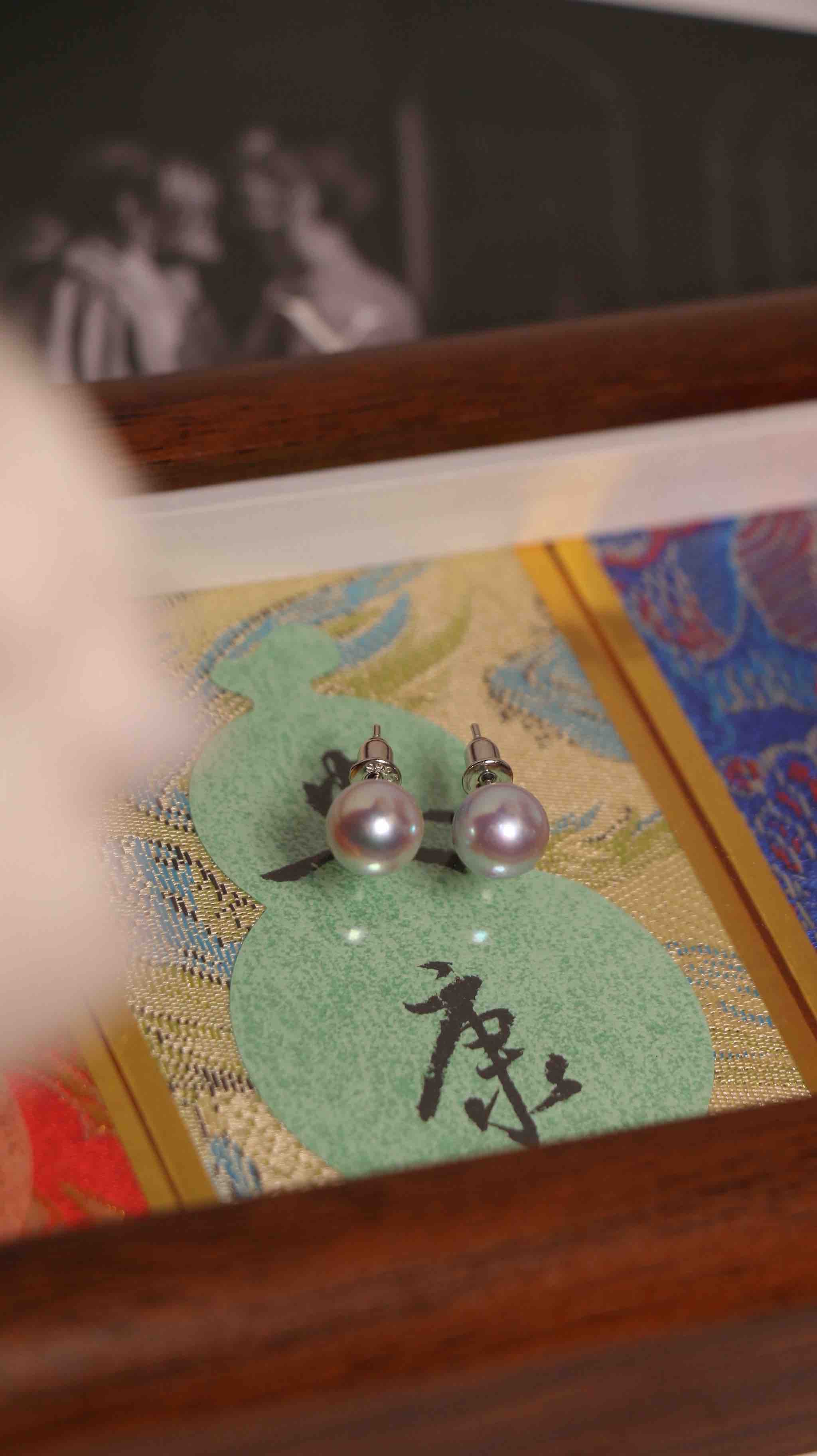 真多麻耳钉 7-8mm 正圆 面无暇侧背面底部细微瑕 ji光 bao亮