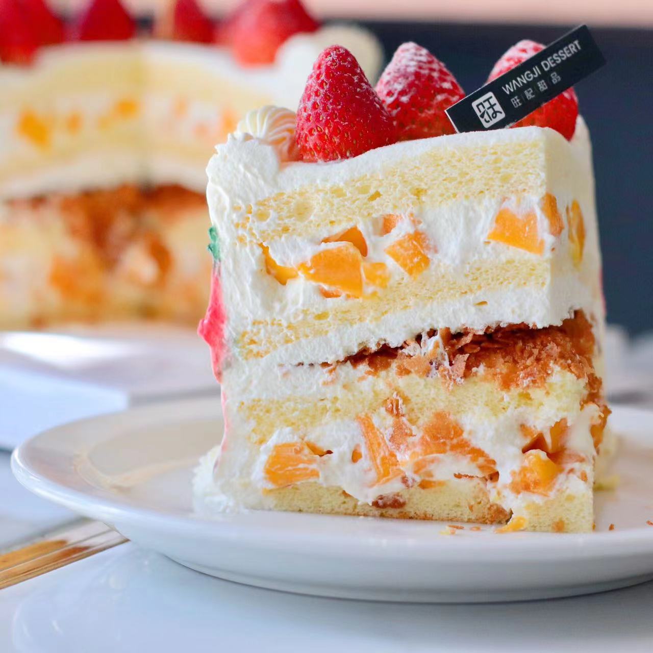 【可爱裙蛋糕】新鲜芒果与百利脆脆片夹心,有进口动物淡奶油和混合乳脂奶油可选