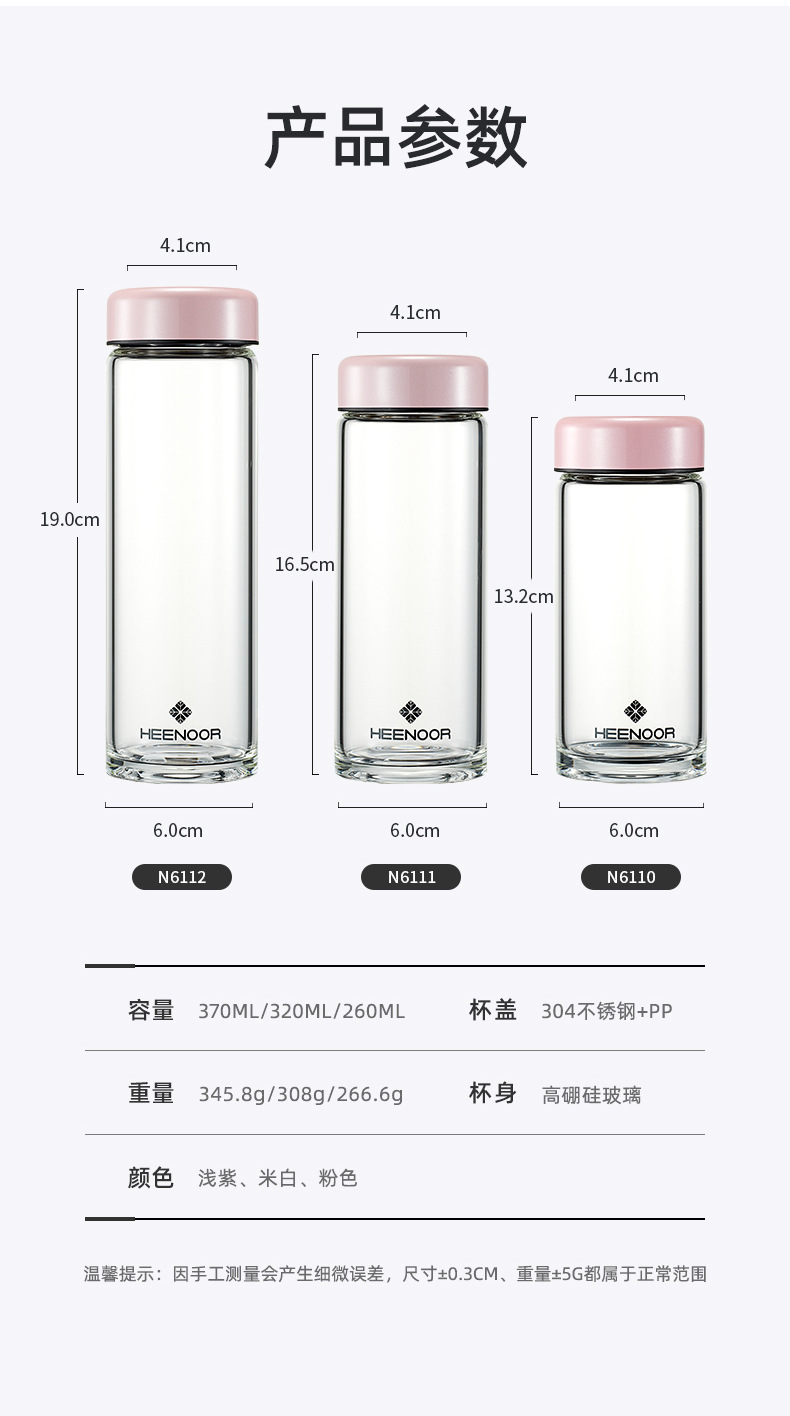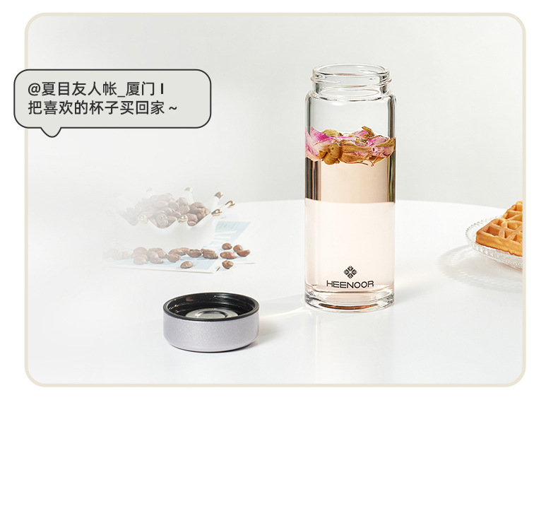 【纤巧易握,轻松携带】希诺玻璃杯女 单层加厚带盖花茶杯 清新高颜值 小巧便携 家用少女水杯-QQ