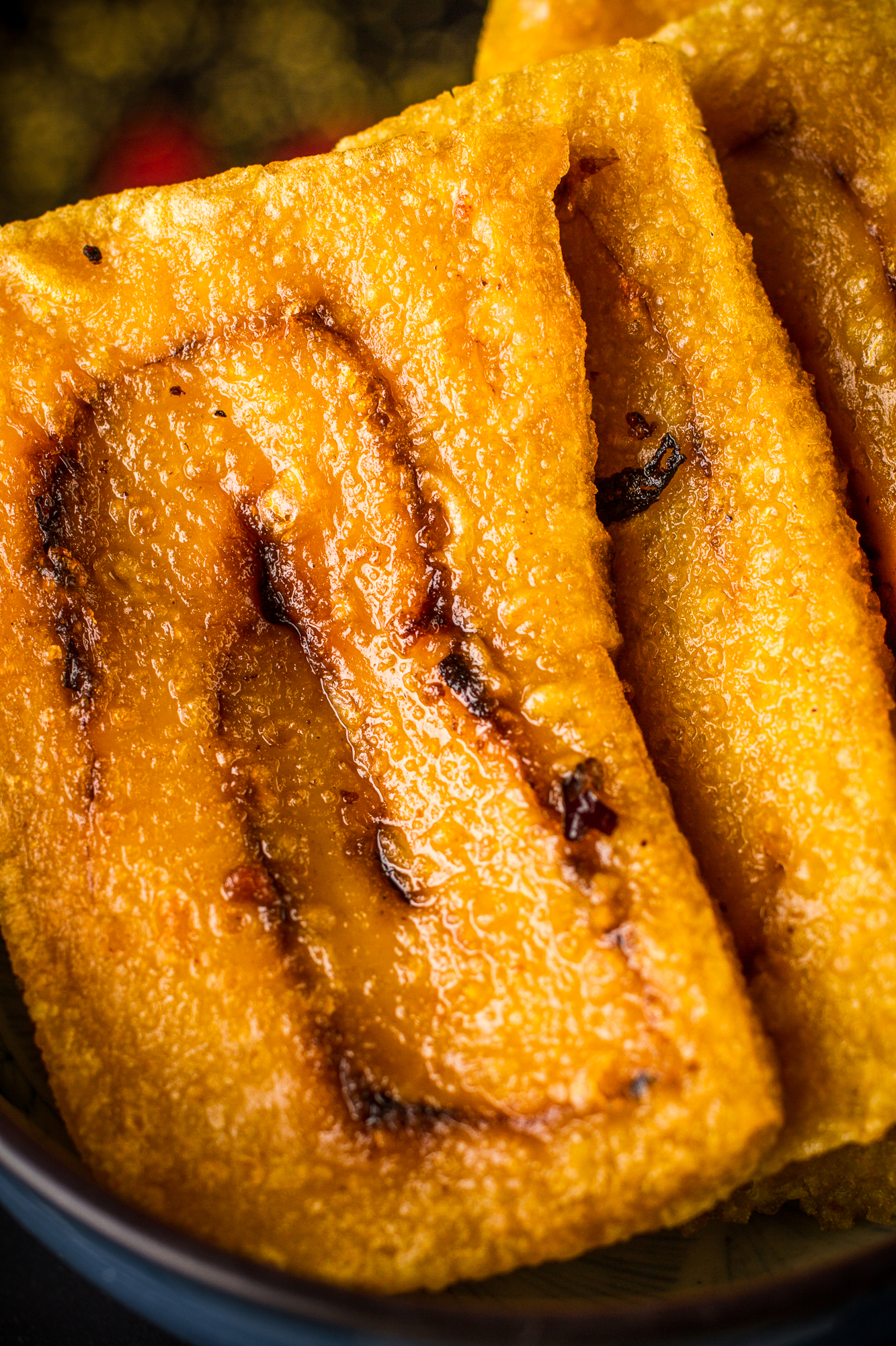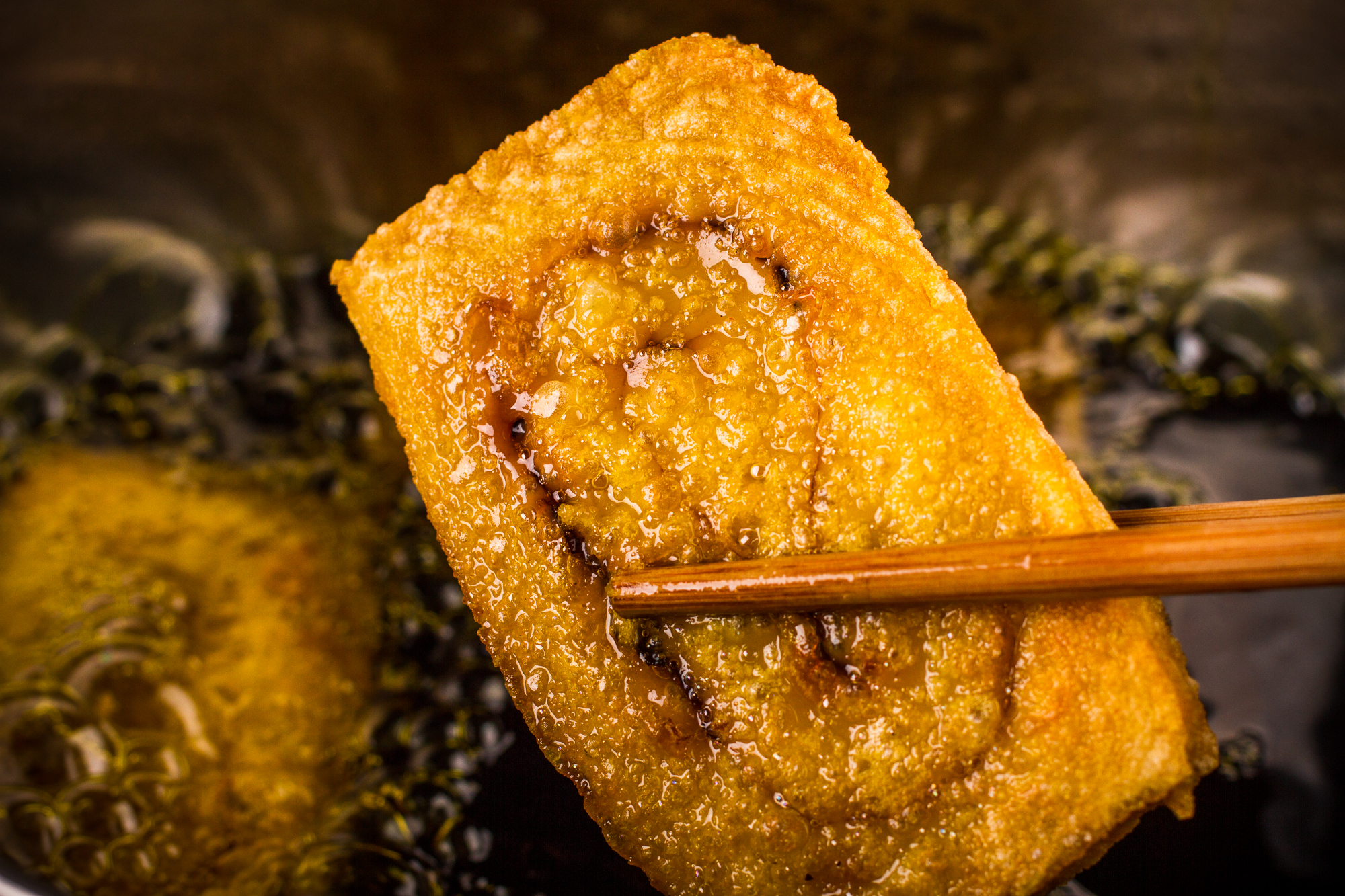 喜欢焦黄口感的用八成热油炸上50秒。煎好后可以撒上白糖、蜂蜜、海苔碎等,每一种都是香甜诱人、回味无穷的滋味儿呢。
