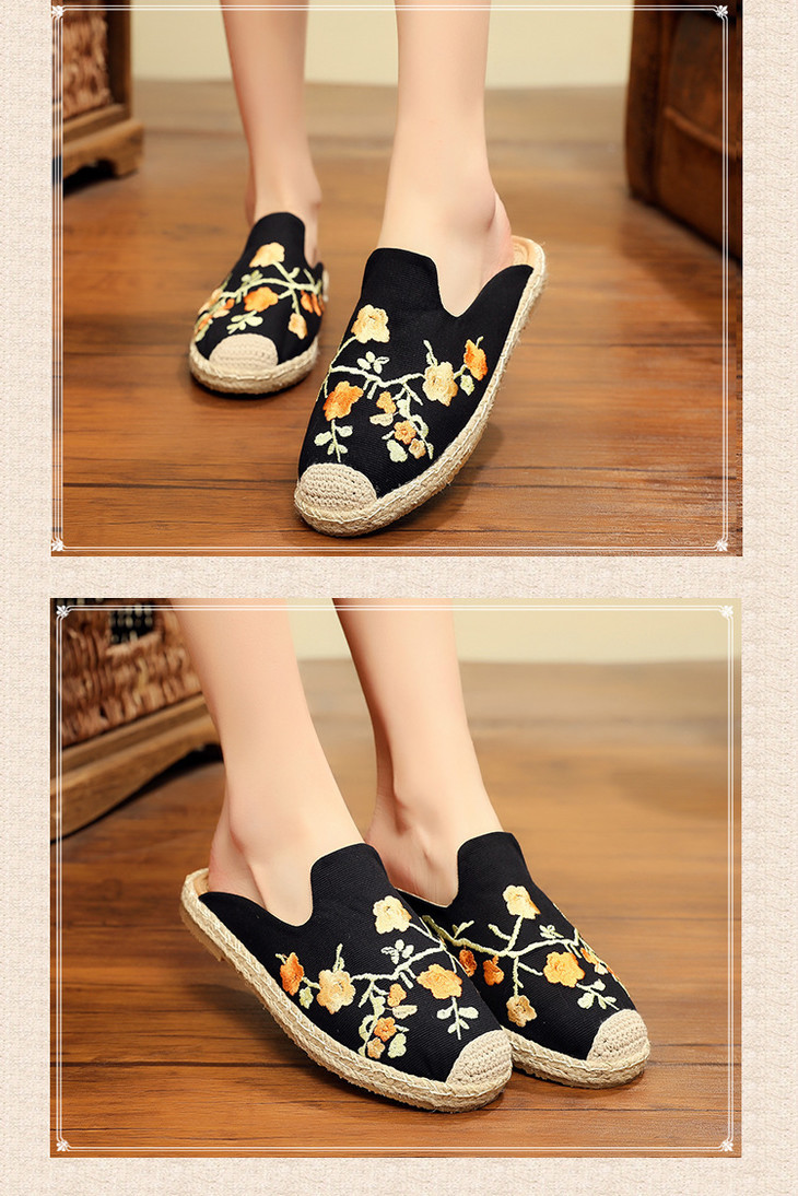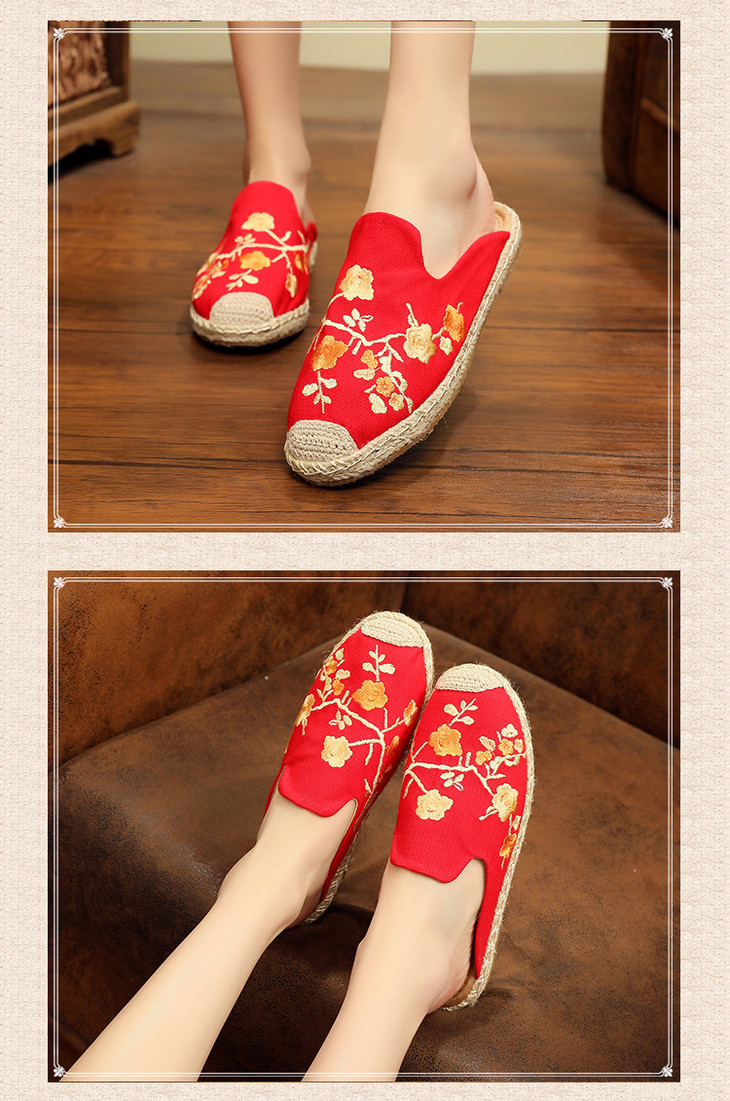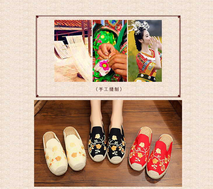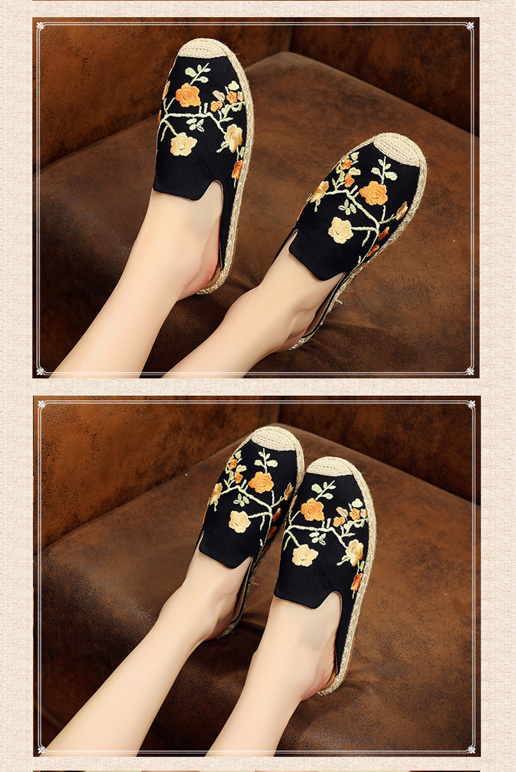 刺绣梅花沙滩鞋,麻绳草编渔夫鞋TC3026