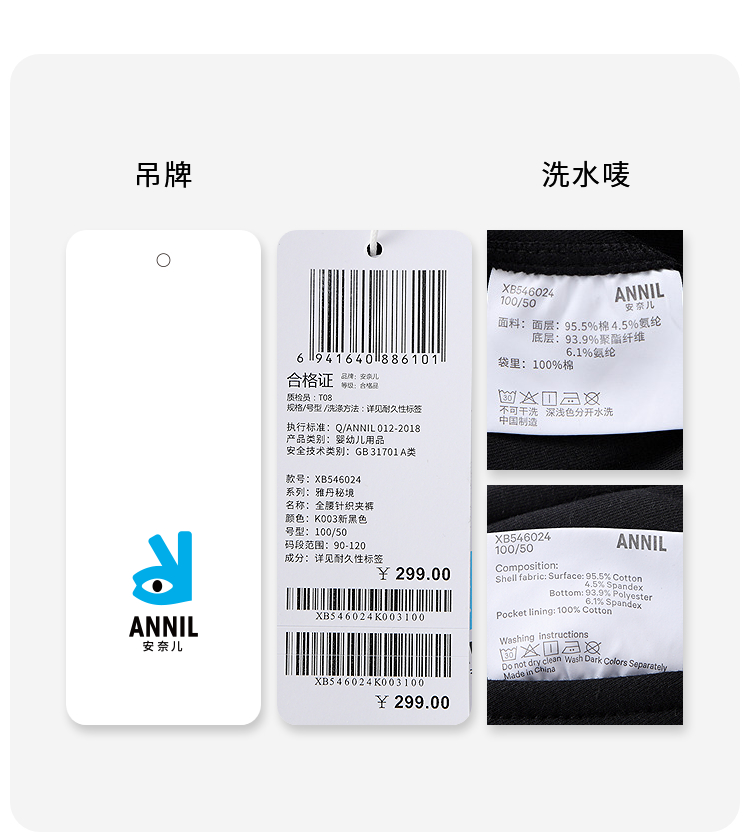 【实体店同款】男童全腰针织夹裤冬季新款安奈儿童装XB546024