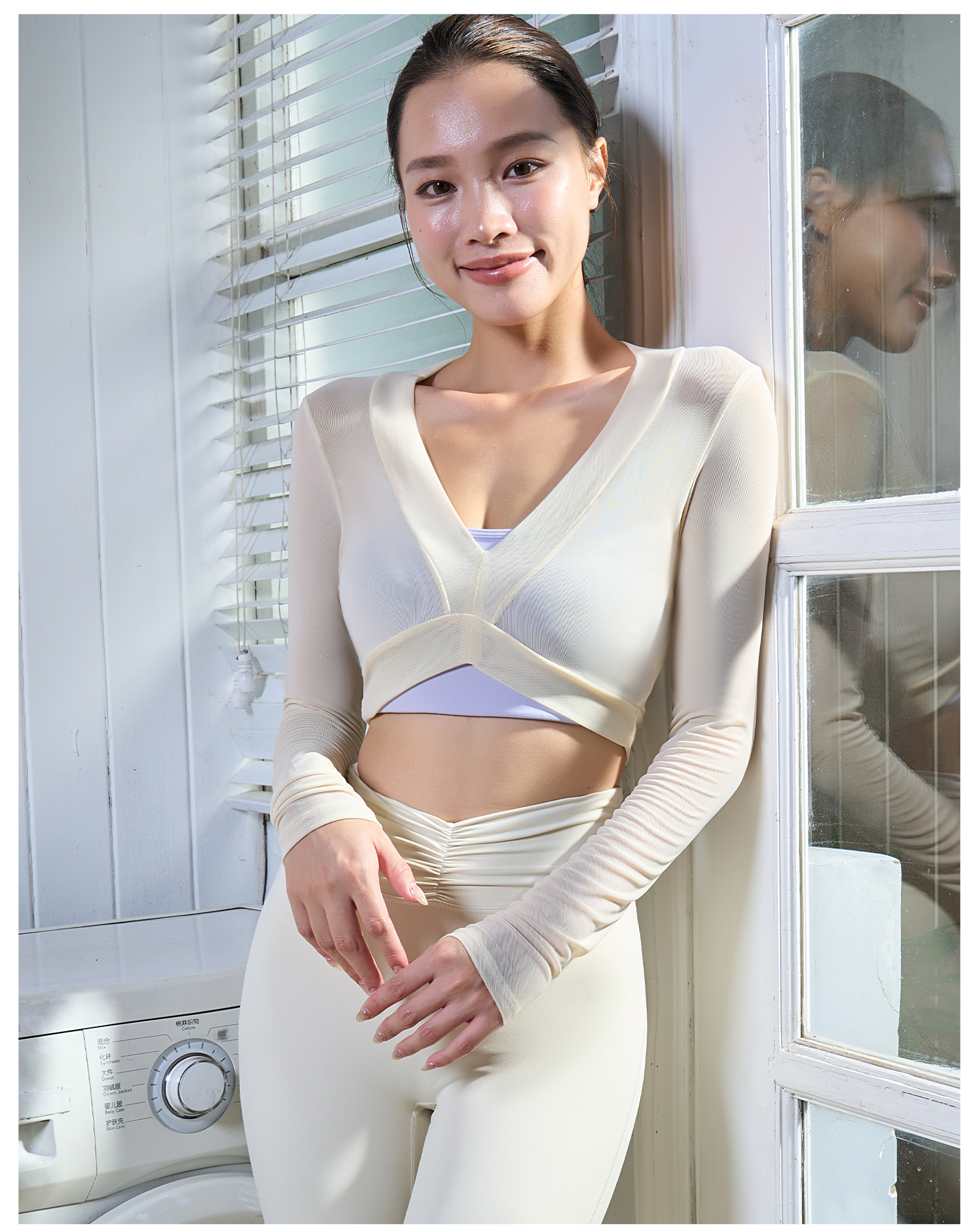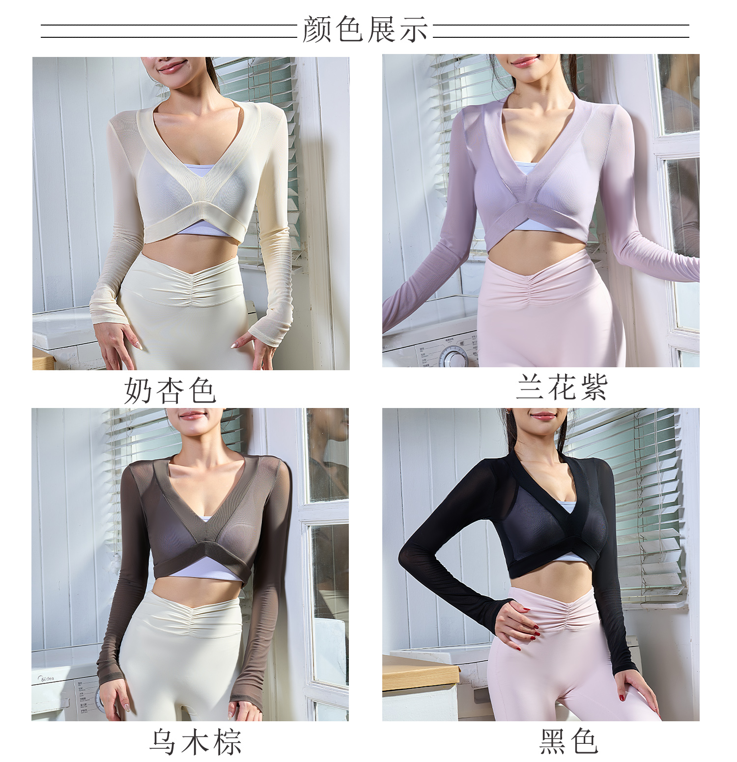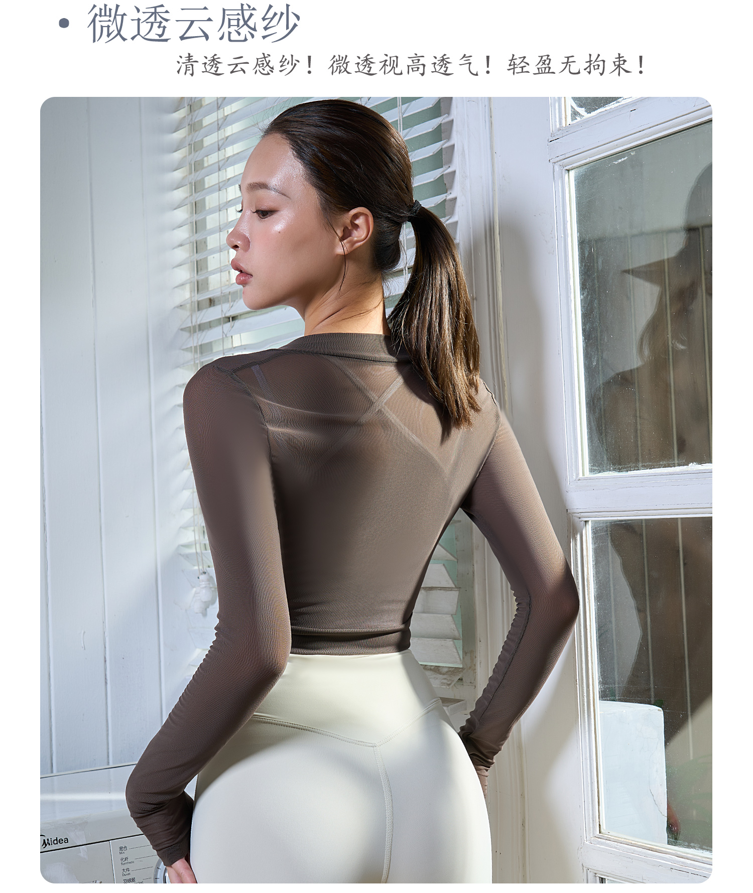 跃牌【禅语梵心】裸感网纱运动速干长袖女修身透气坎肩跑步健身上衣瑜伽服短款罩衫CX3330