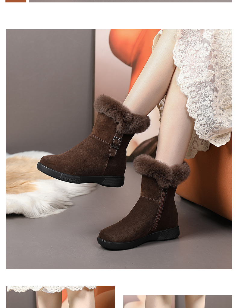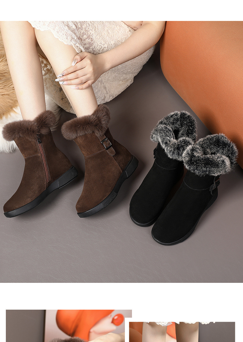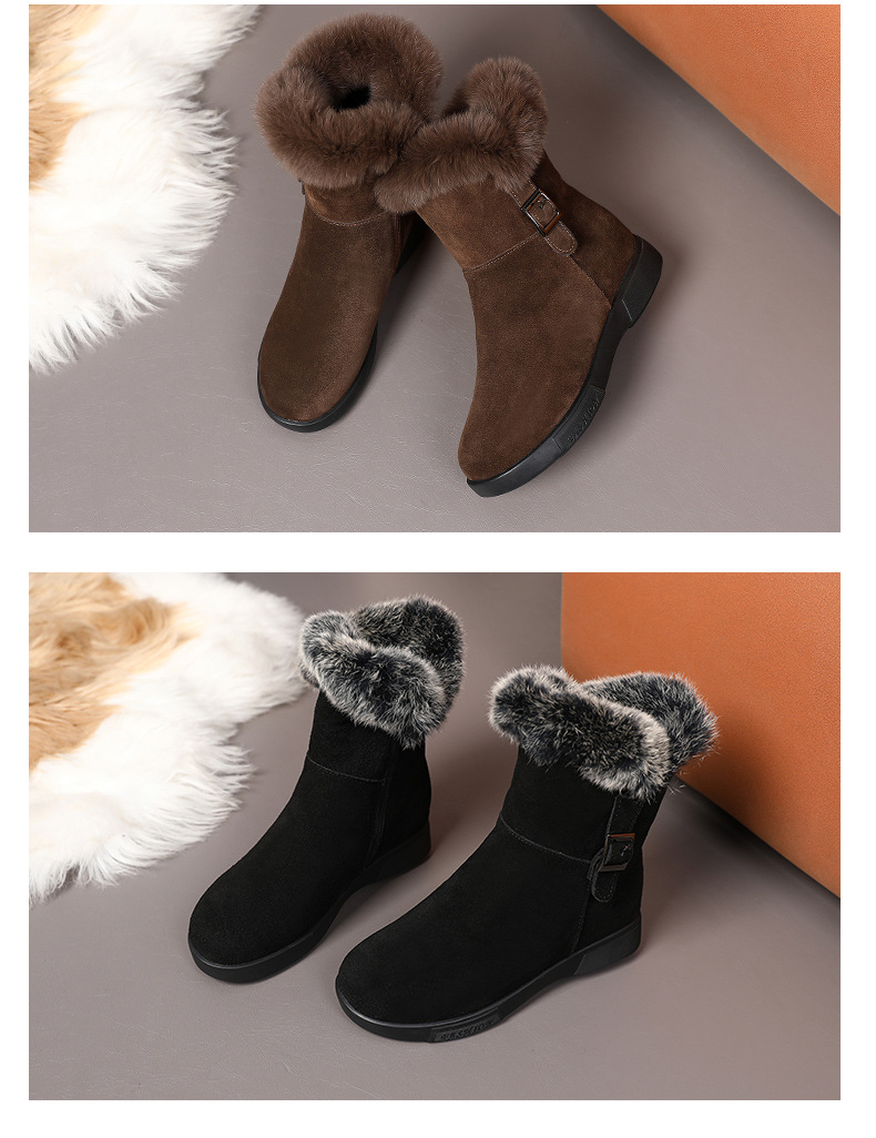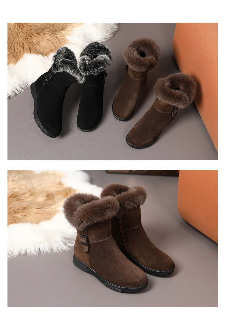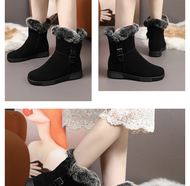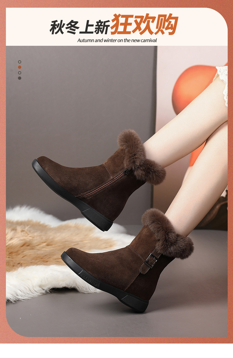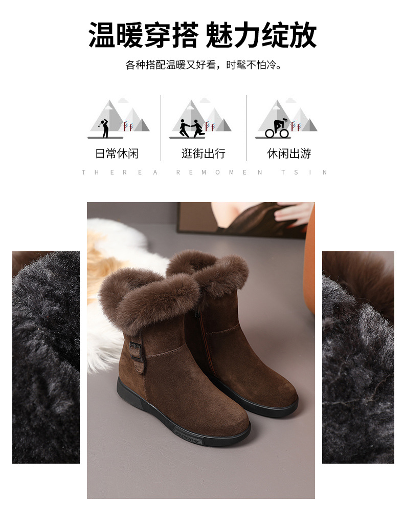 丁摩 秋冬磨砂皮休闲马丁靴女圆头厚底厚毛侧拉链机车女雪地靴5ZF-73550
