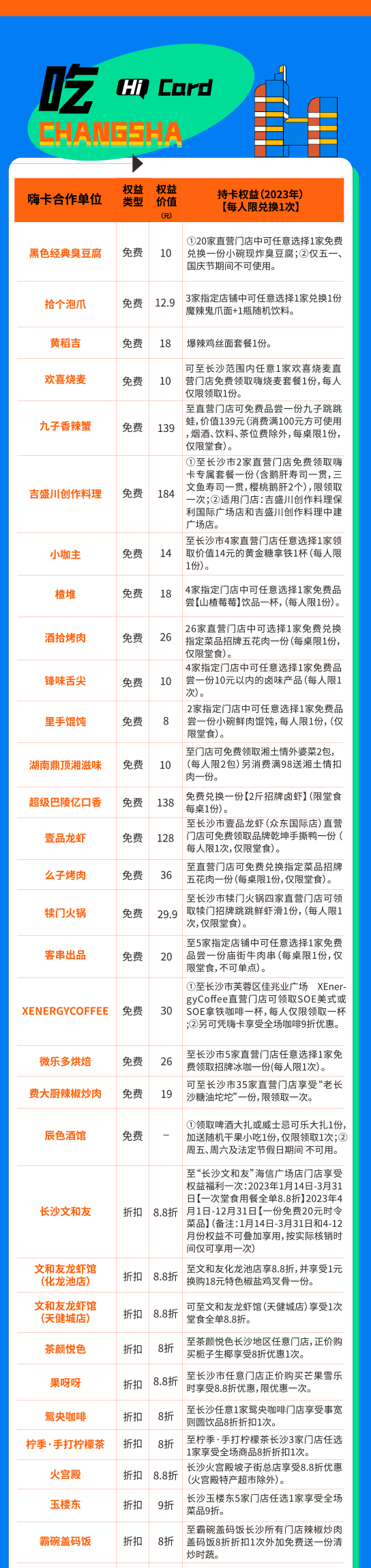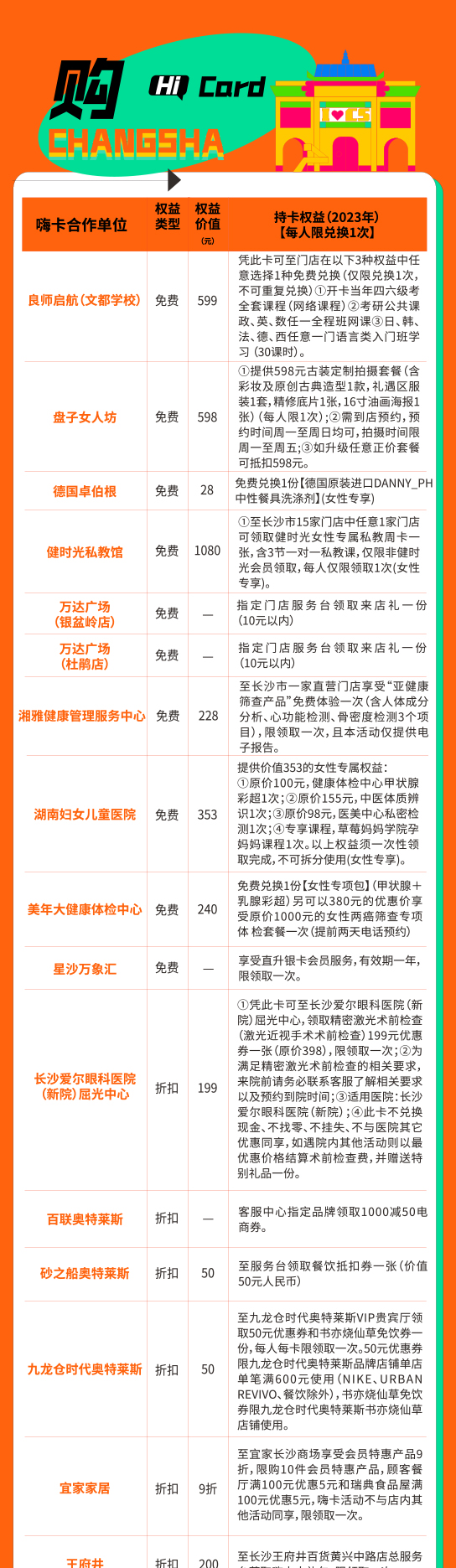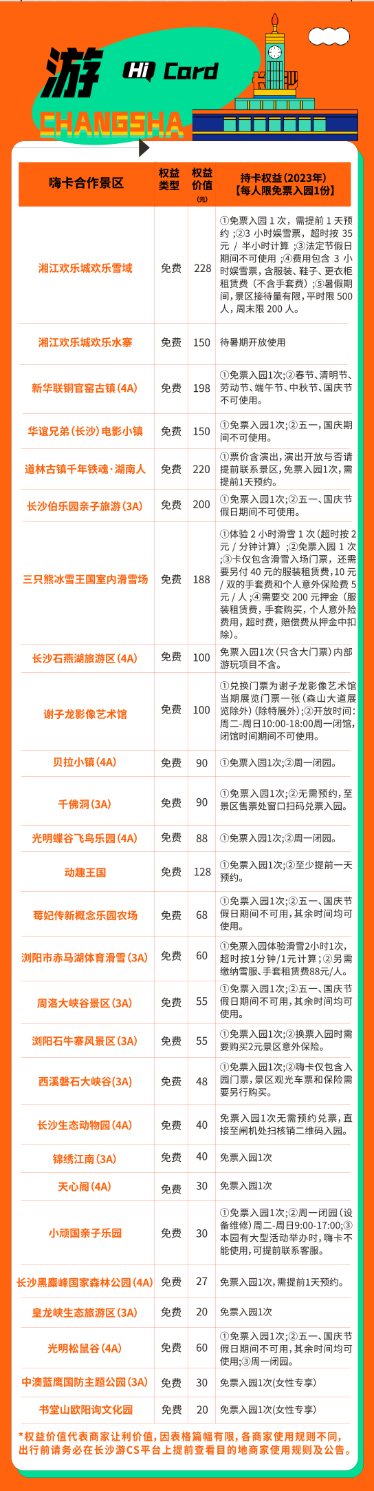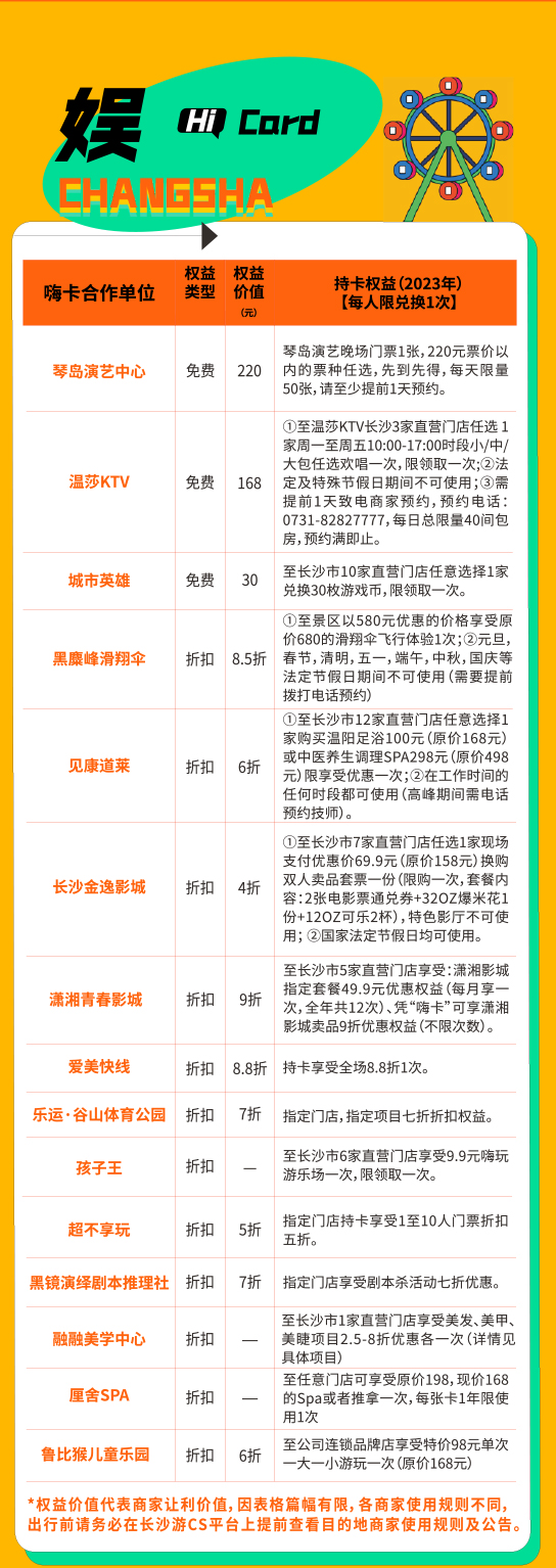 【长沙城市嗨卡2023权益版】长沙文商旅消费福利一卡通 总价值超5000元(一人使用)