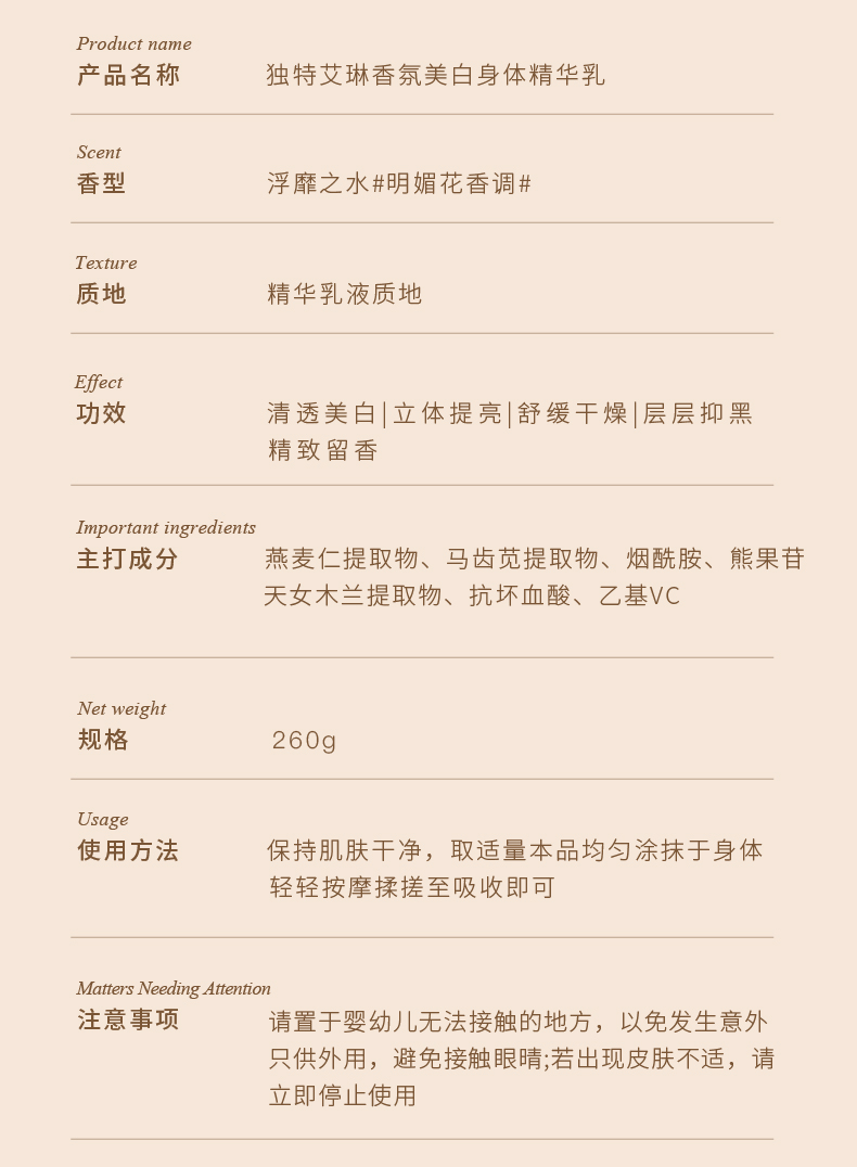 限时秒杀【新品美白身体乳】独特艾琳 王星越同款香氛身体乳 补水保湿防干留香轻薄不黏润肤 赠品香型随机