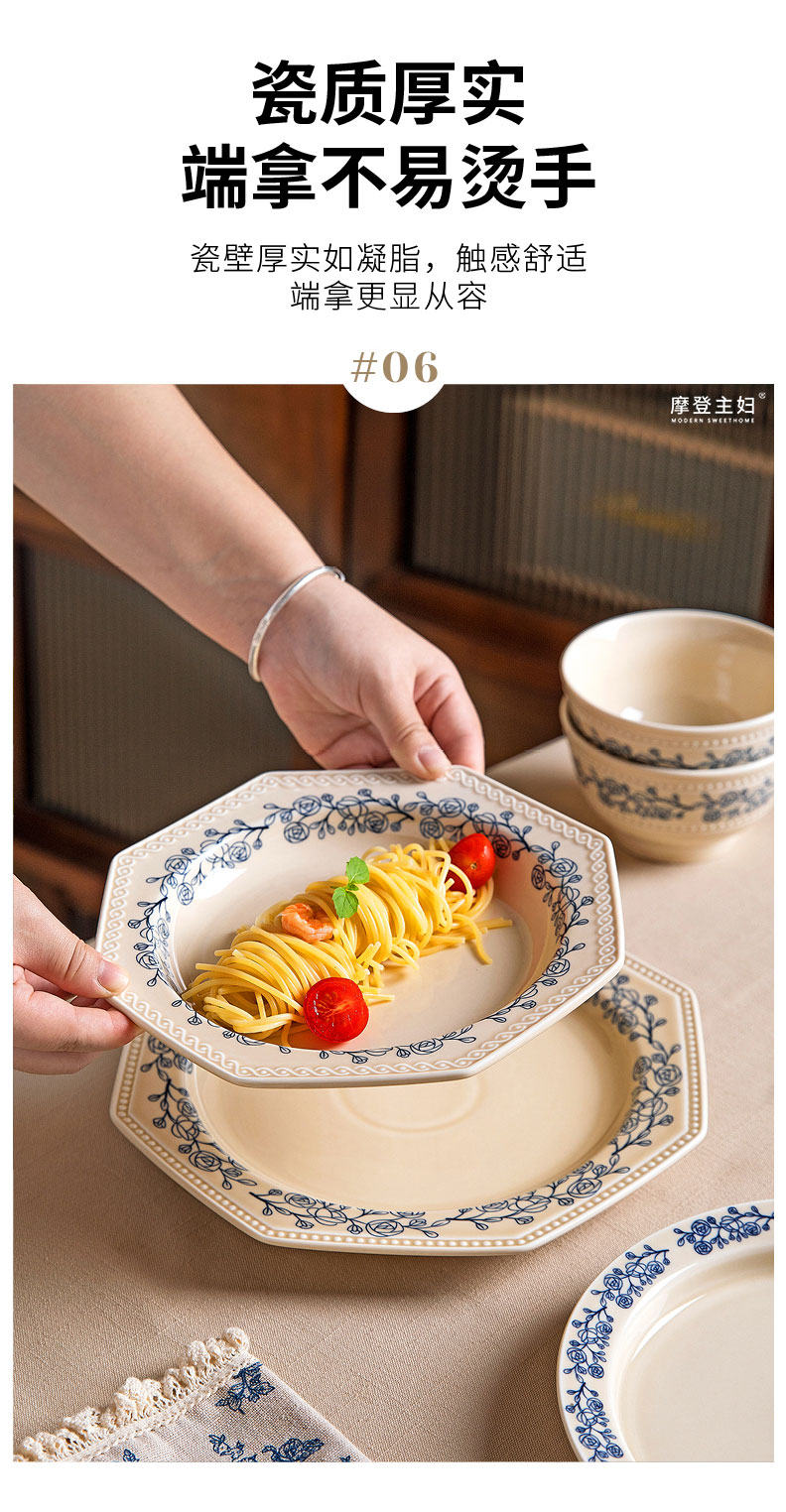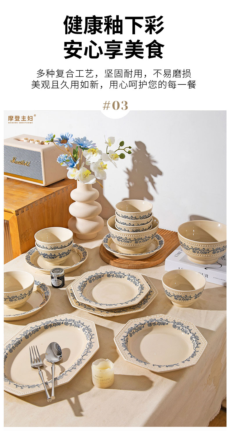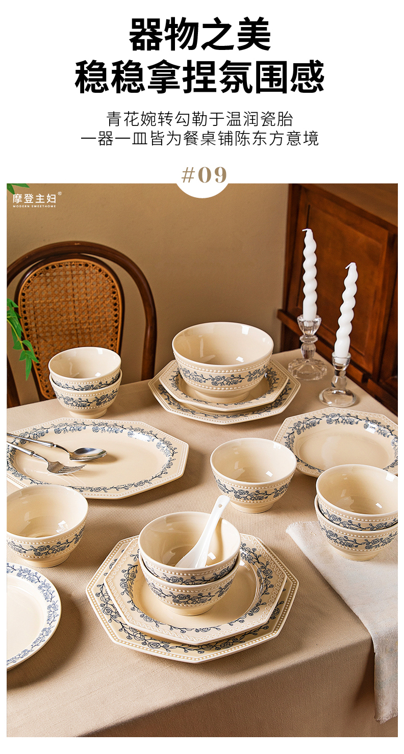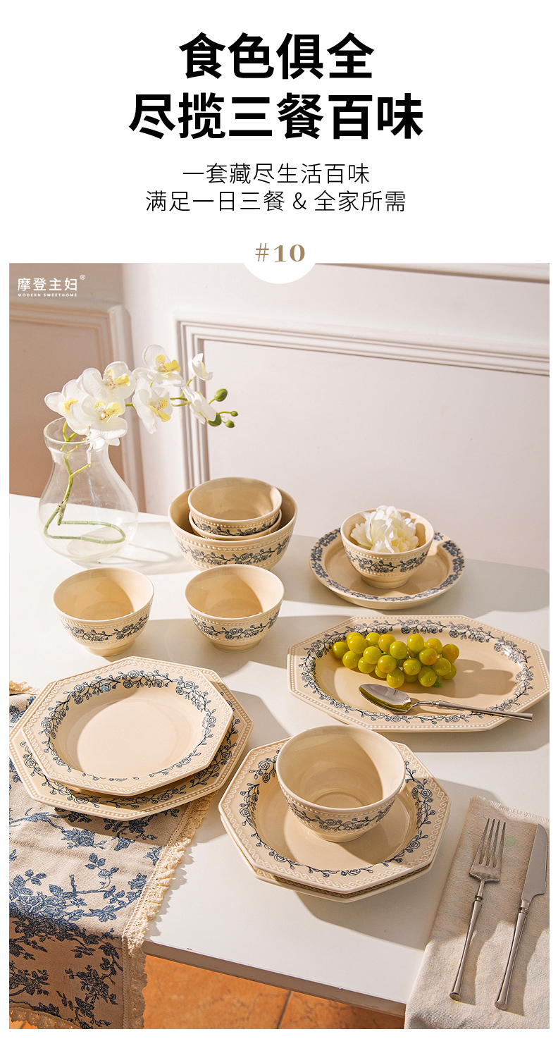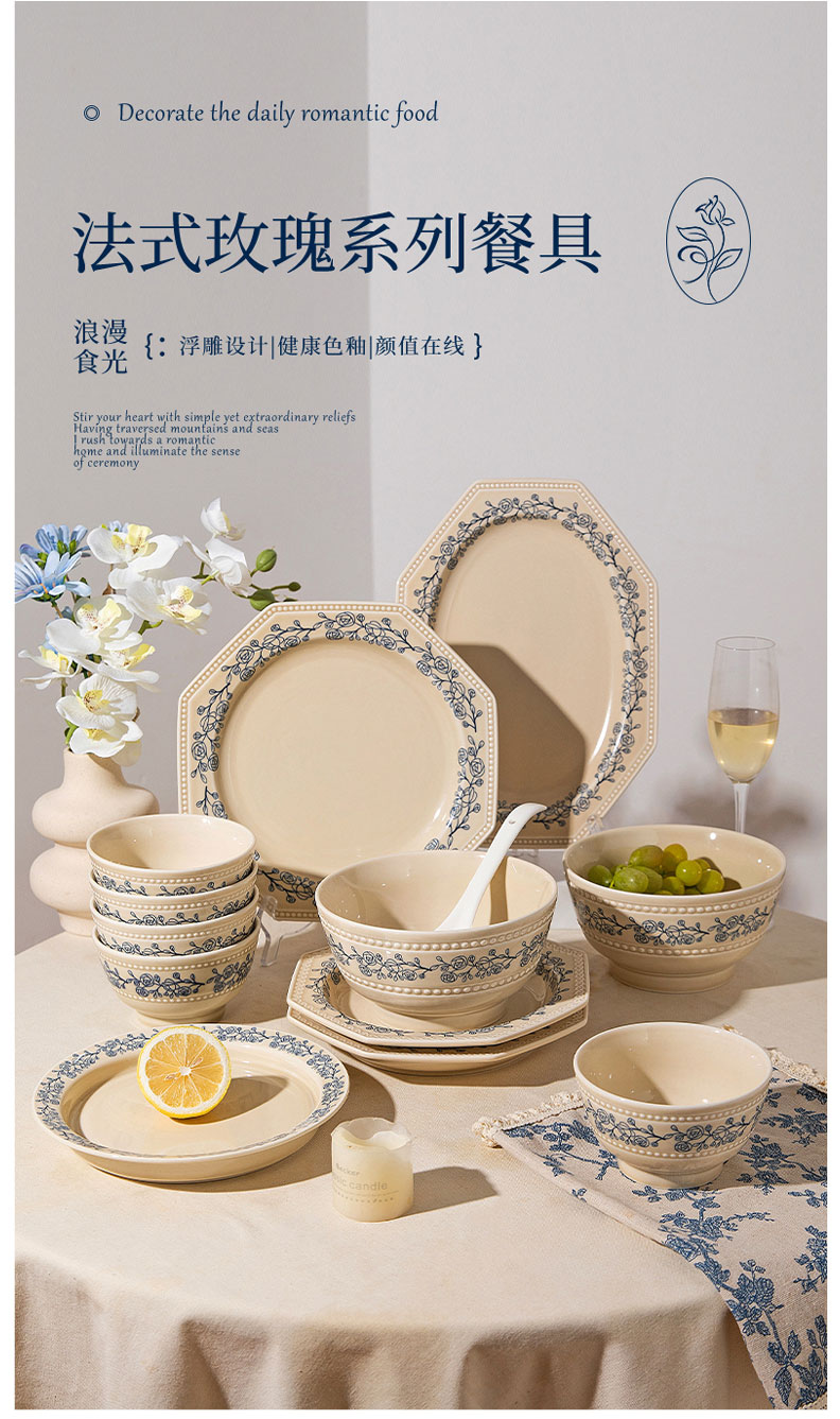 摩登主妇法式玫瑰釉下彩餐具饭碗家用2025新款碗具汤碗餐盘子法式碗盘套装