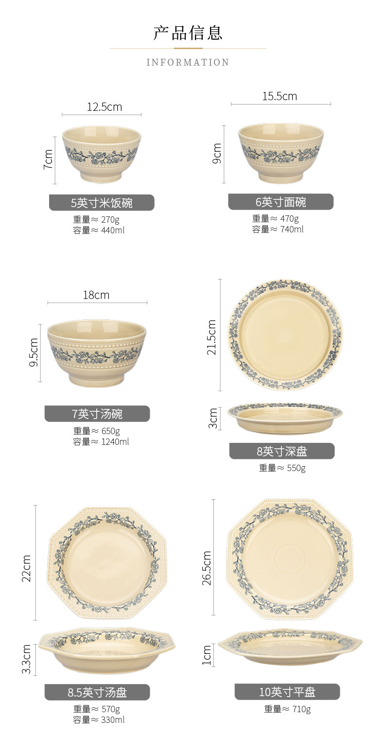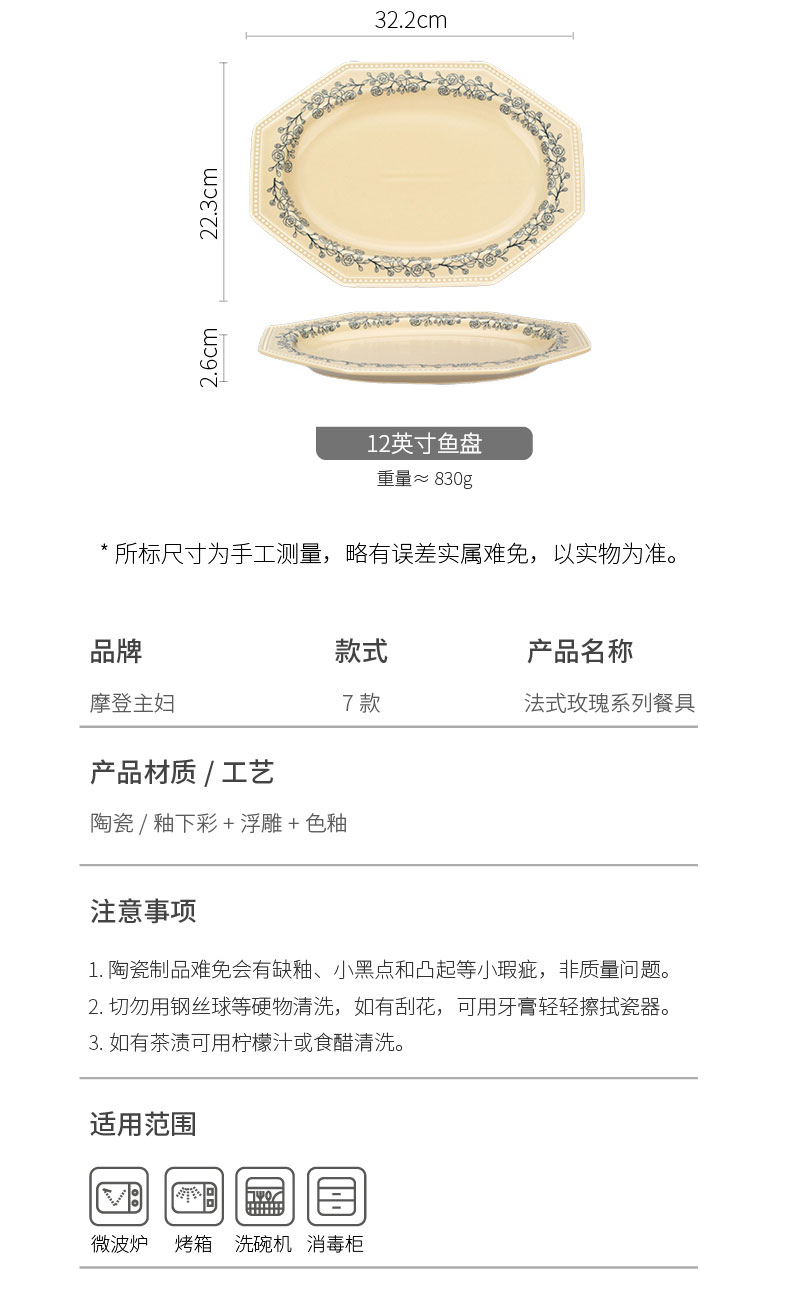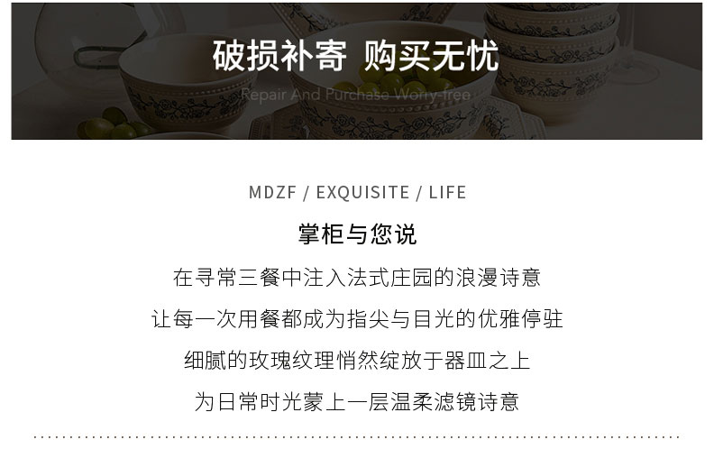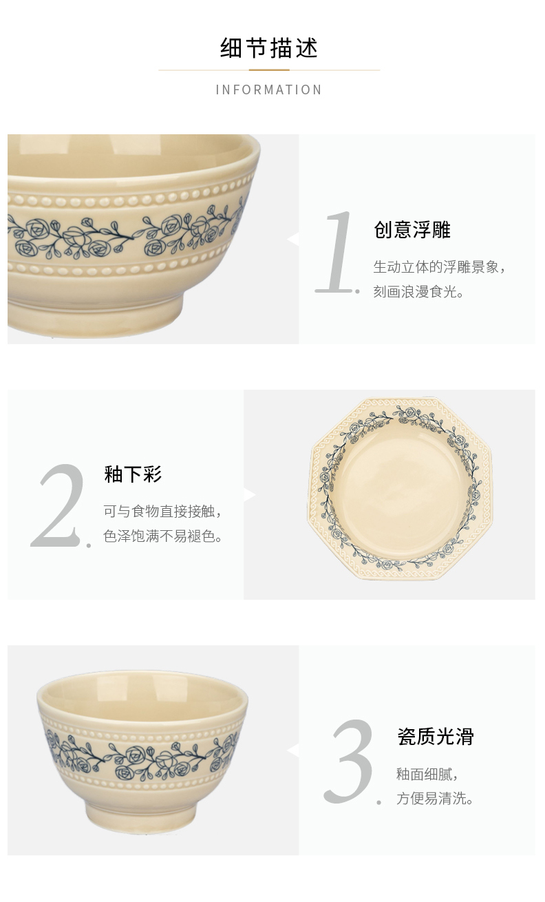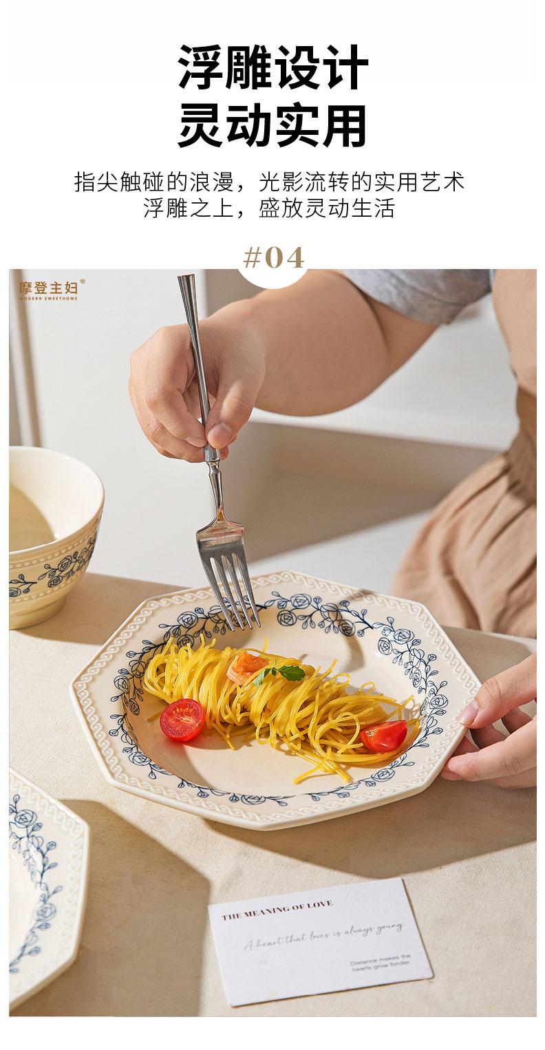摩登主妇法式玫瑰釉下彩餐具饭碗家用2025新款碗具汤碗餐盘子法式碗盘套装