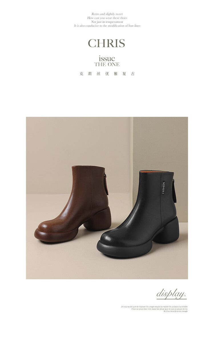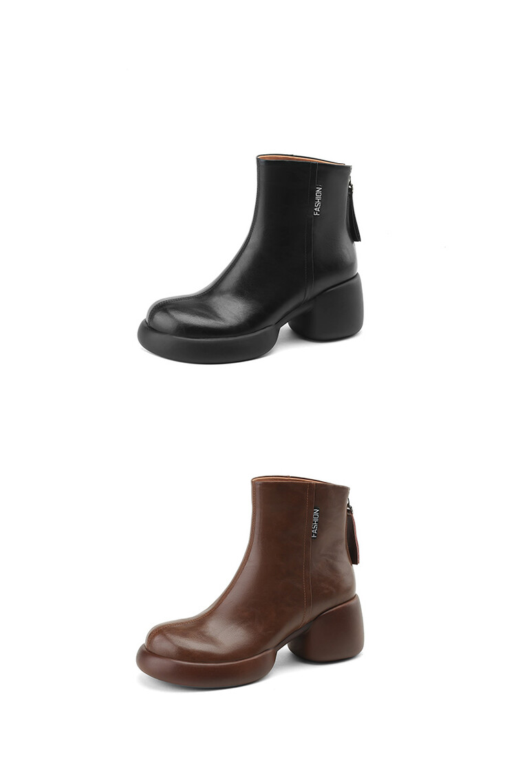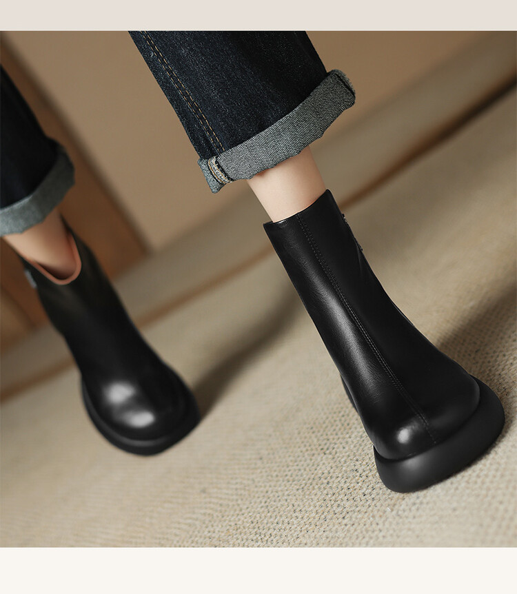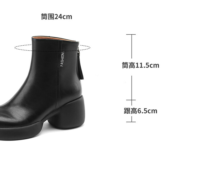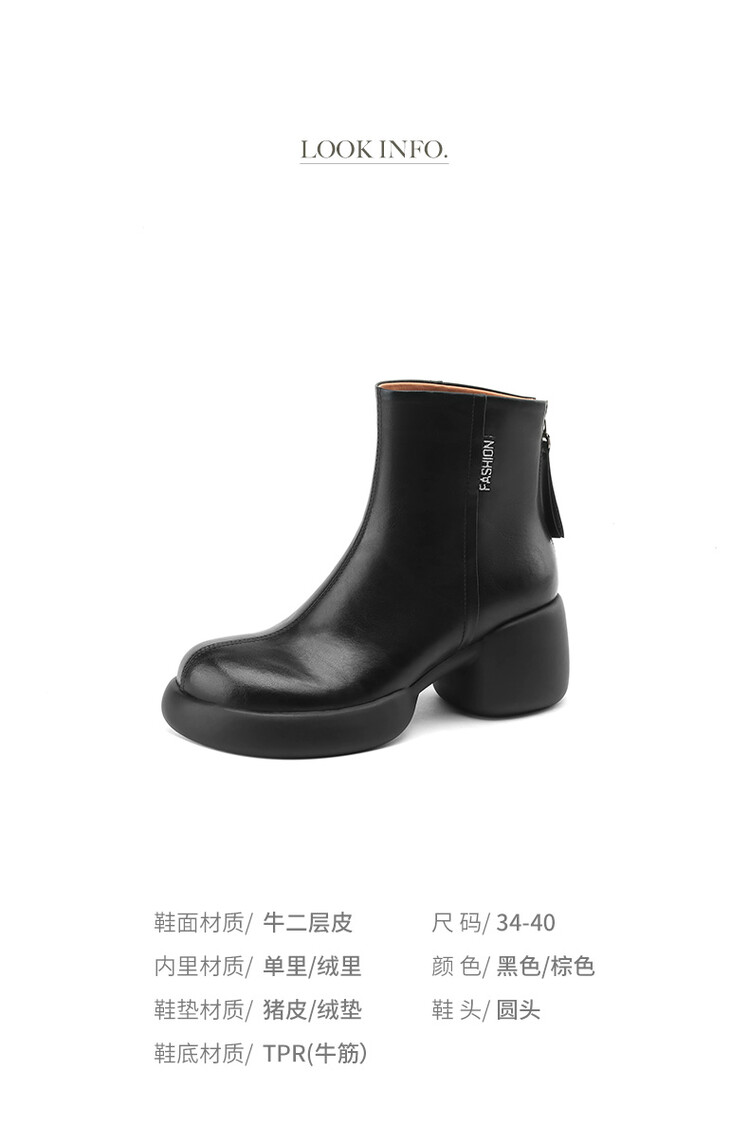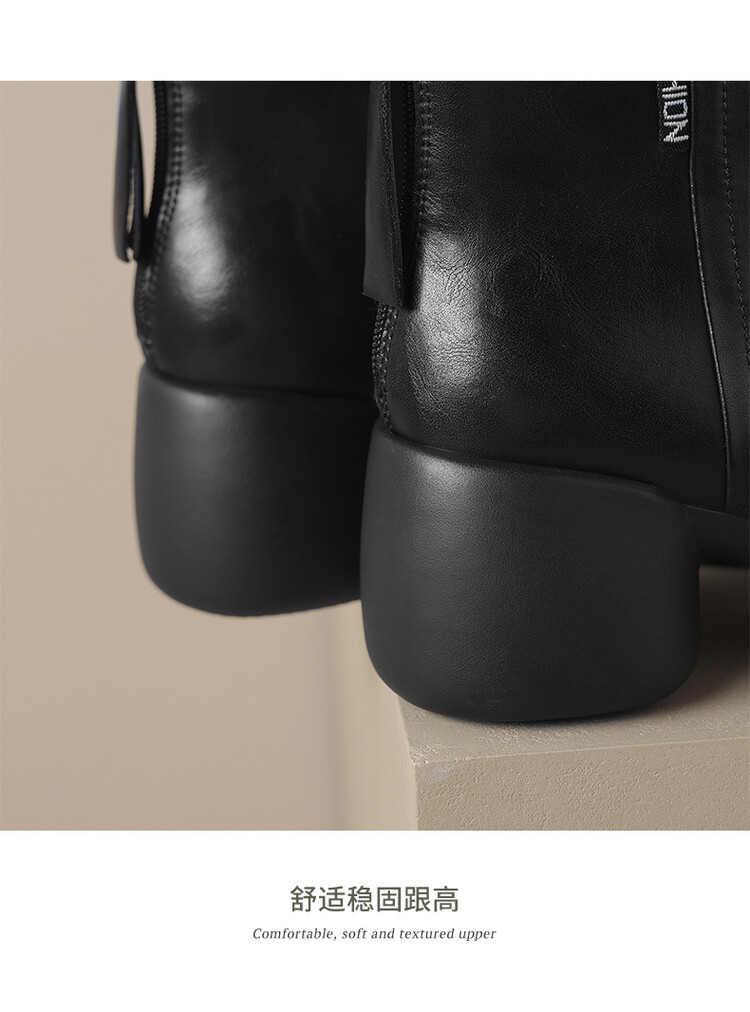 冬季新款,软皮圆头英复古时装靴女粗跟中跟后拉链瘦瘦烟筒靴ASN&1291