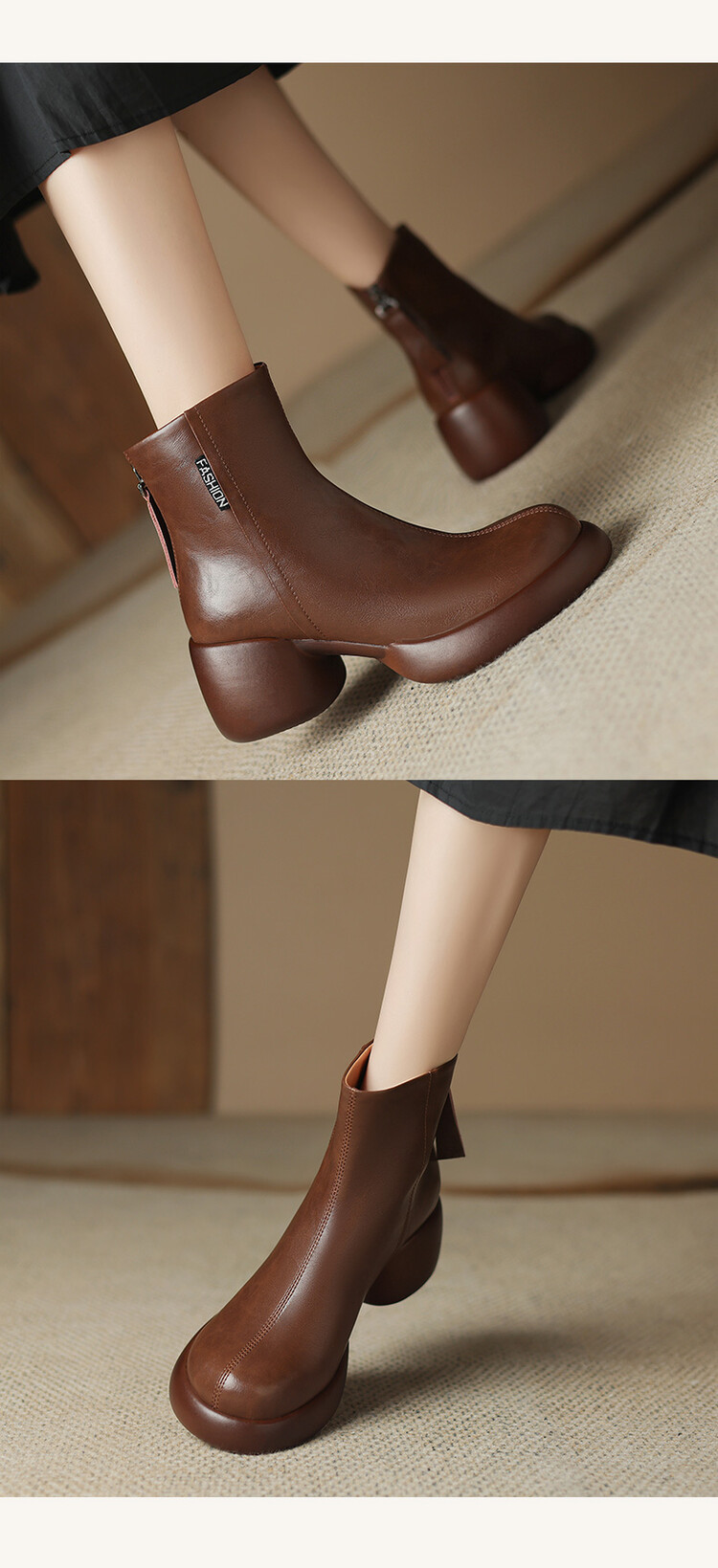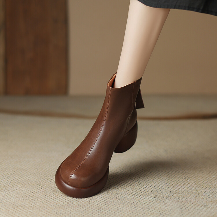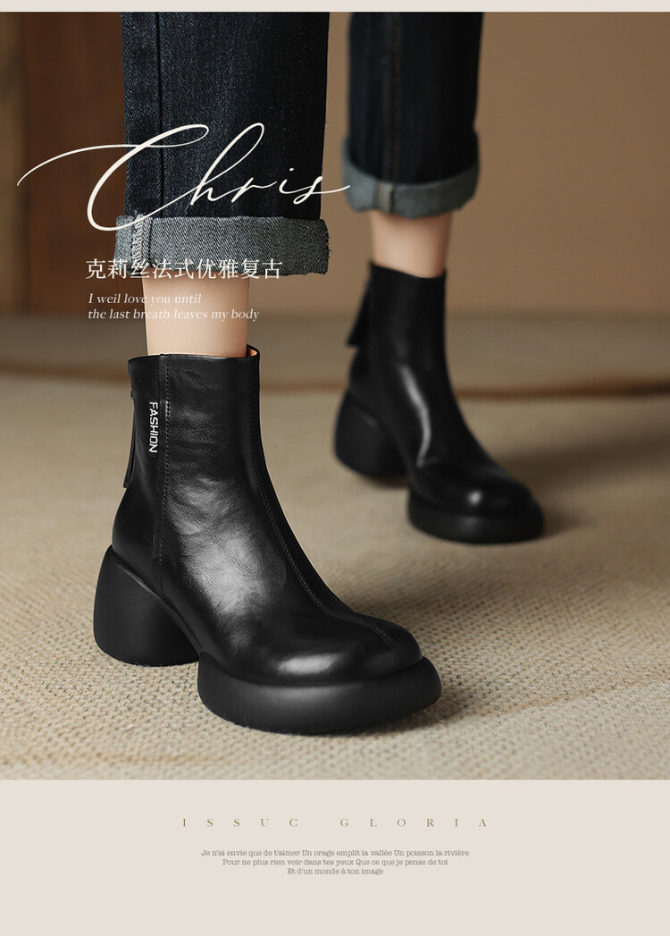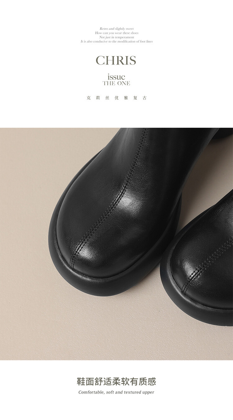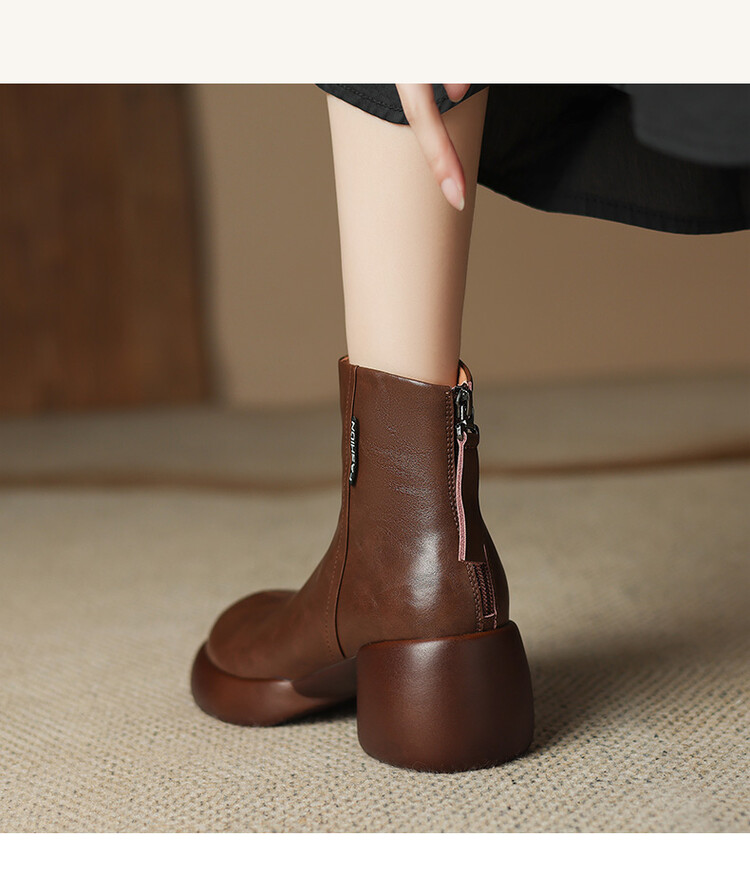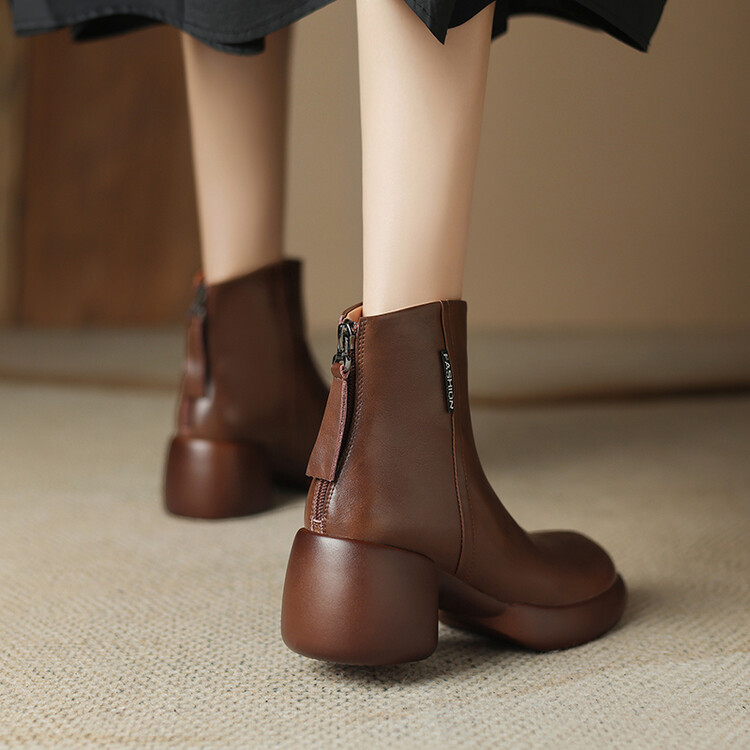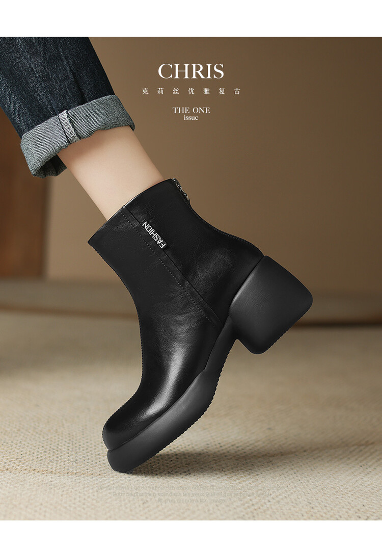 冬季新款,软皮圆头英复古时装靴女粗跟中跟后拉链瘦瘦烟筒靴ASN&1291