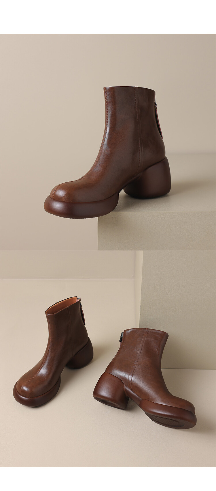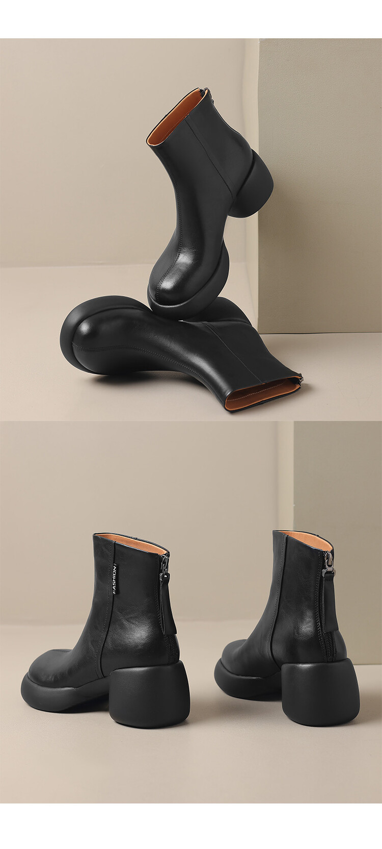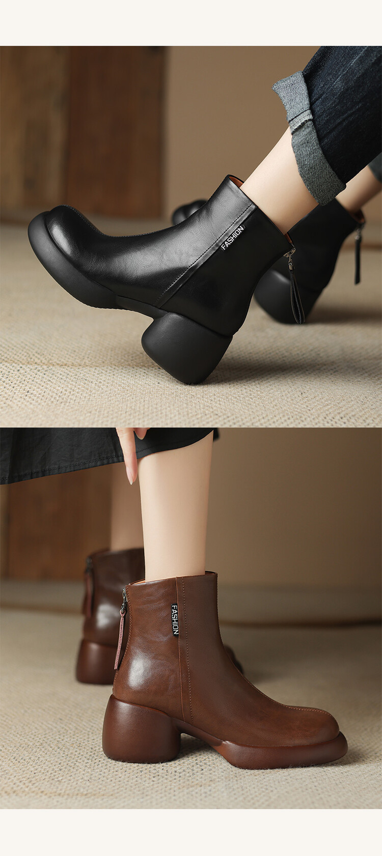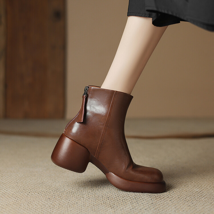 冬季新款,软皮圆头英复古时装靴女粗跟中跟后拉链瘦瘦烟筒靴ASN&1291