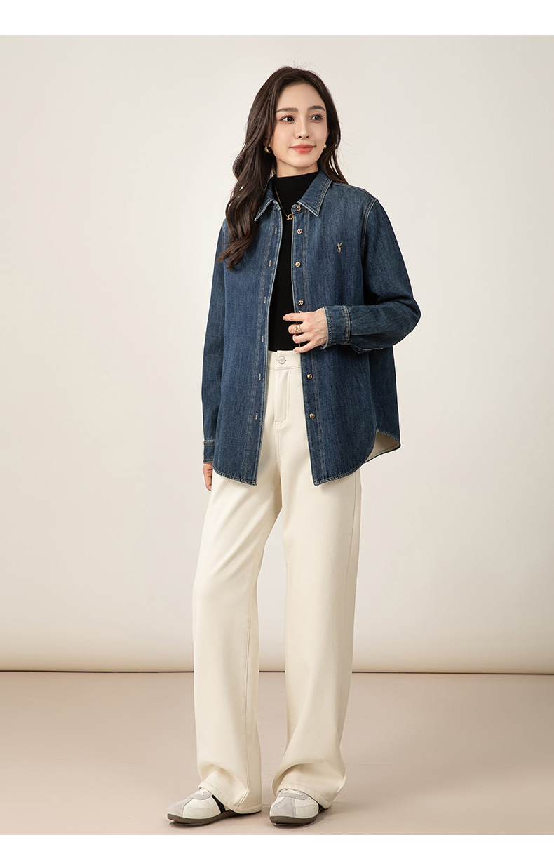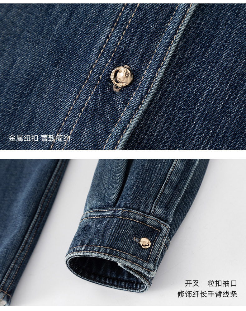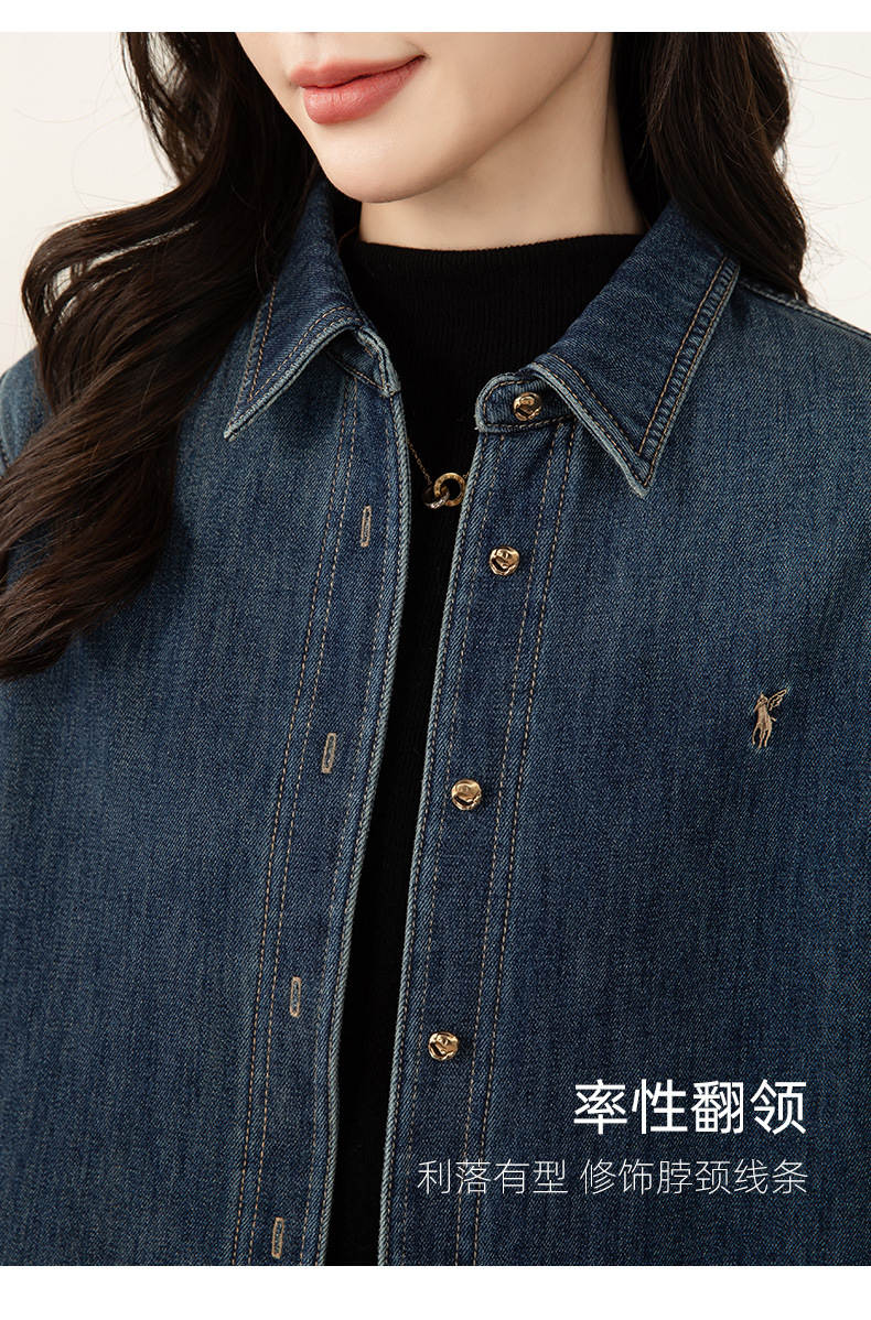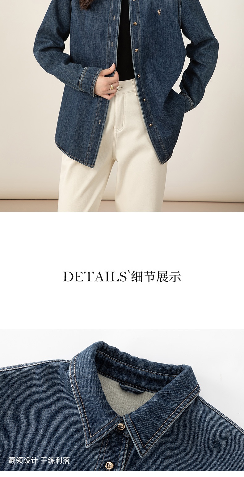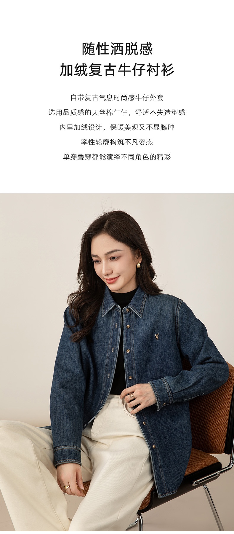 「高货xg」全新升级【铂金会员229/天猫309/差价80】(01619)洛诗琳简约百搭牛仔衬衫外套2025秋冬休闲复古加绒上衣