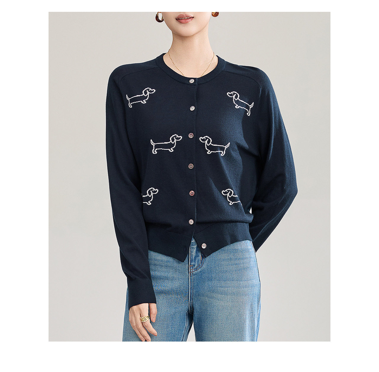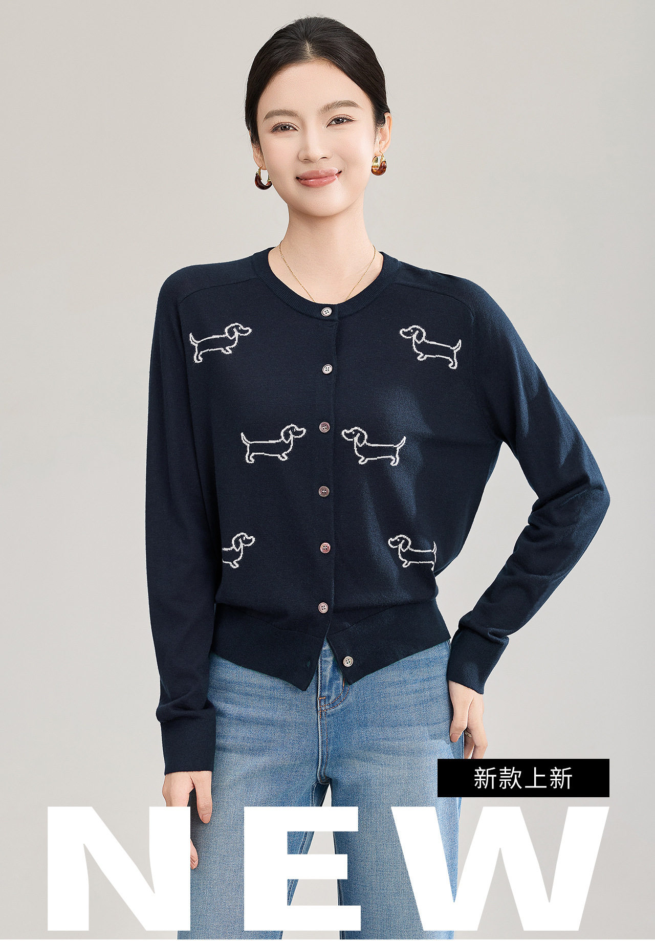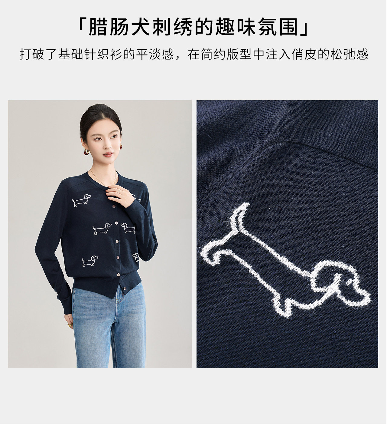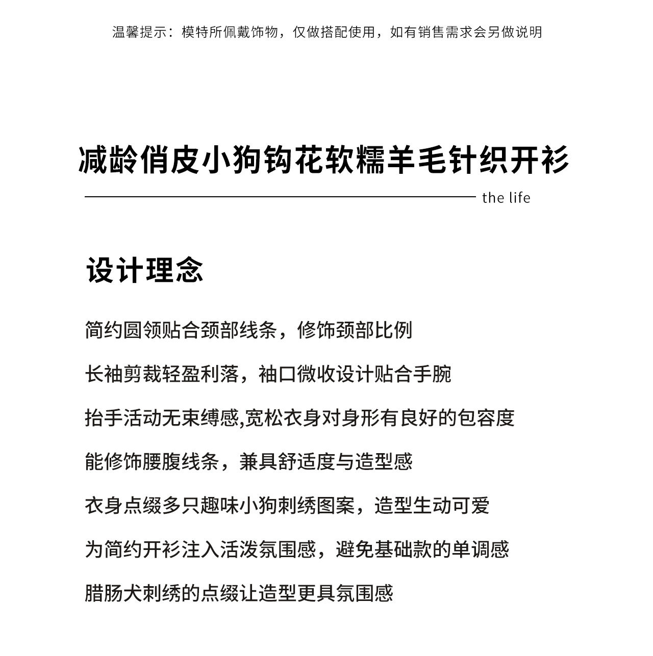 「高货wl」全新升级【铂金会员330/天猫449/差价119】(11741)洛诗琳气质羊毛混纺上衣2026春季新款小狗刺绣针织开衫