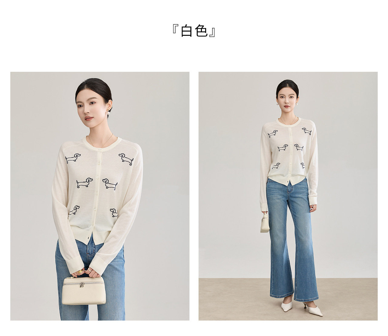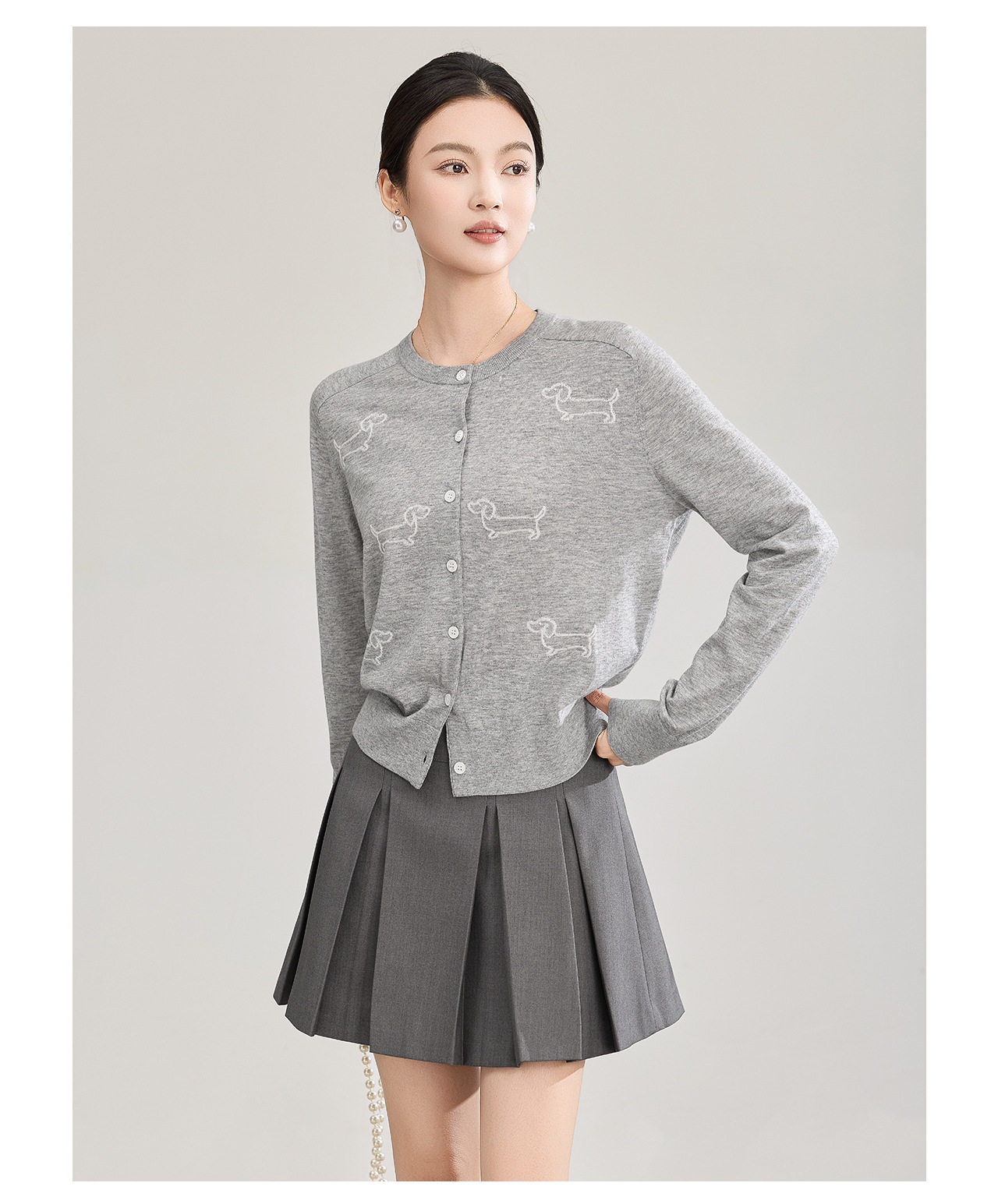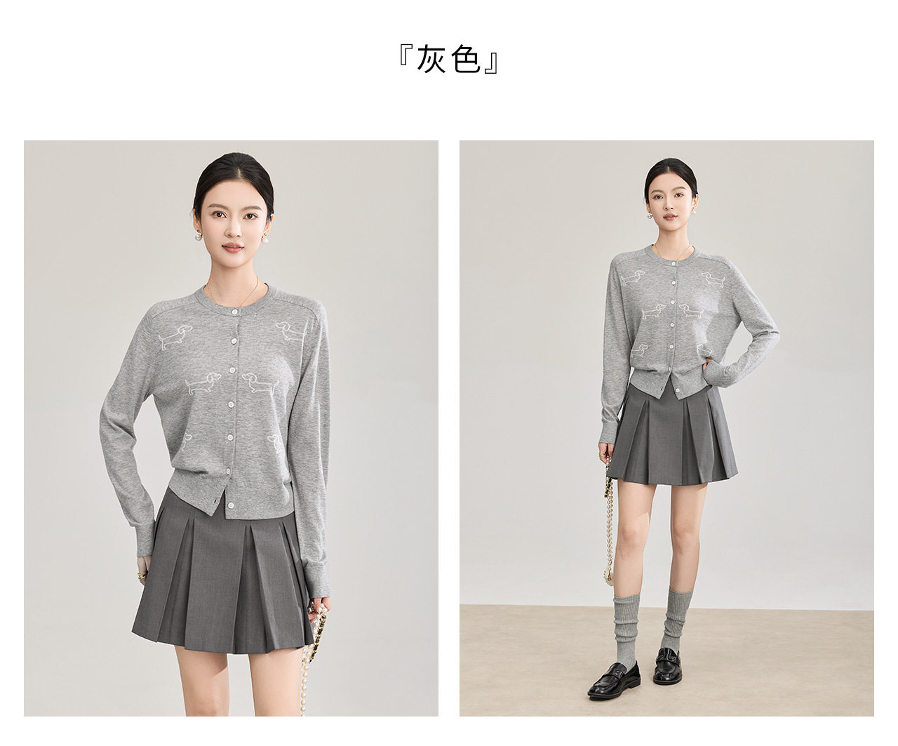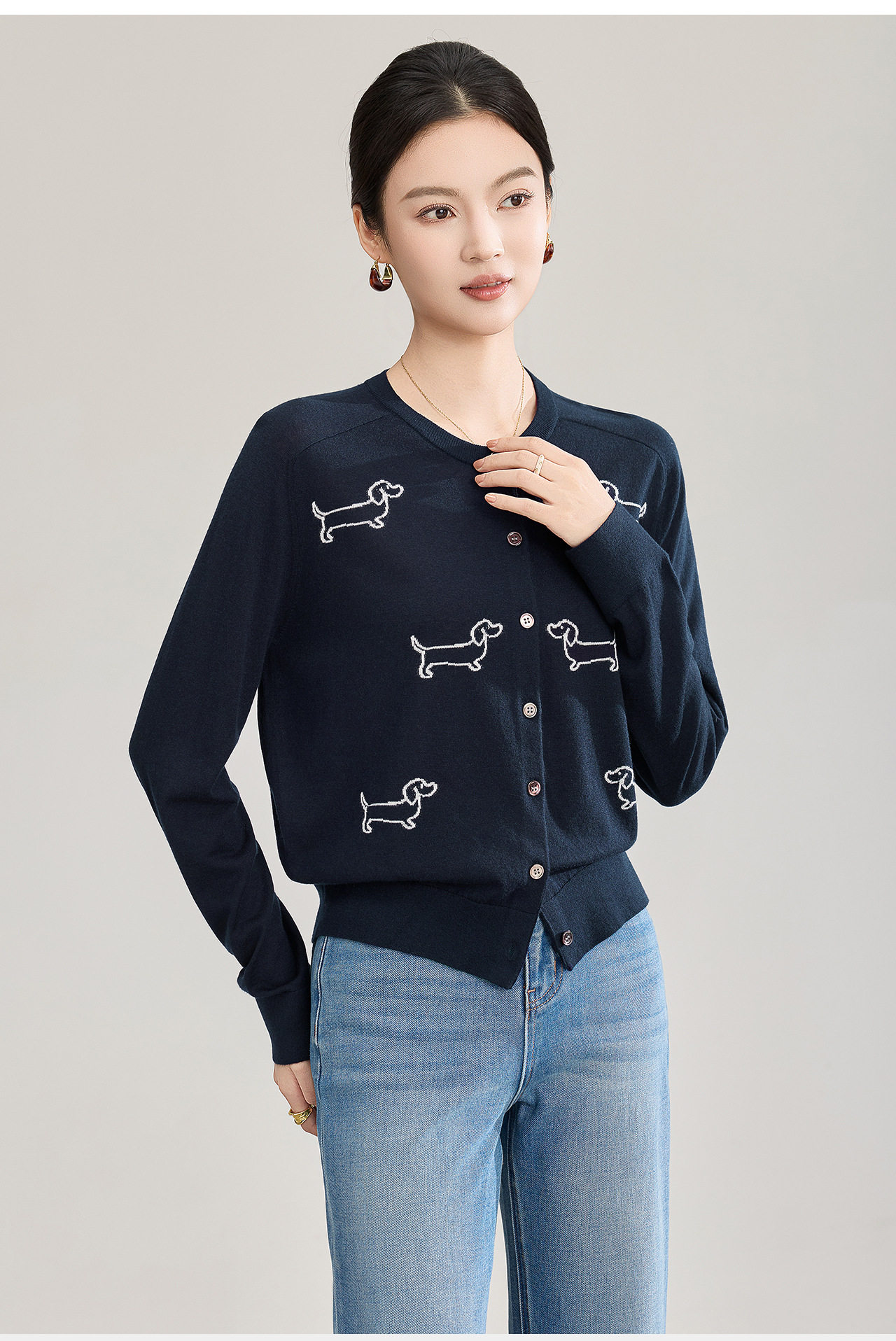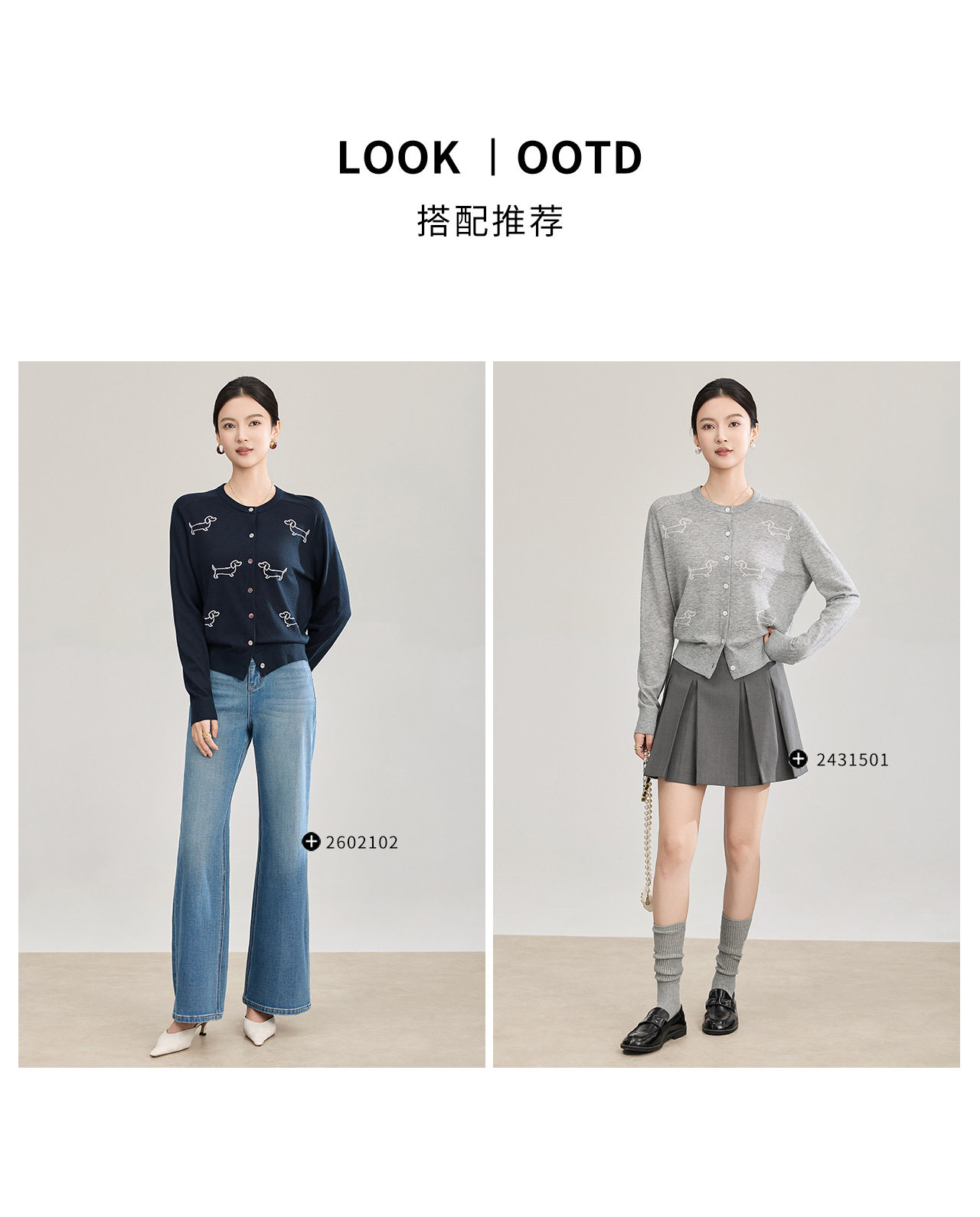「高货wl」全新升级【铂金会员330/天猫449/差价119】(11741)洛诗琳气质羊毛混纺上衣2026春季新款小狗刺绣针织开衫